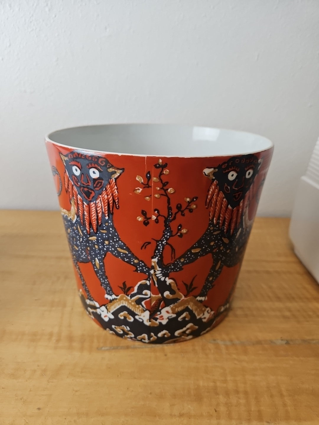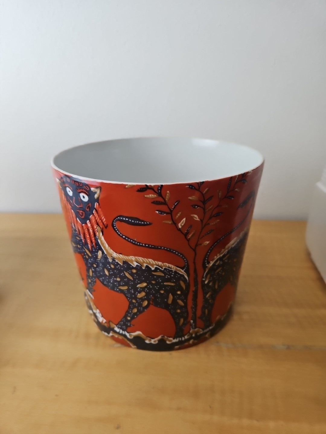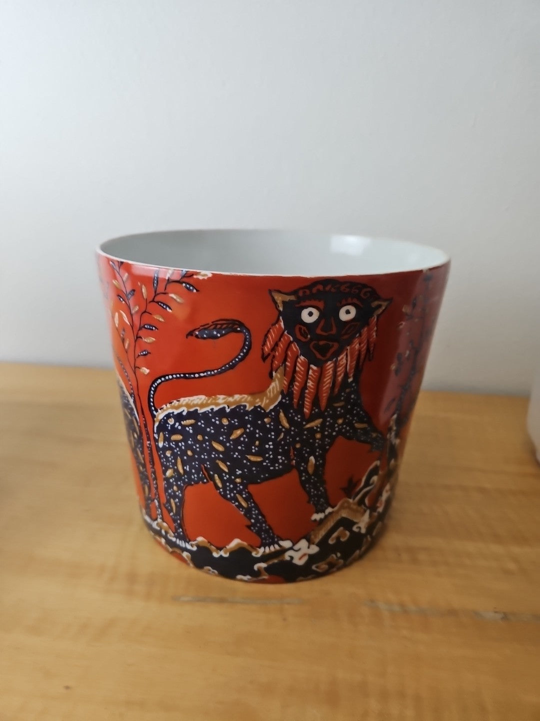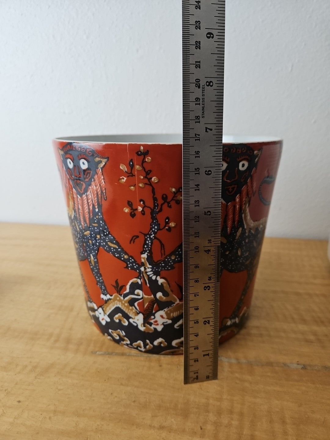 Fitz and Floyd Large Red Jungle Lion Jardiniere Flower Pot 6.5" x 7.5"