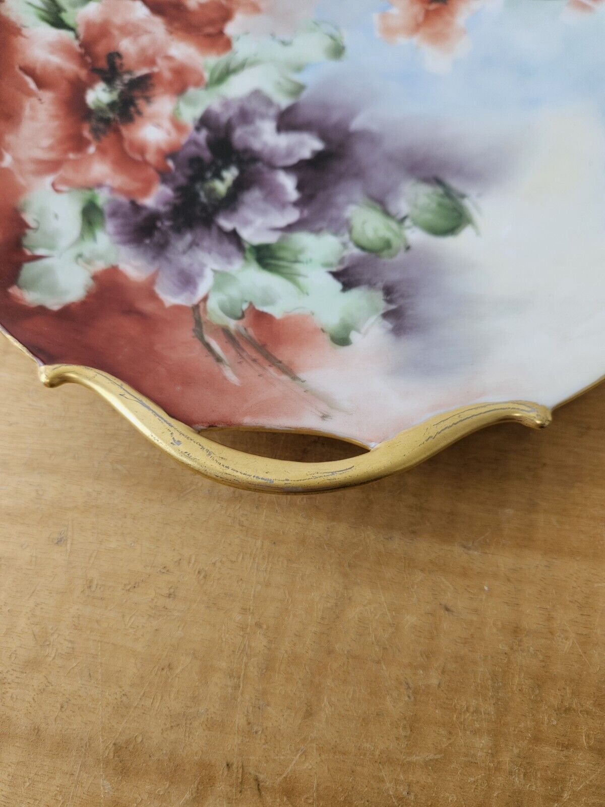 Floral Decorative Plate With Gold Handles C.M.