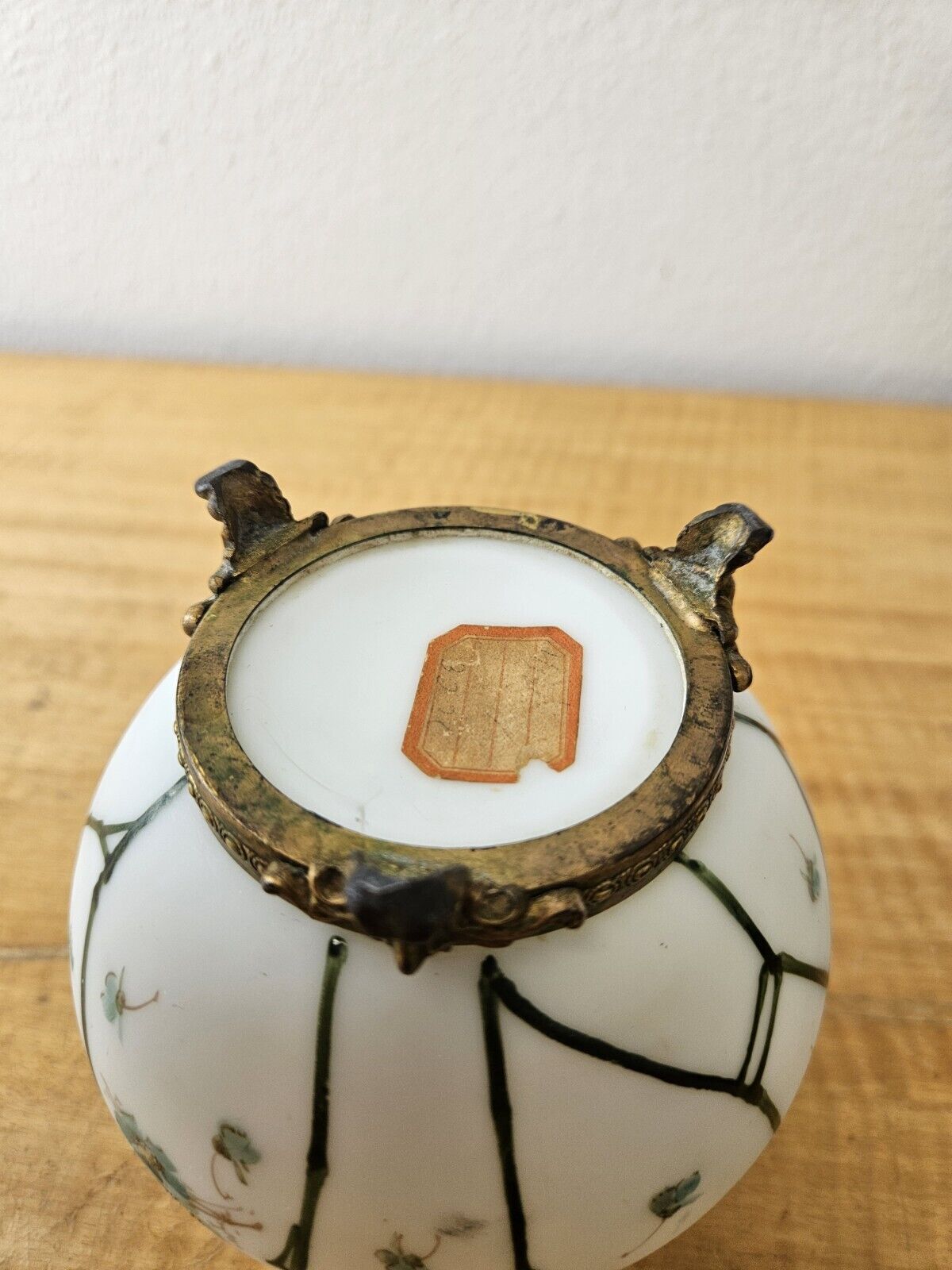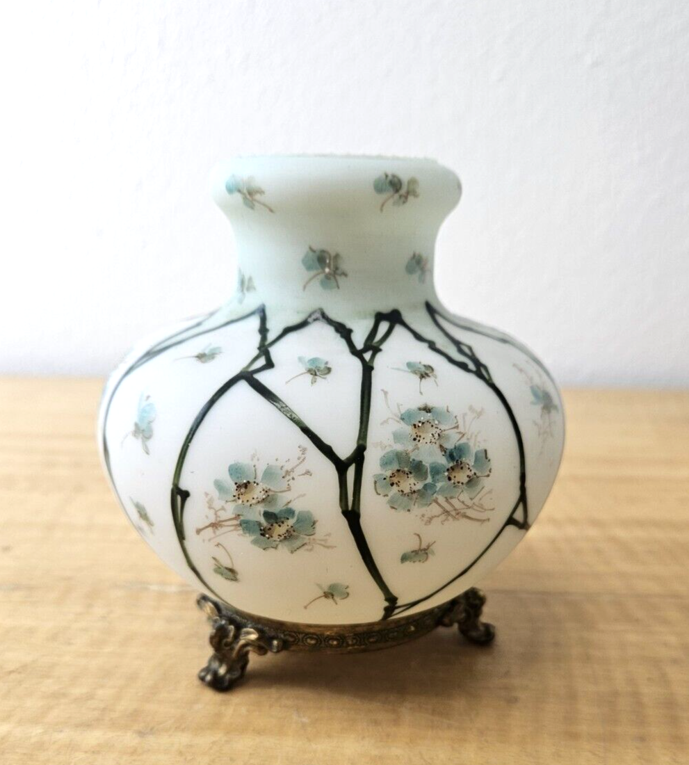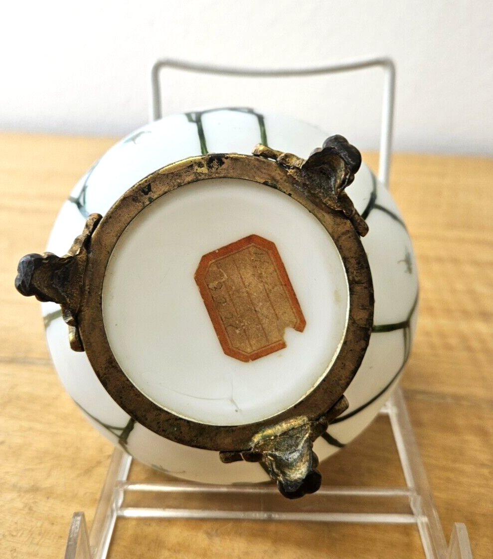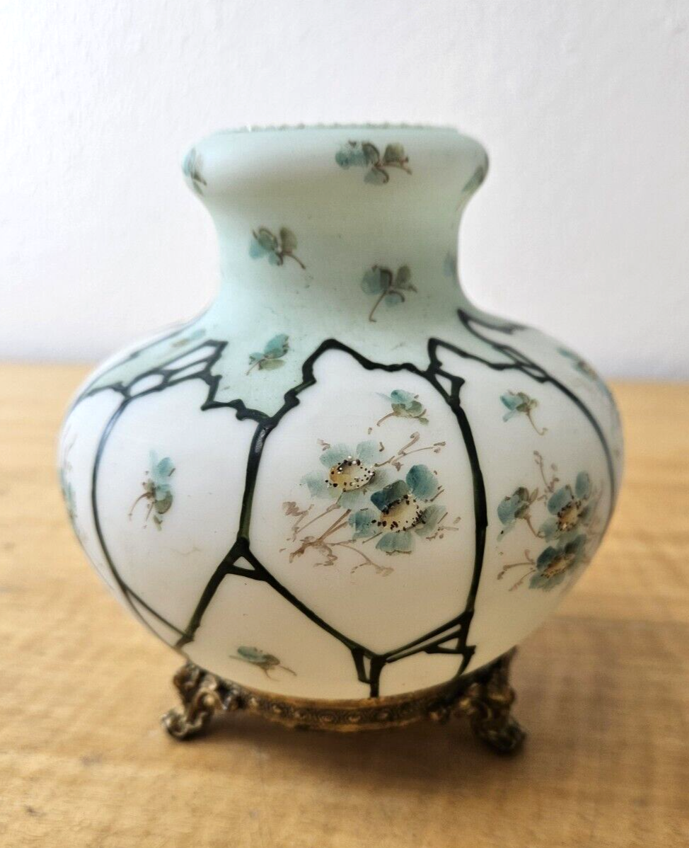 Footed squatty vase and Beaded Rim 5 inch- dark green design with flowers