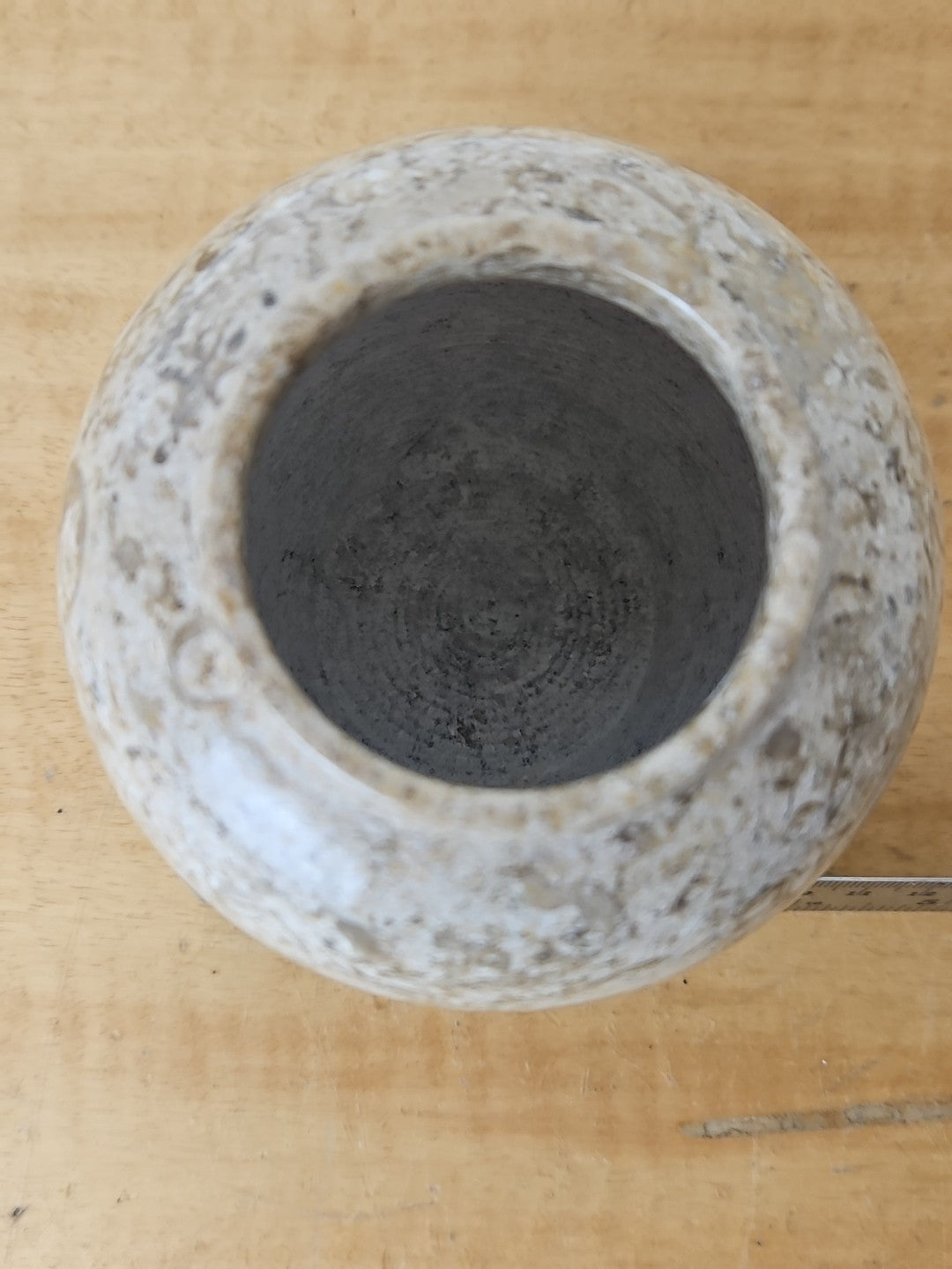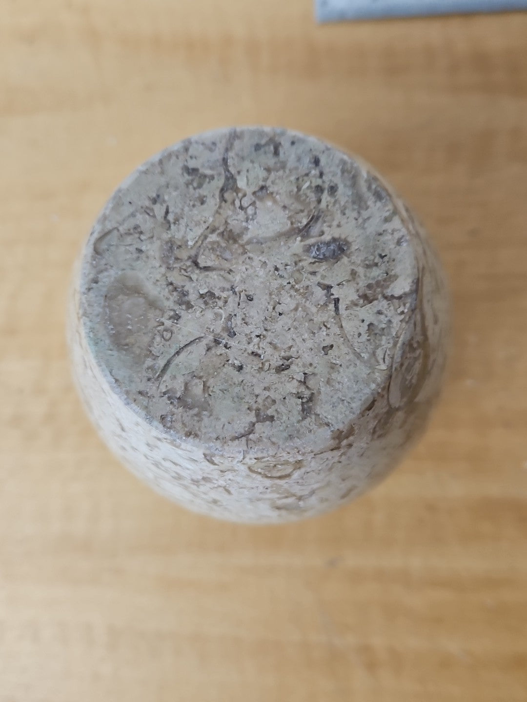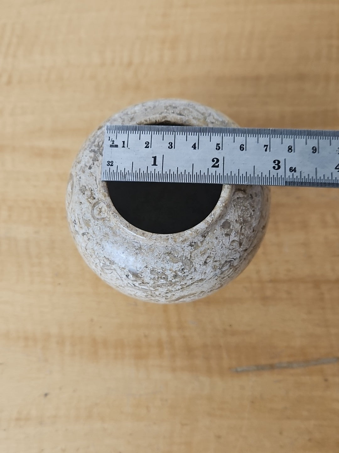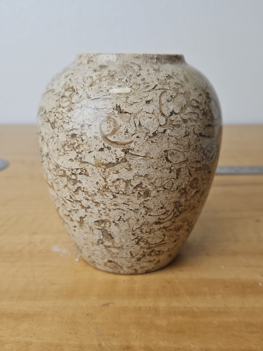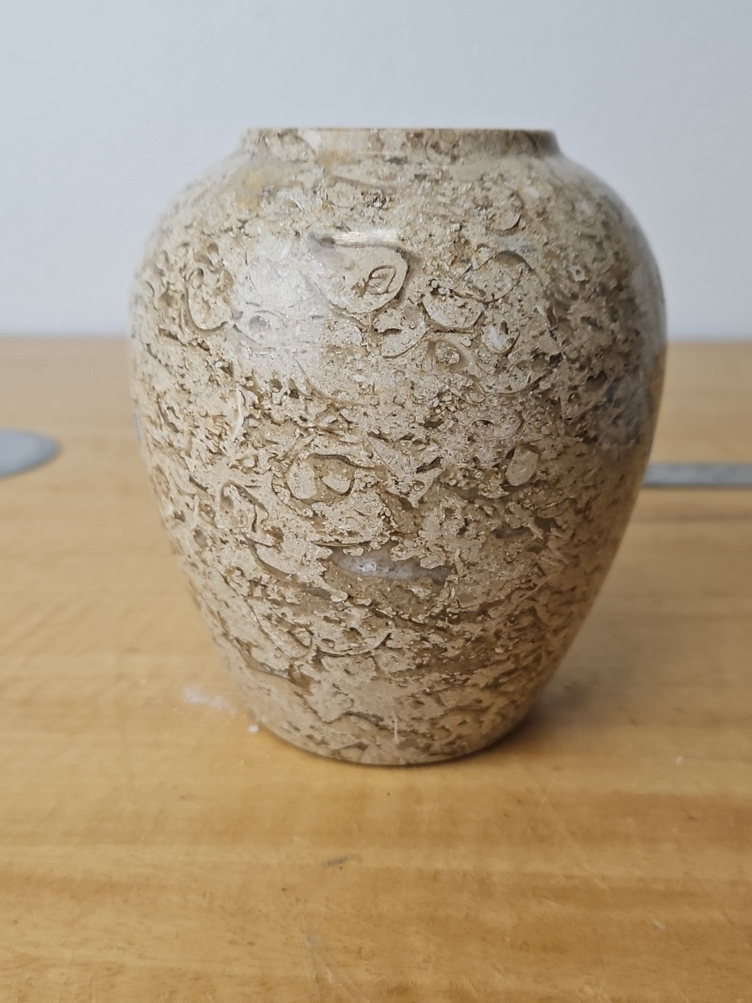 Fossil Marble Stone Vase, bud base, earth tones, heavy, 4 1/2"