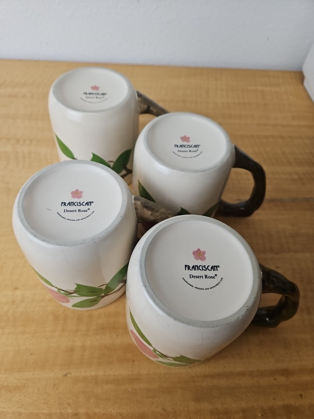 Franciscan "Desert Rose" GRANDMUG *SET of 4* coffee cups, twisted handle