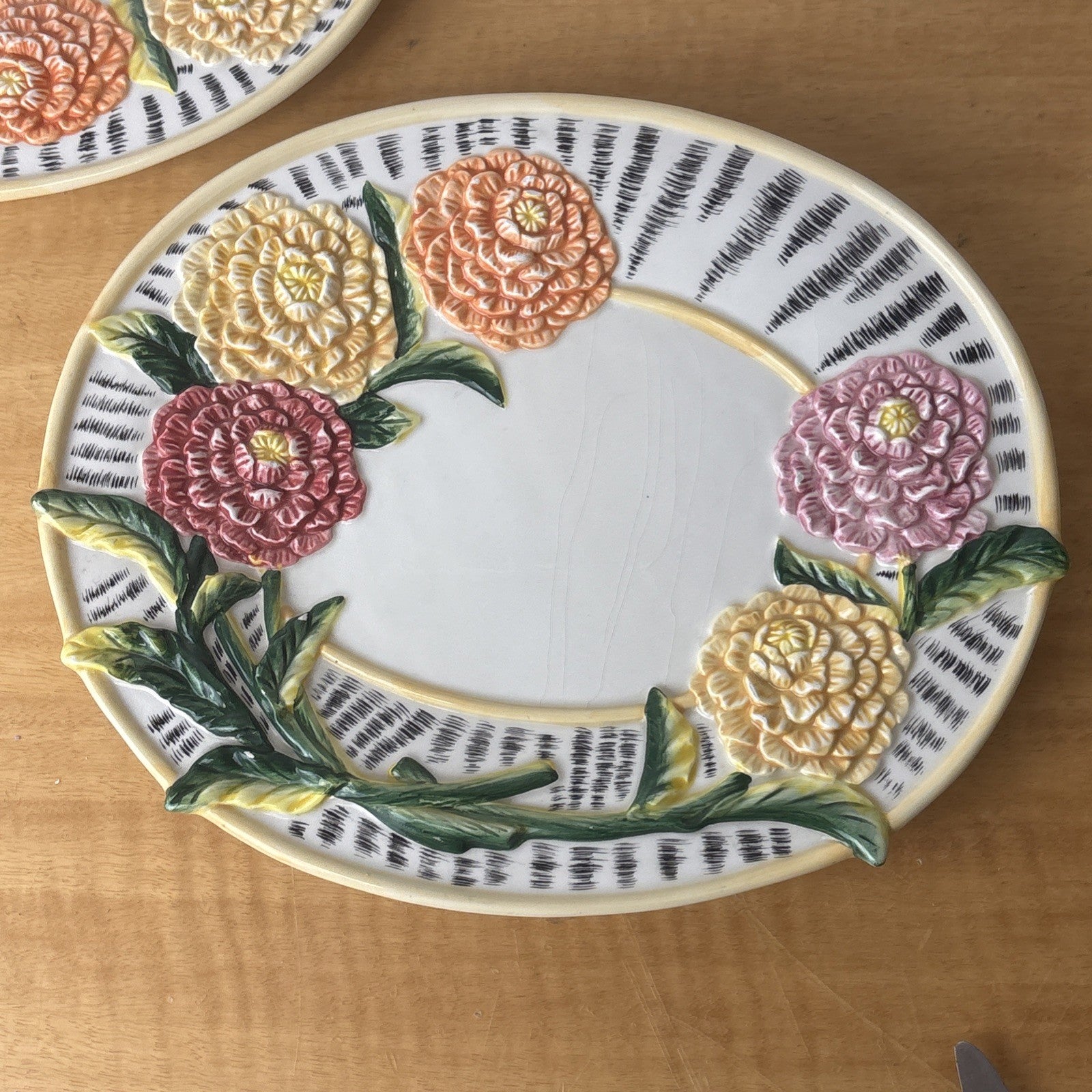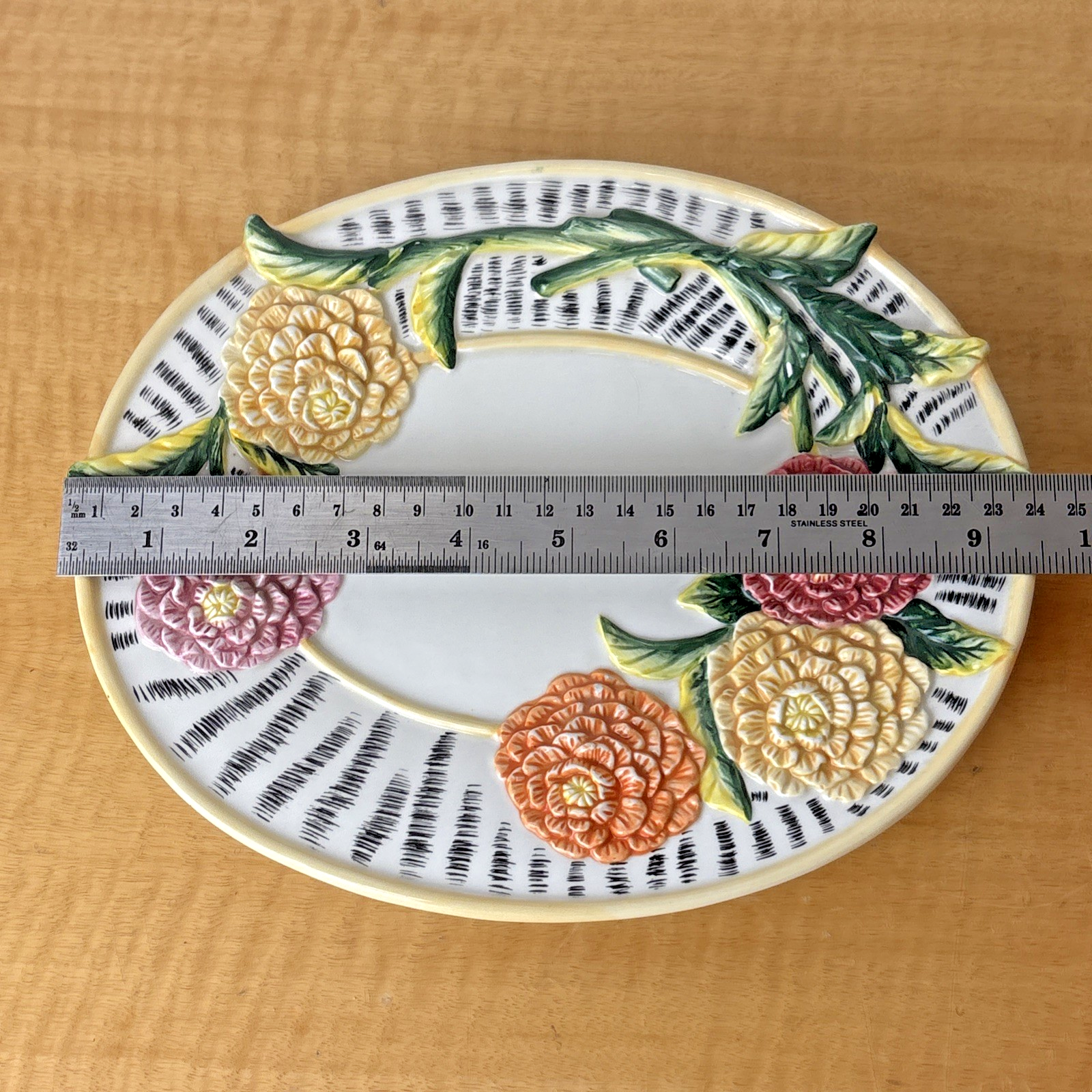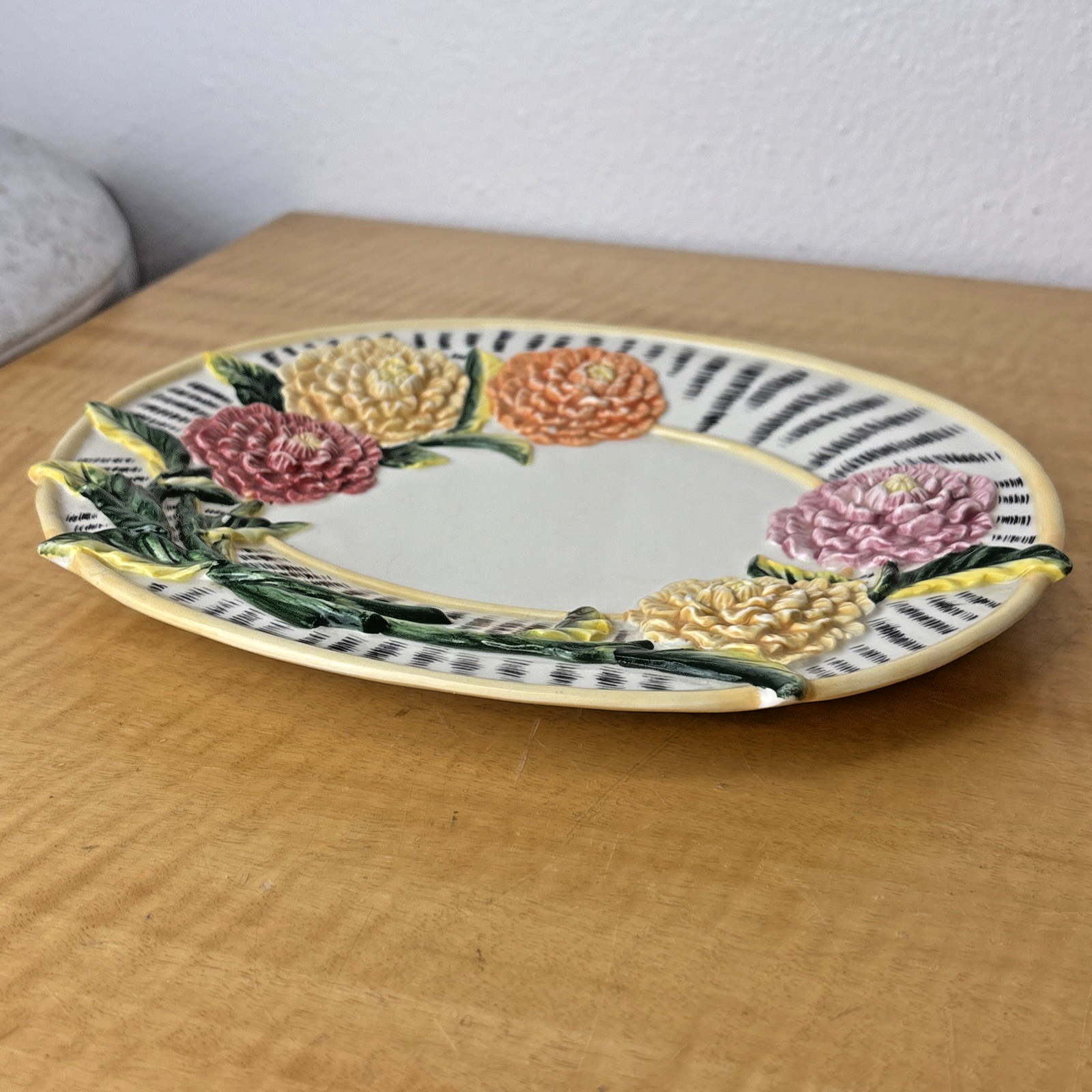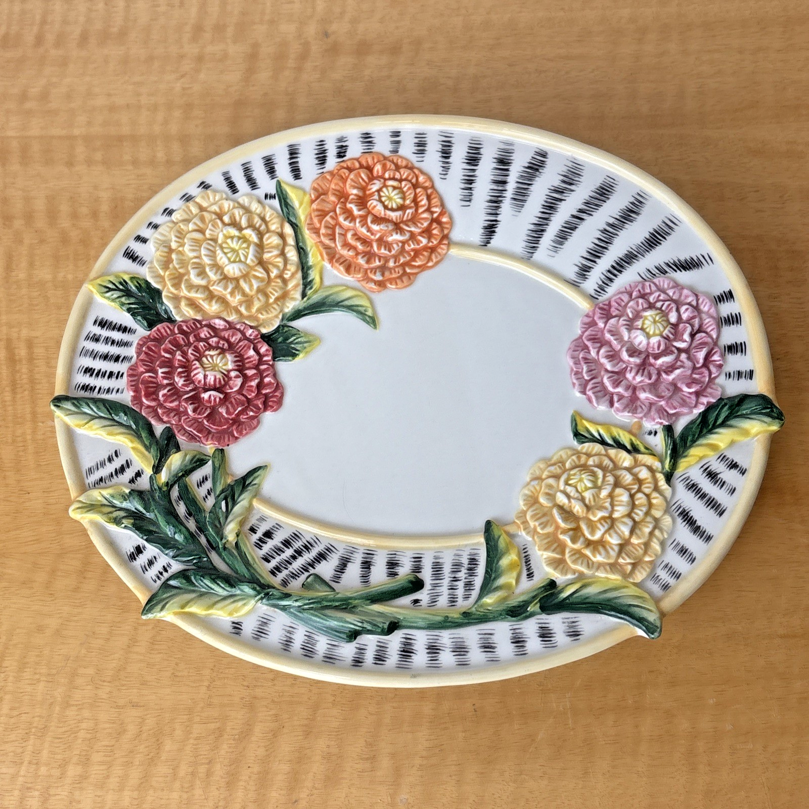 Fritz and Floyd Floral Essentials Oval Plate Pink and Yellow Flowers