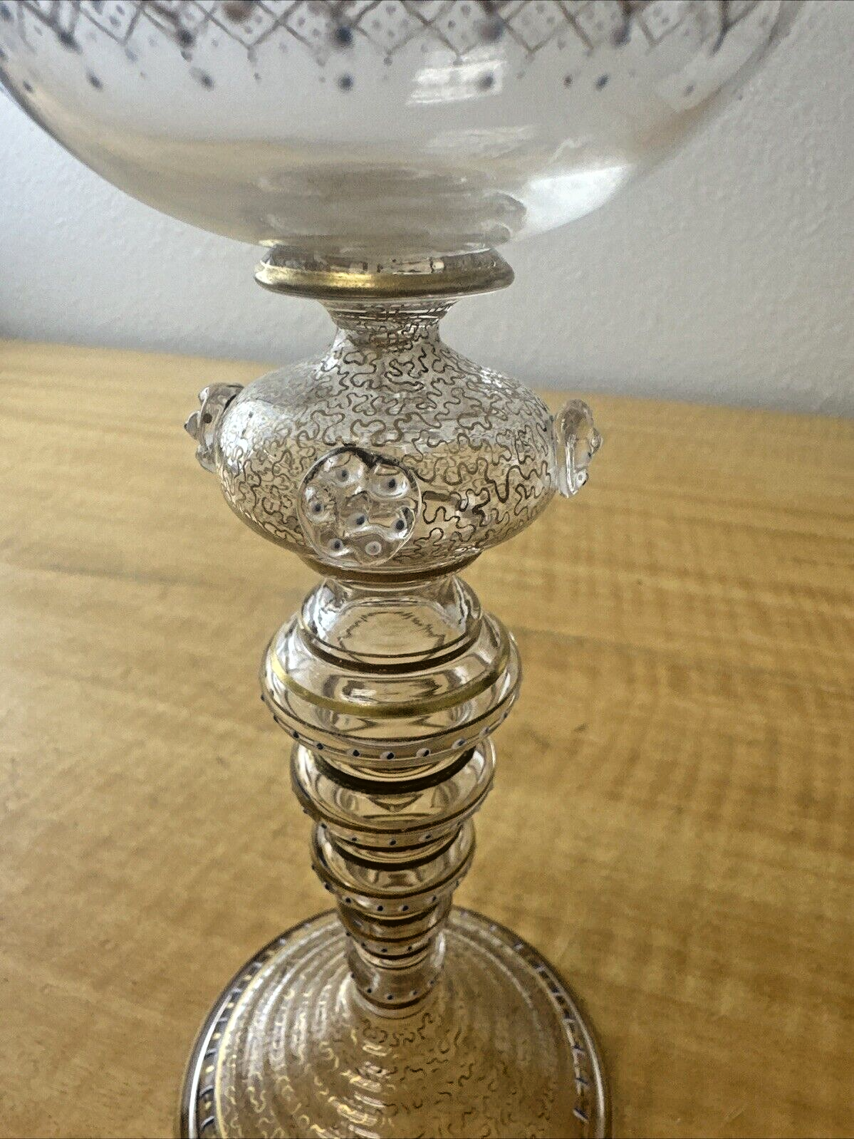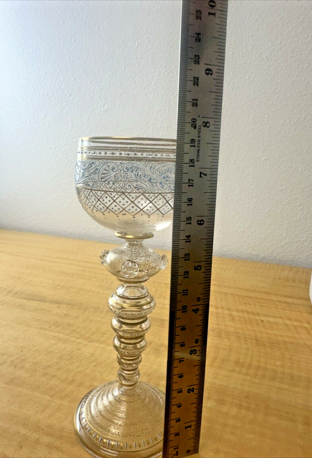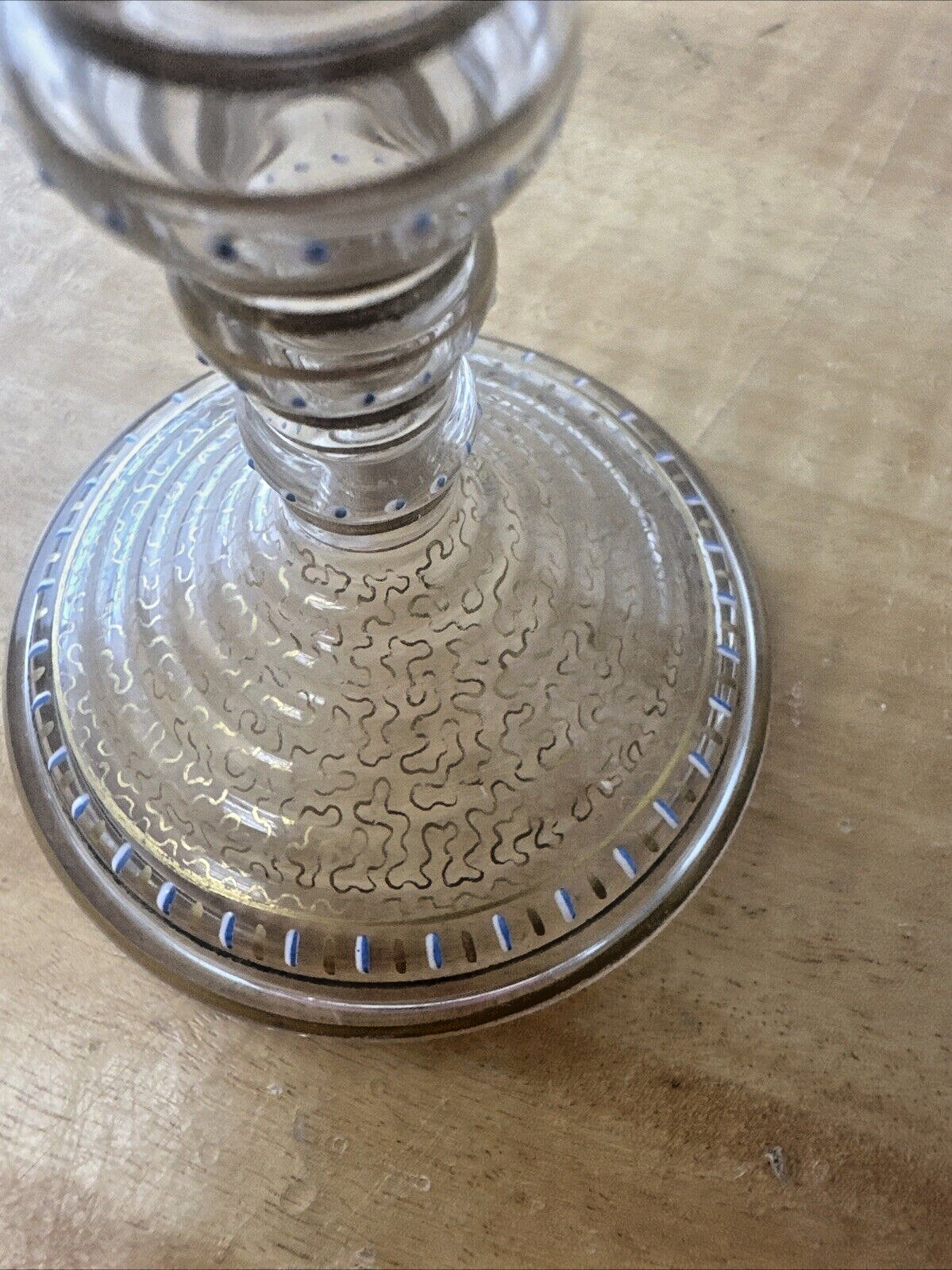 Fritz Heckert Hand Enameled White, Blue & Gold Wine Glass