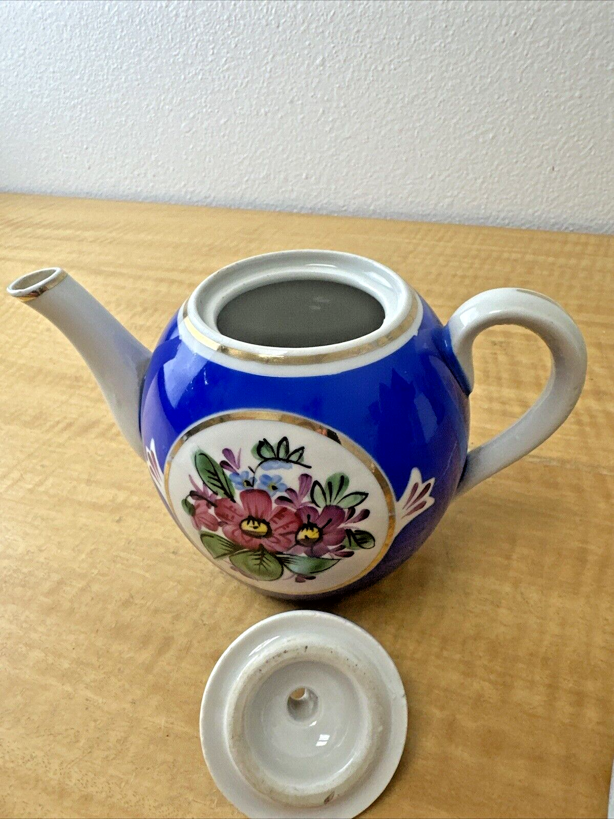 Gardner Russian Imperial Blue Floral Porcelain Teapot, circa 1890