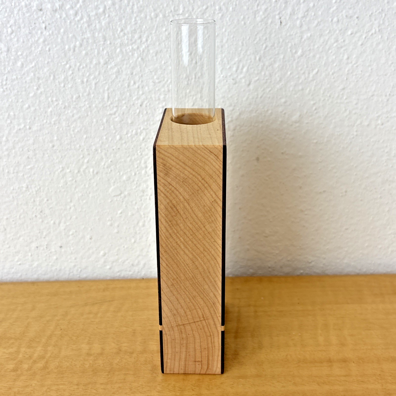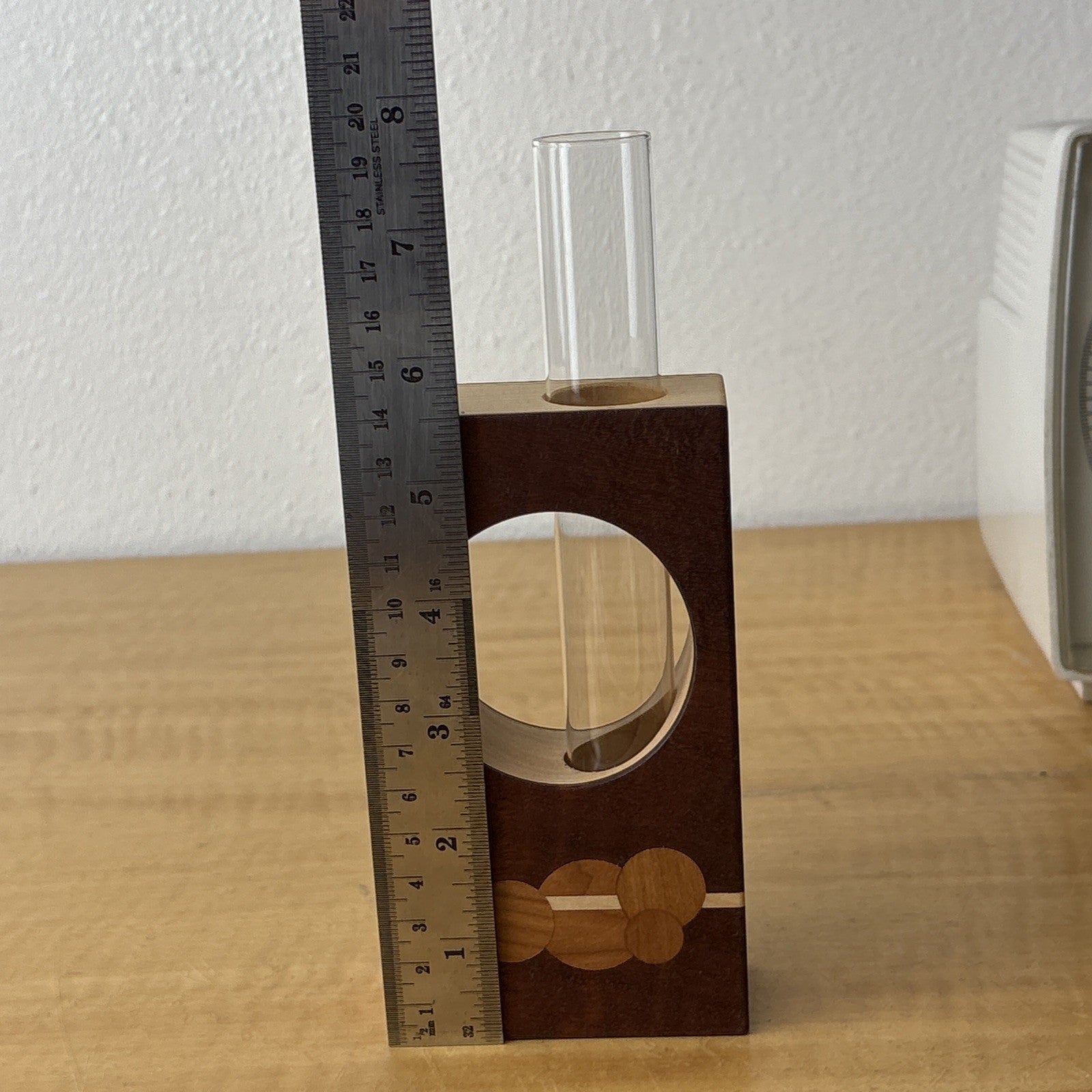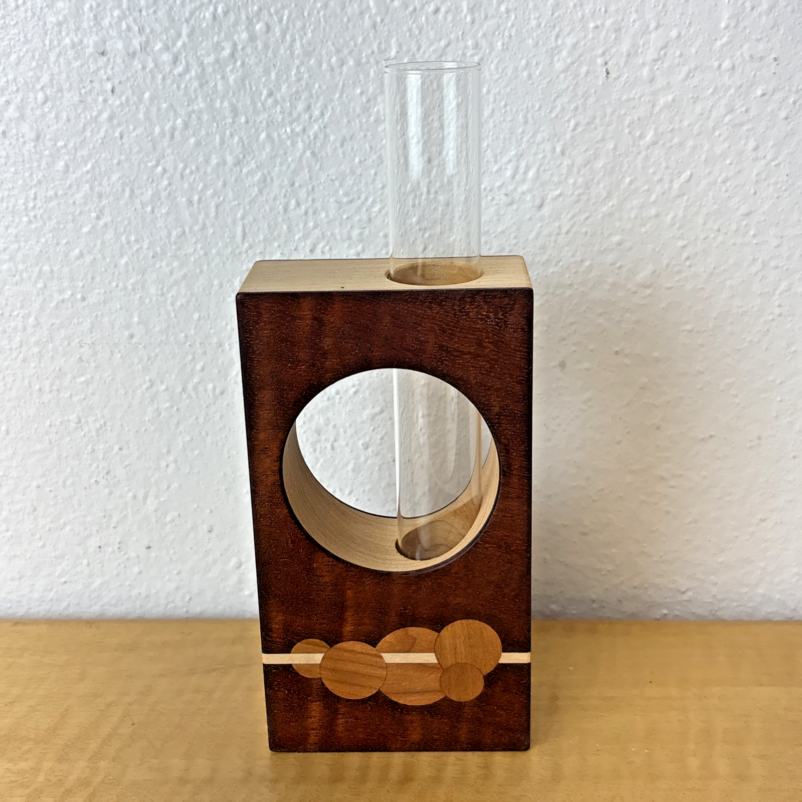 Geometric Forest Bud / Plant Glass Vase Walnut Wood with Dots and Stripe Design