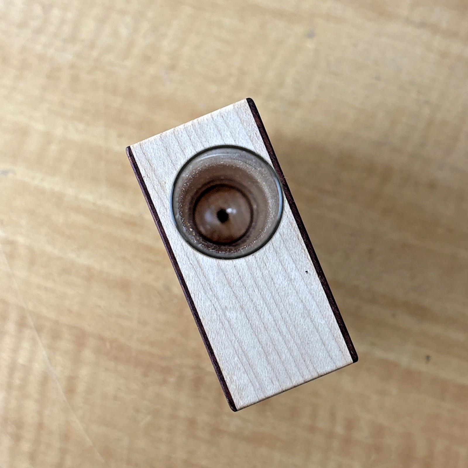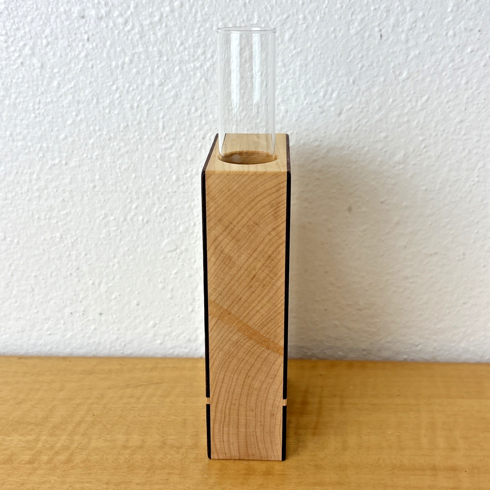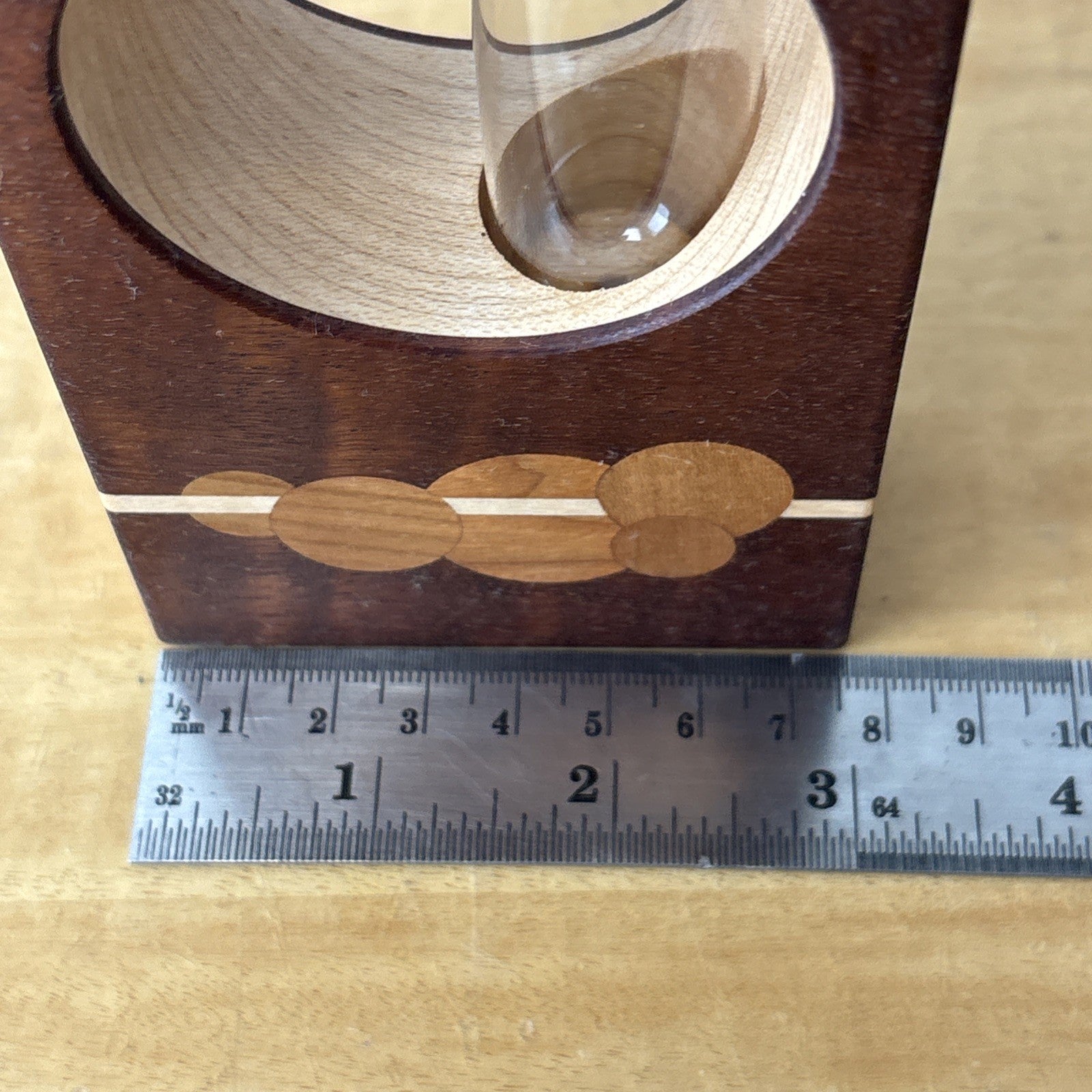 Geometric Forest Bud / Plant Glass Vase Walnut Wood with Dots and Stripe Design