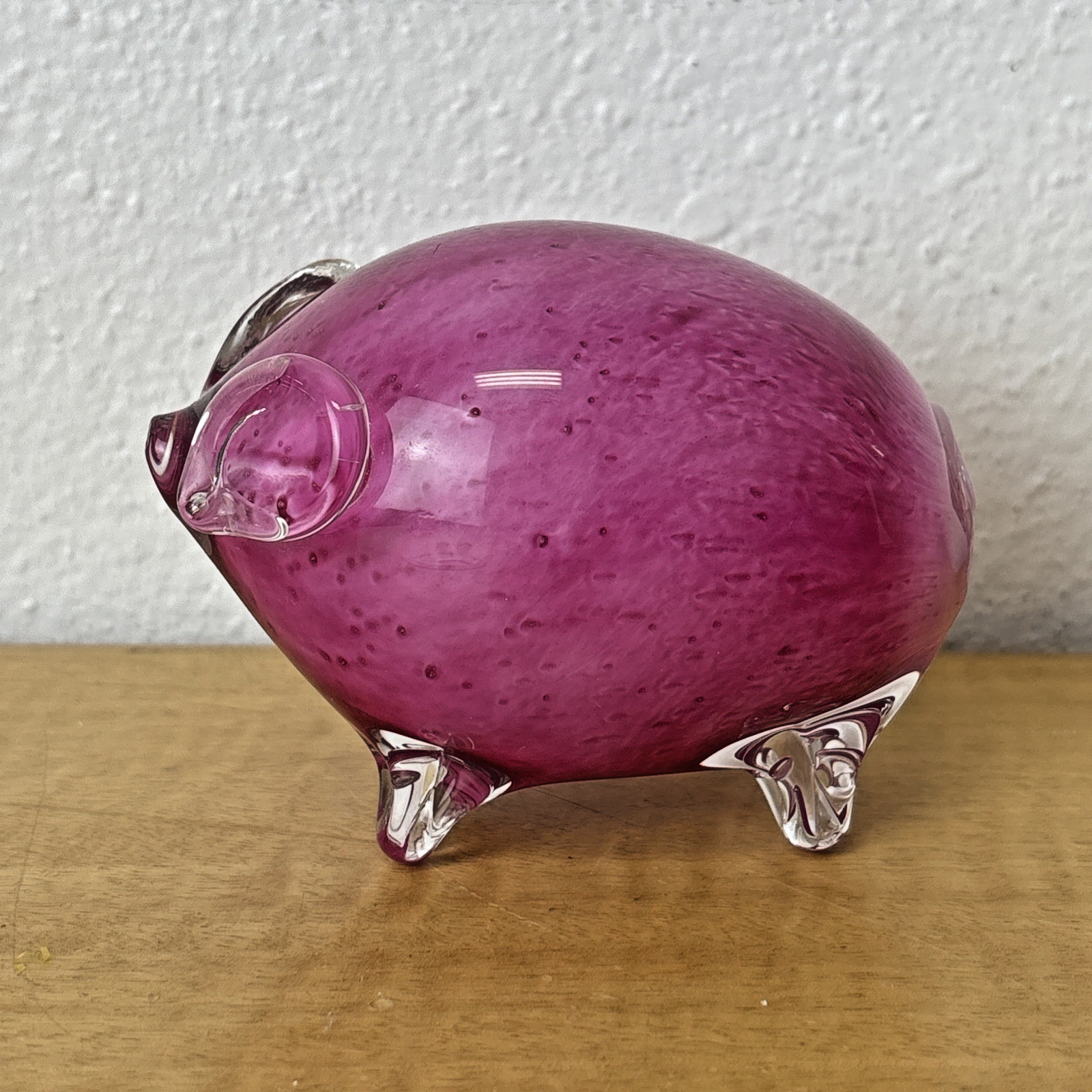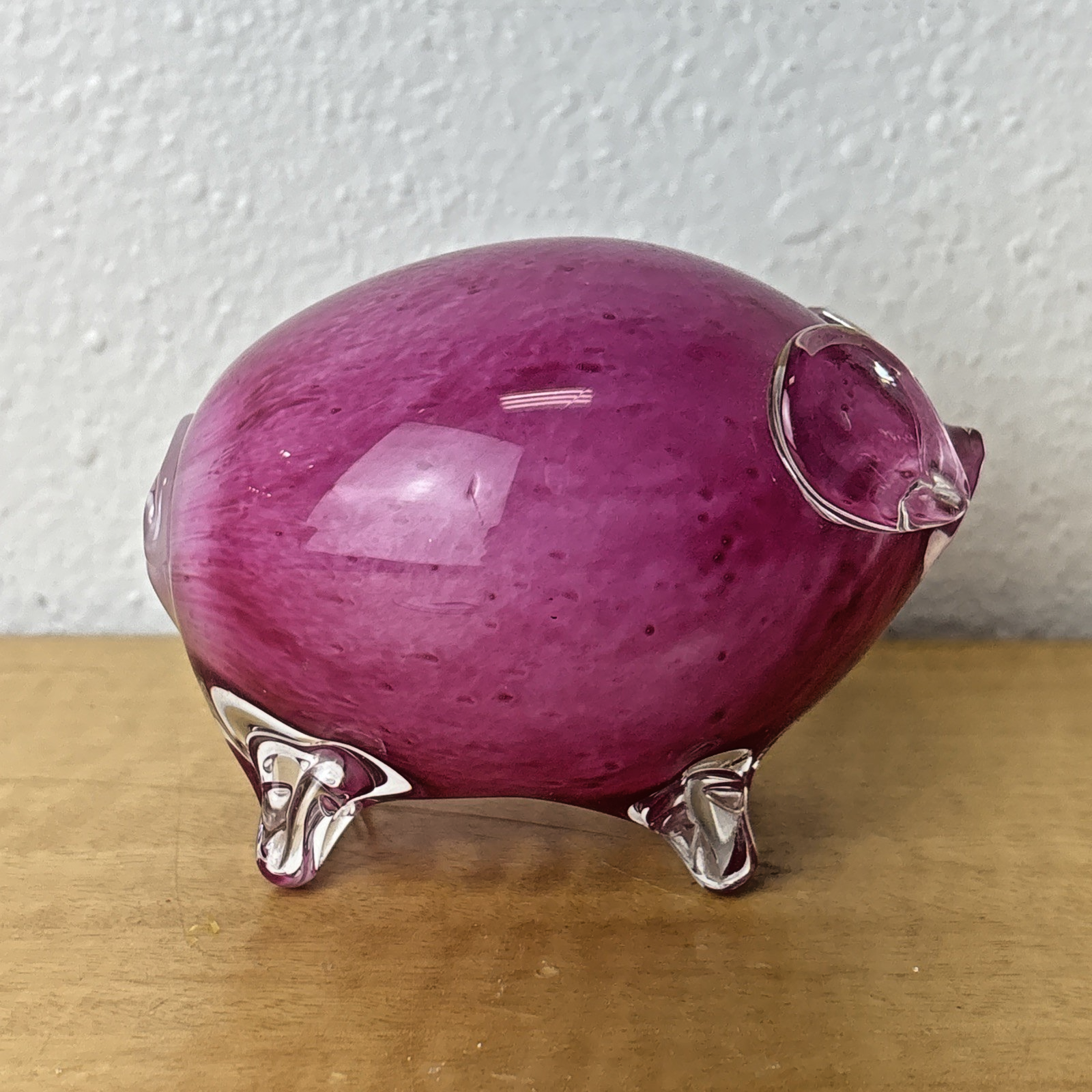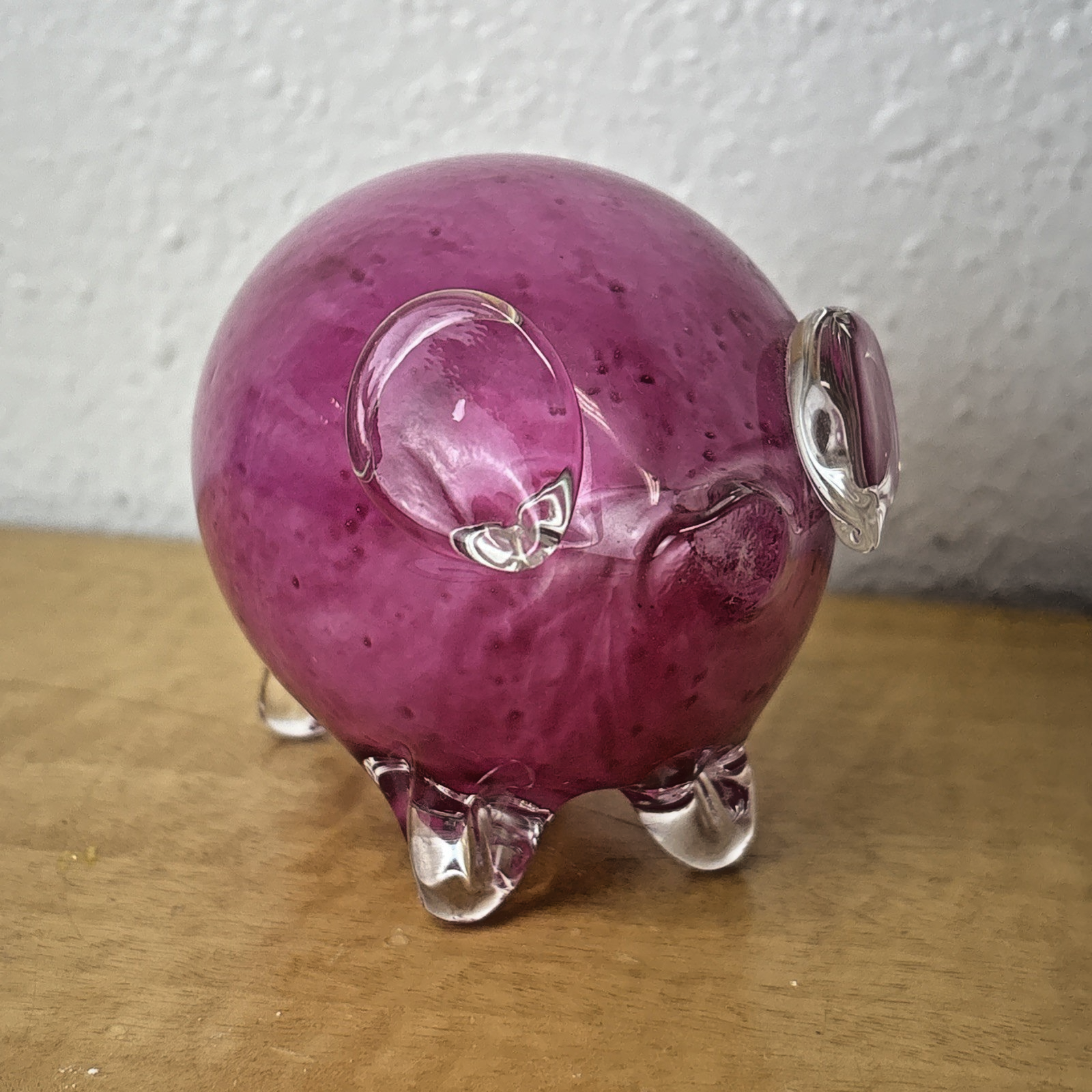 Glass Pink Pig Paper Weight Murano Style Decoration.