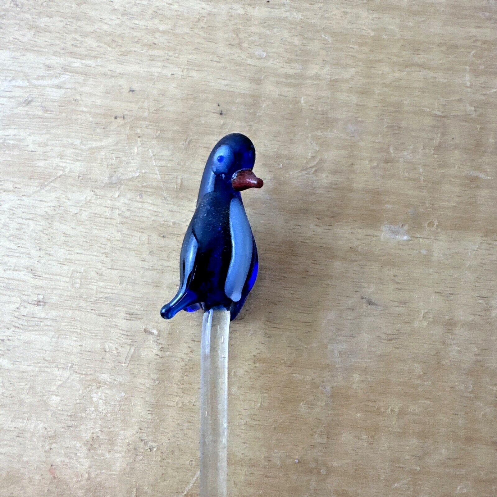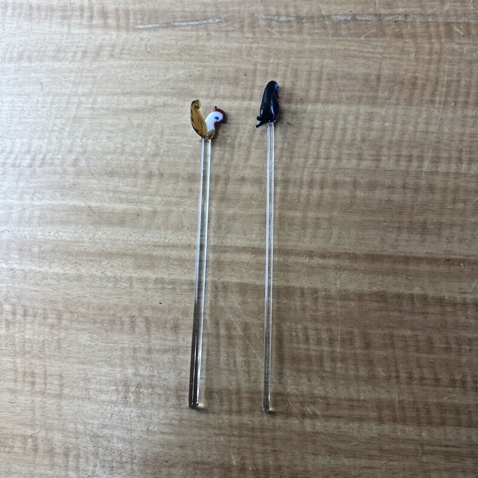 Glass Stirring Swizzle Sticks With Penguin & Rooster, Excellent Condition
