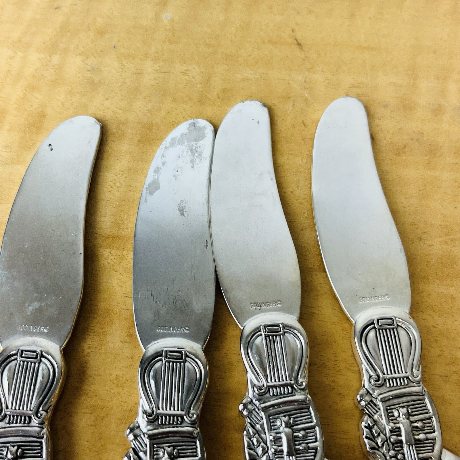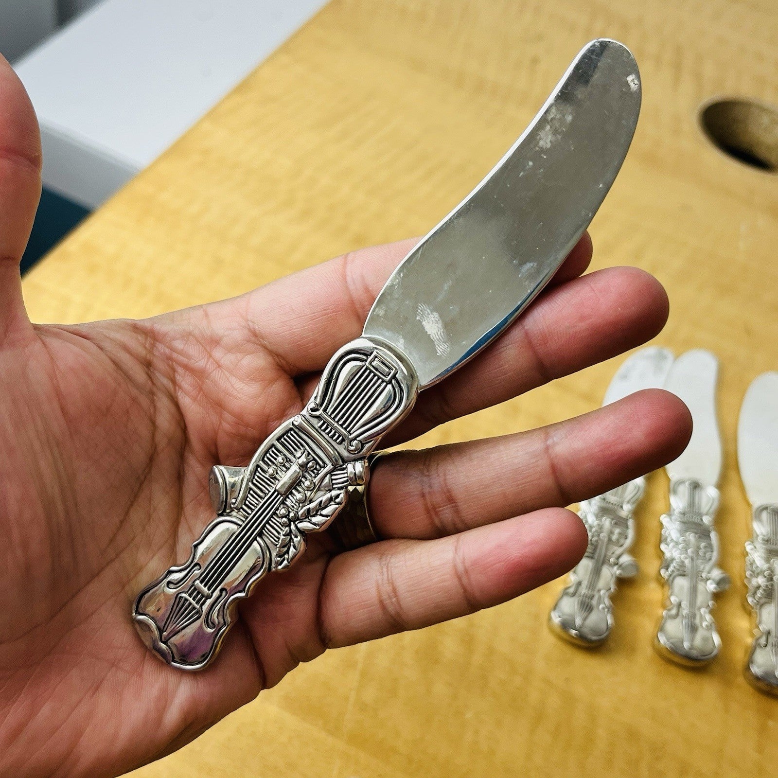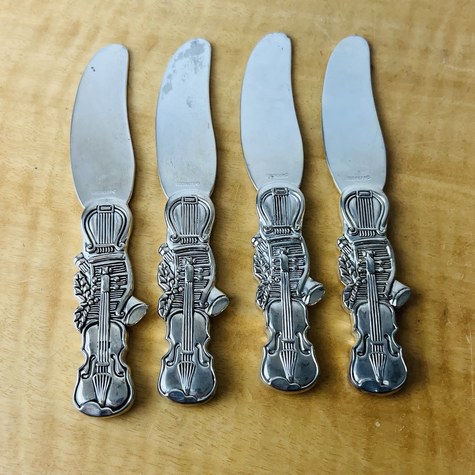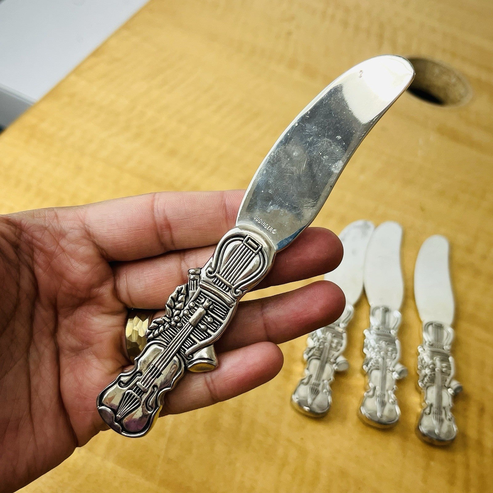 Godinger Cheese Jam Butte Knife Set of 4 Violin Harp Handle Musical Silver Tone