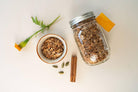 Orange cinnamon granola with a hint-oh-cardamon– Golden hour encapsulates the bittersweet experience of a San Diego sunset in the Fall. Packaged in a 16 oz mason jar, this granola is GF, Vegan, and sweetened with a blend of organic maple syrup + coconut sugar.