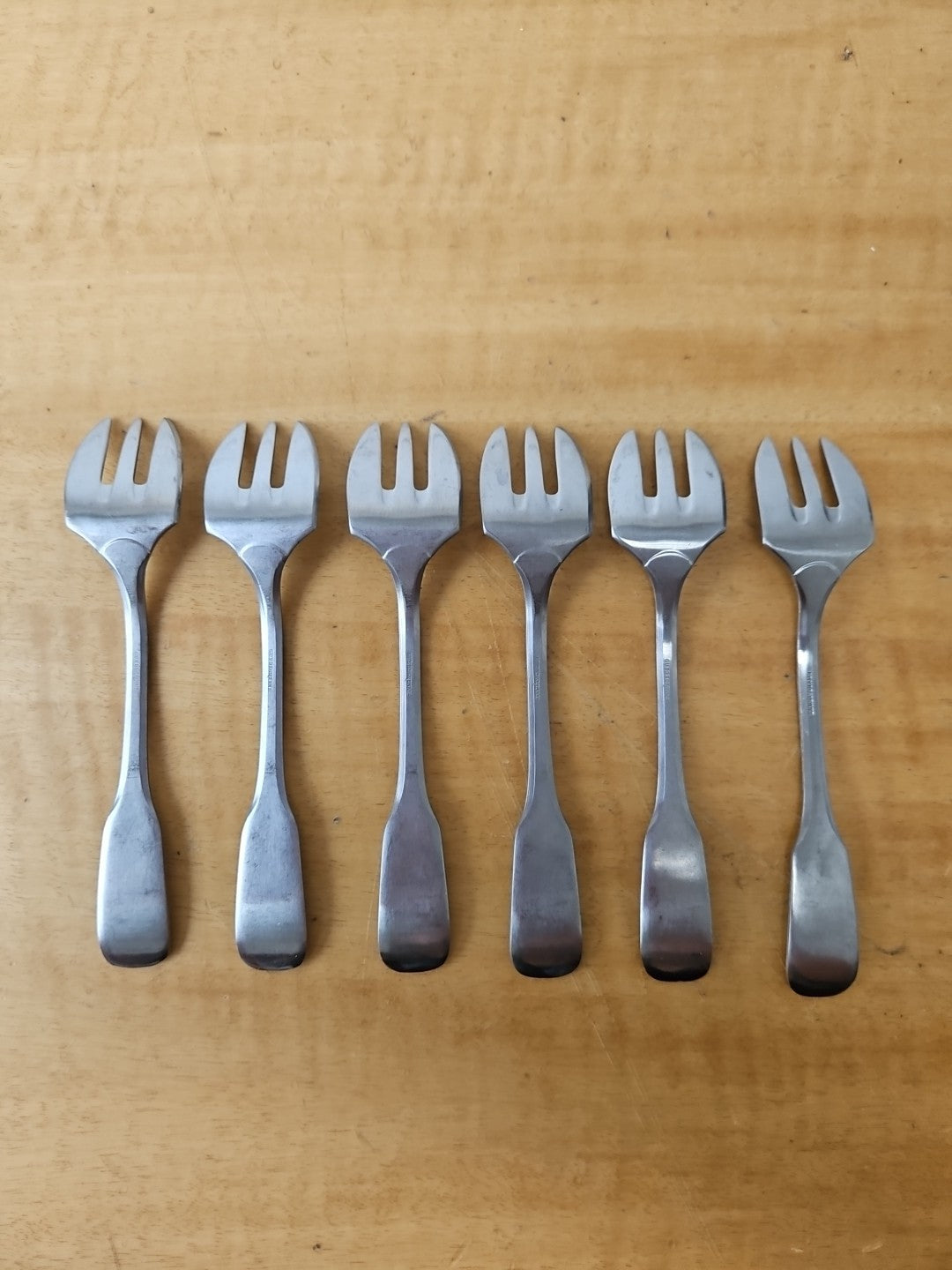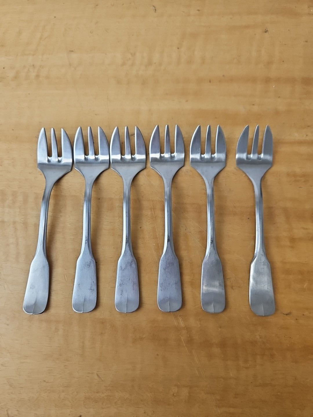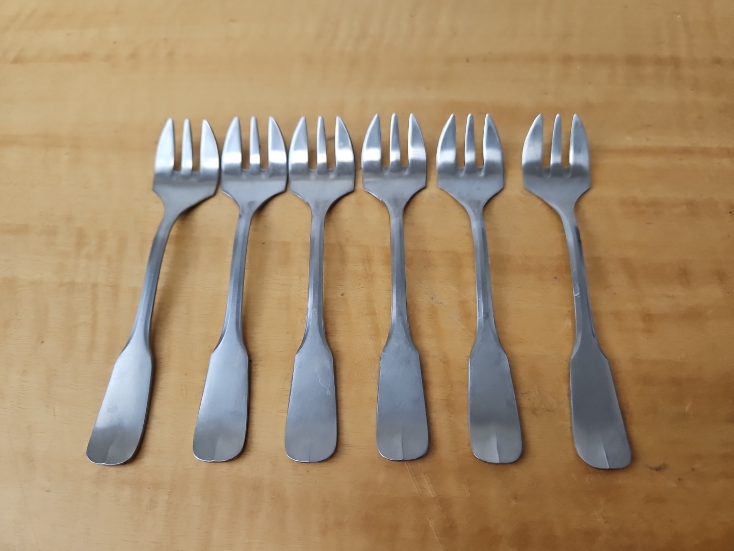 Guy Degrenne small cake / dessert fork *SET of 6 *Stainless Steel 5 inch