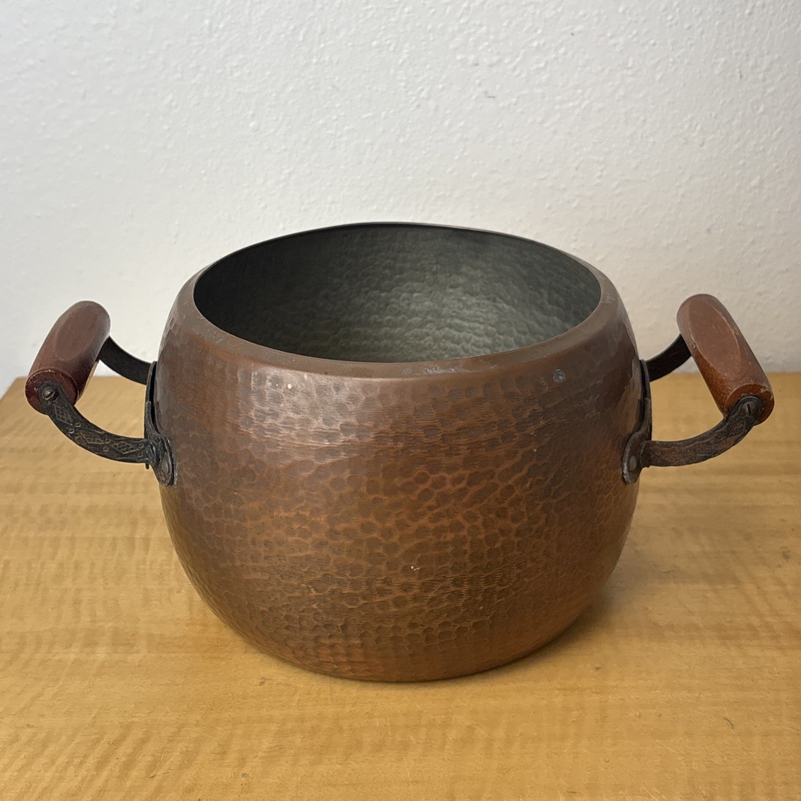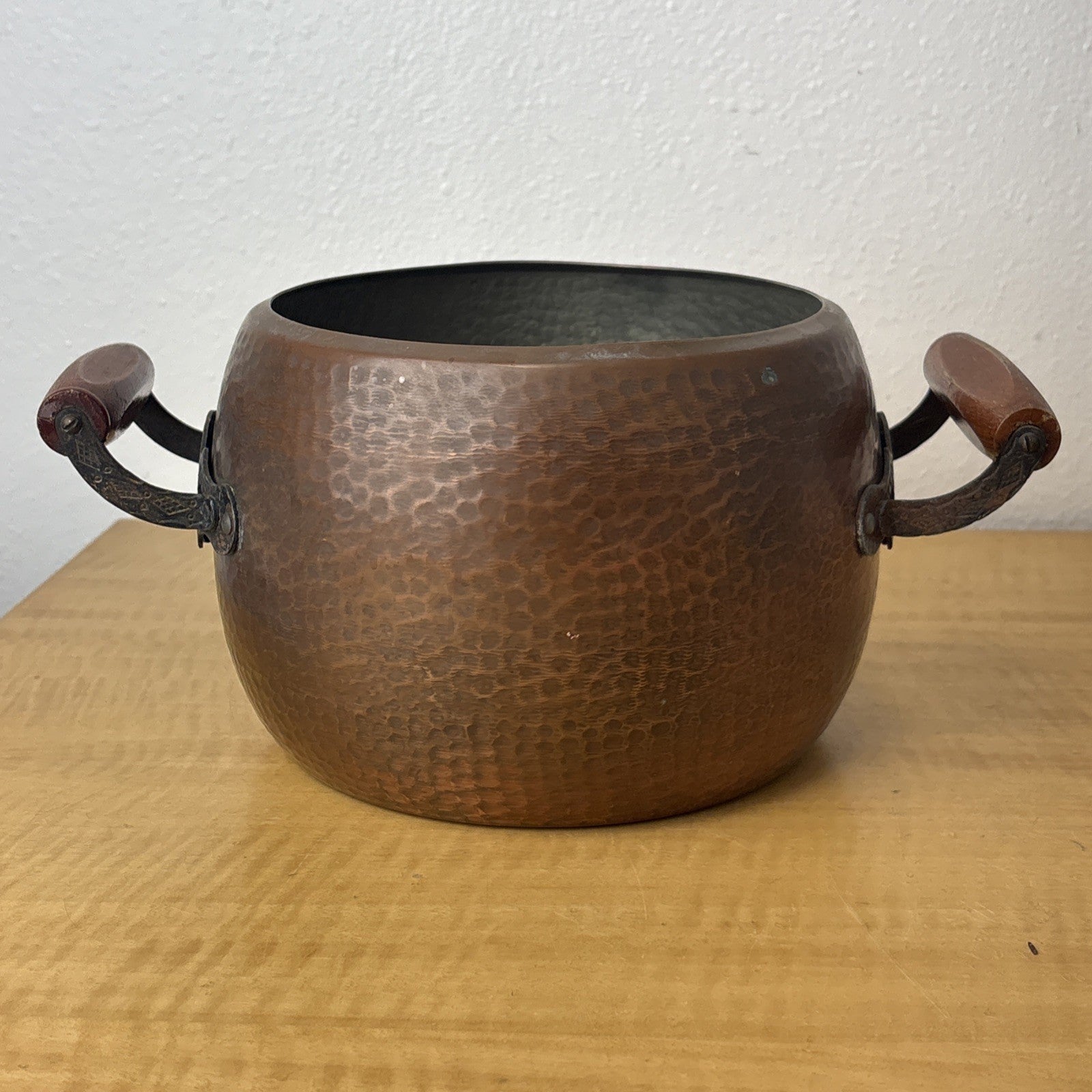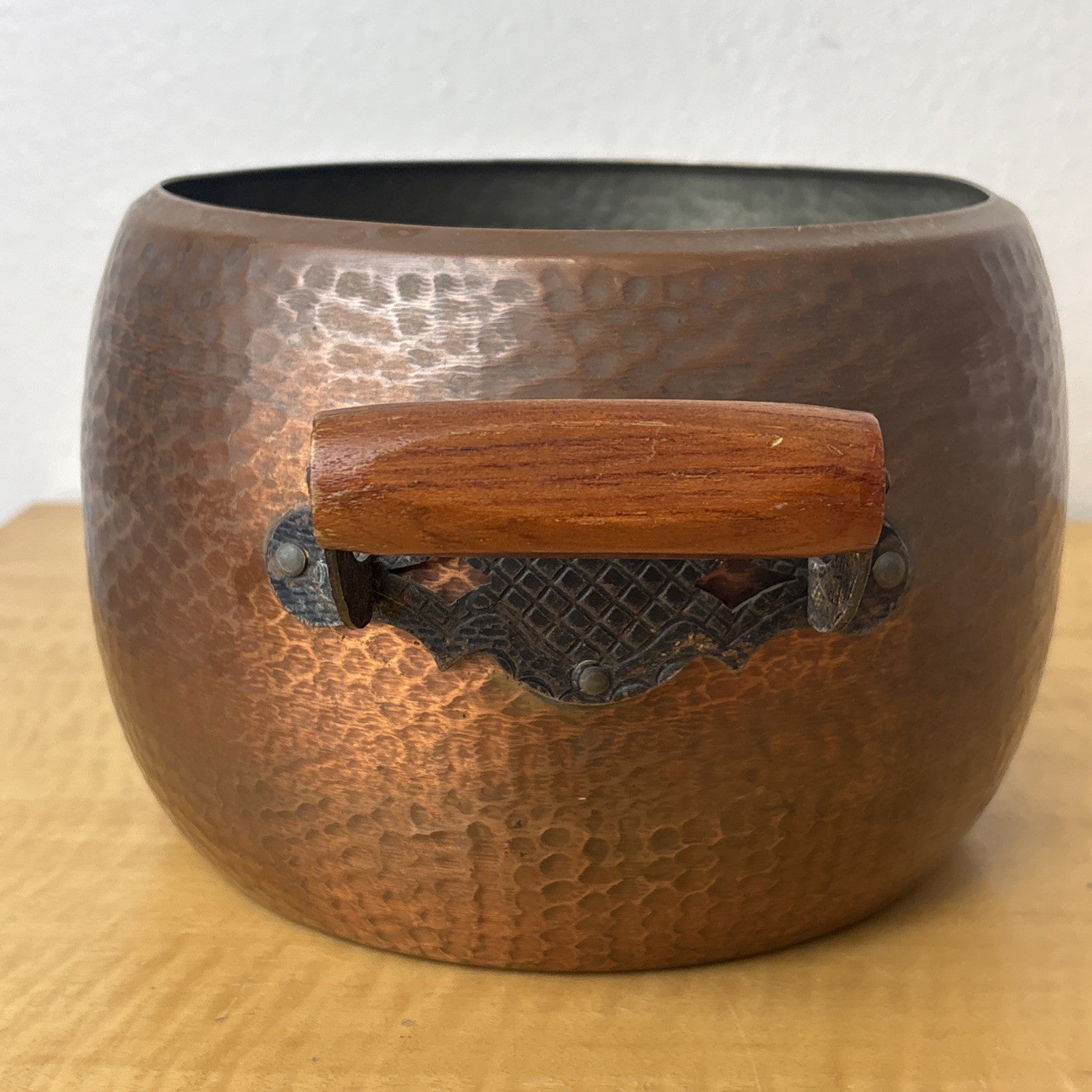 Hammered Copper Pot with Wood & Metal Handles