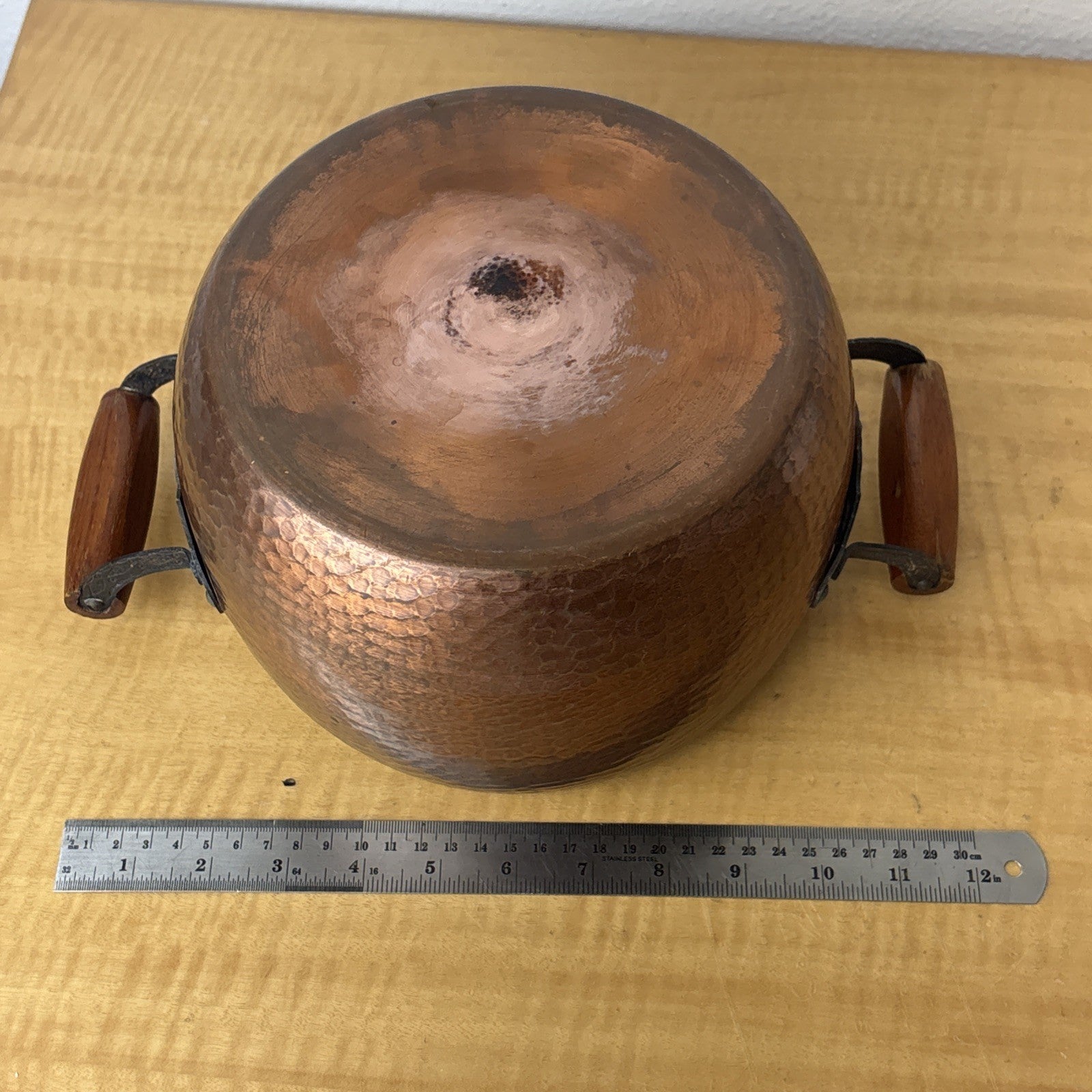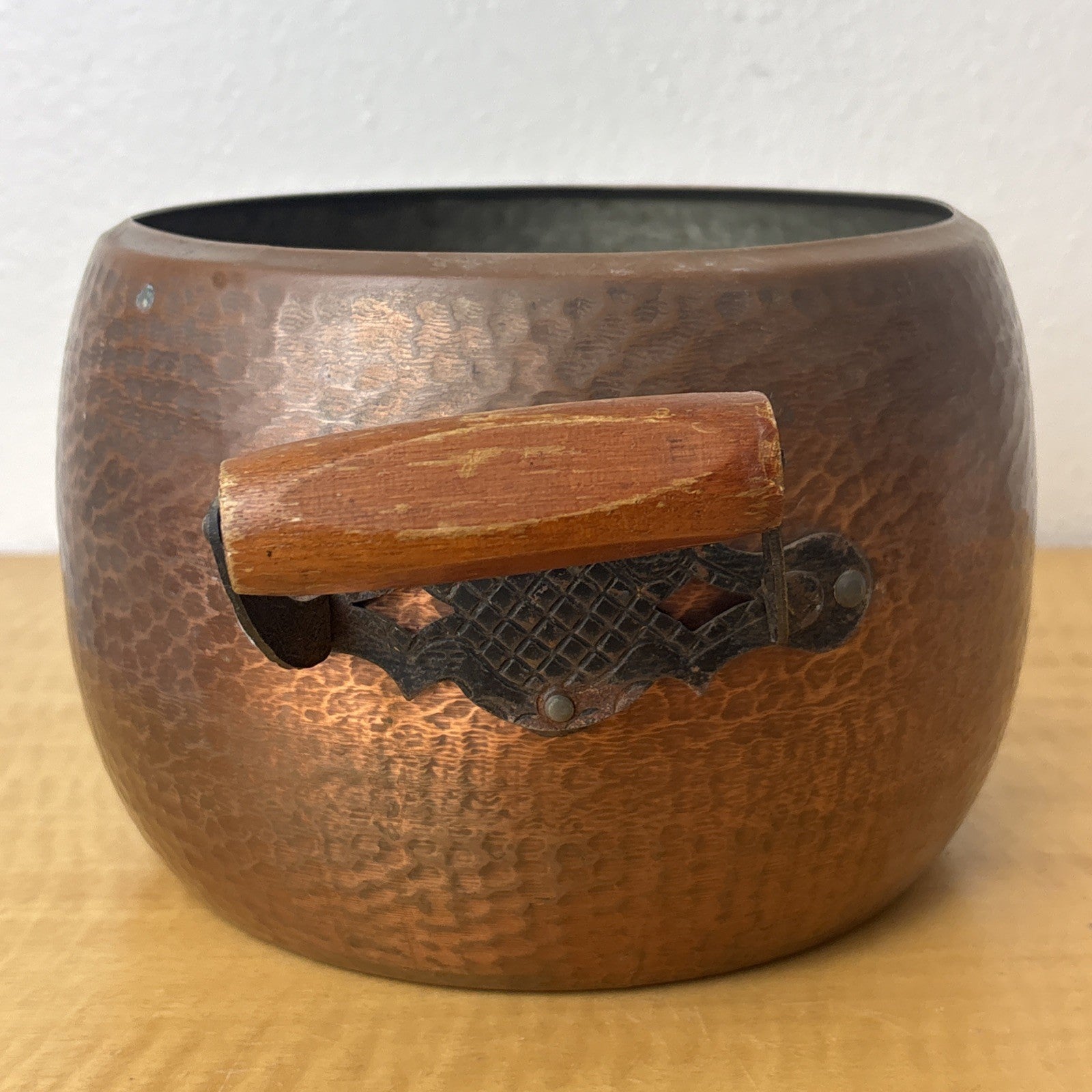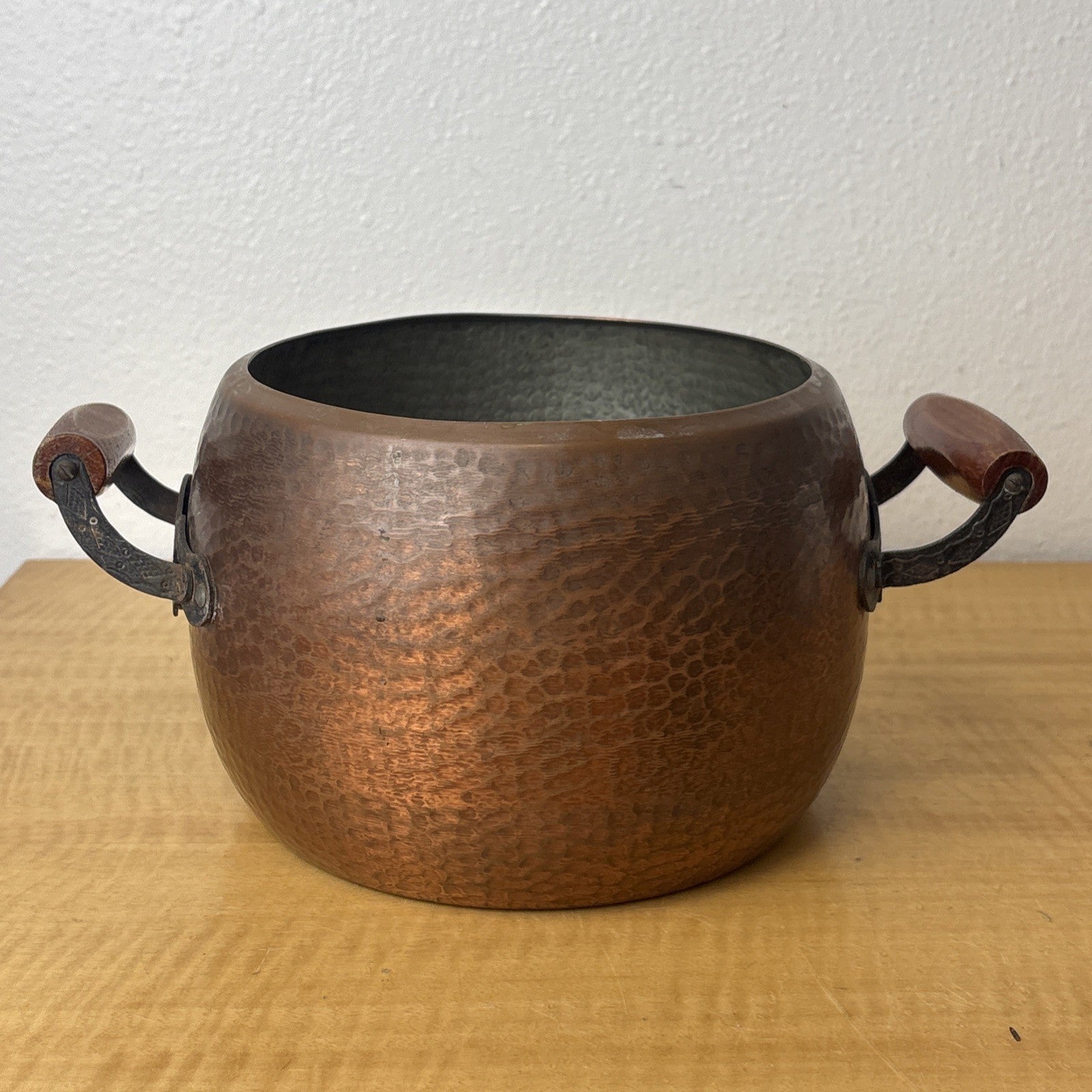 Hammered Copper Pot with Wood & Metal Handles