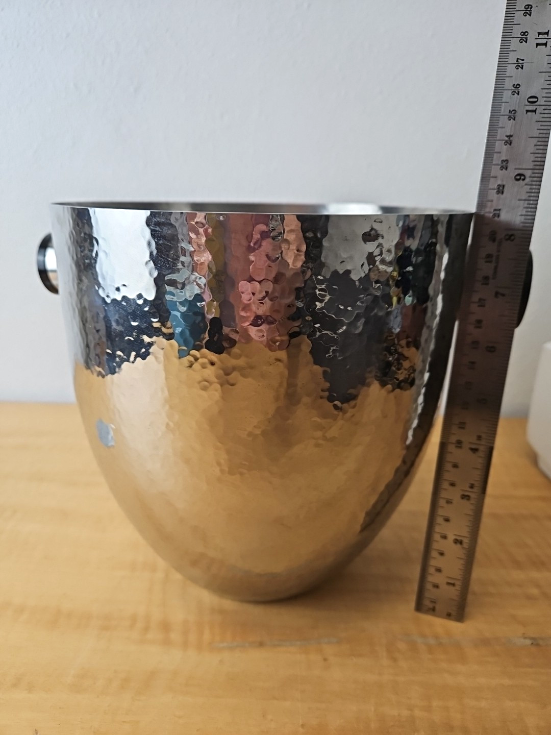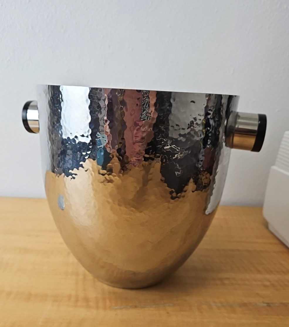 Hammered Stainless Steel Ice Bucket with Black Resin Handles