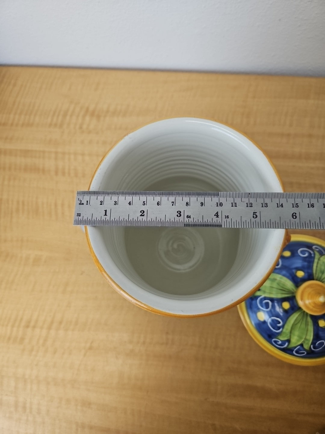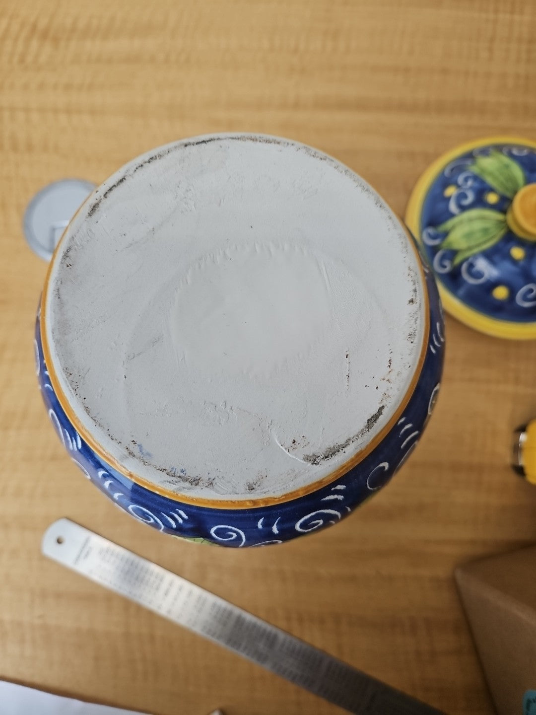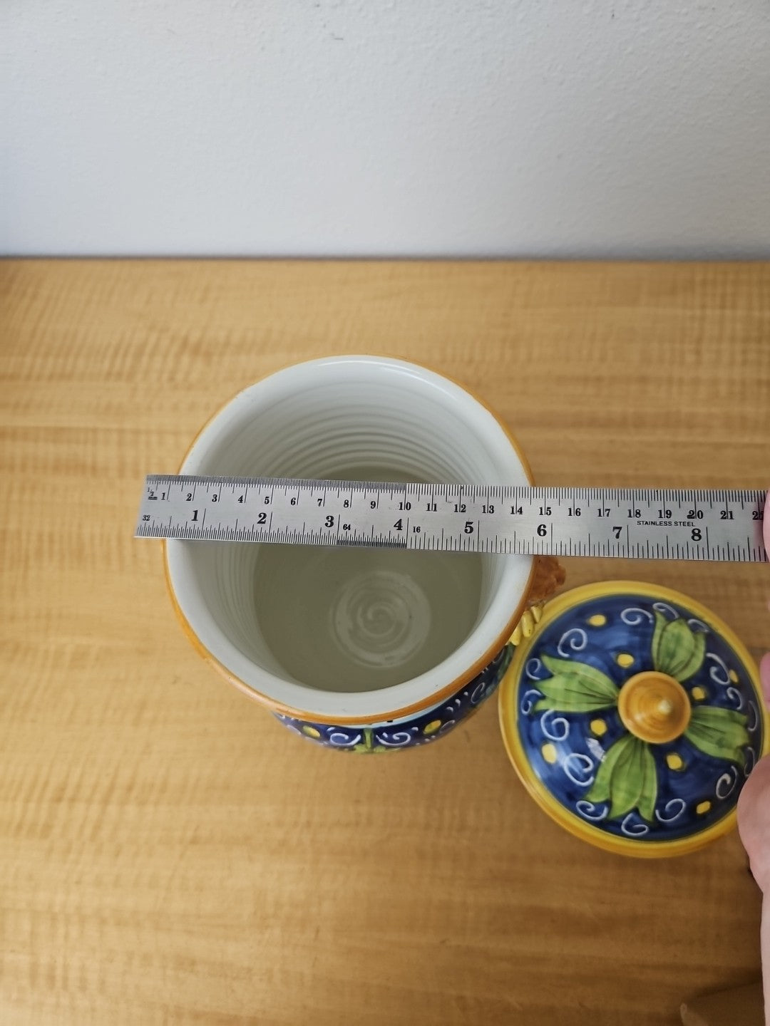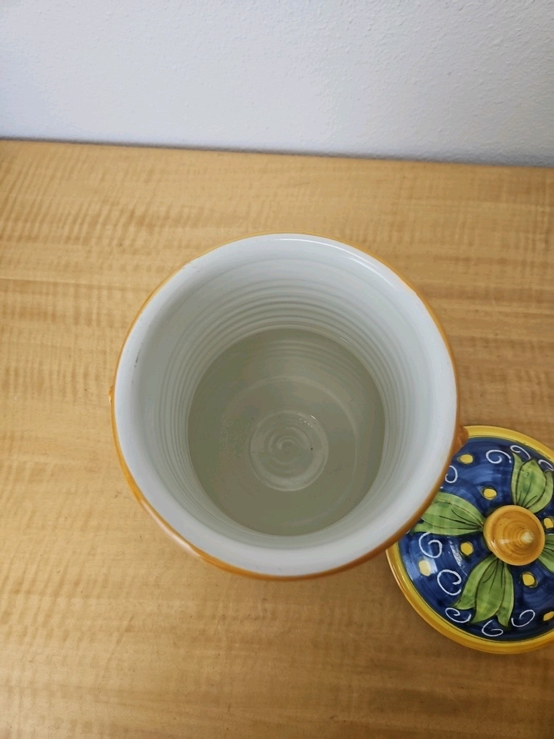 Hand Painted Italian Canister Pottery Crock Ceramic Caffe Lion Head w/ Lid
