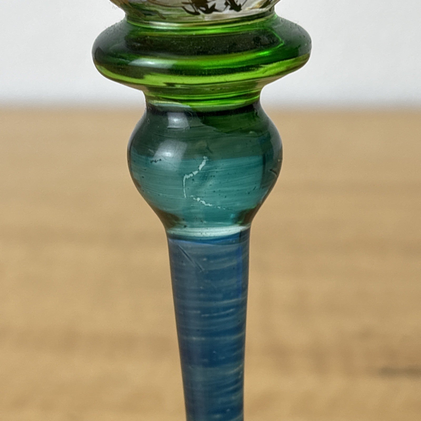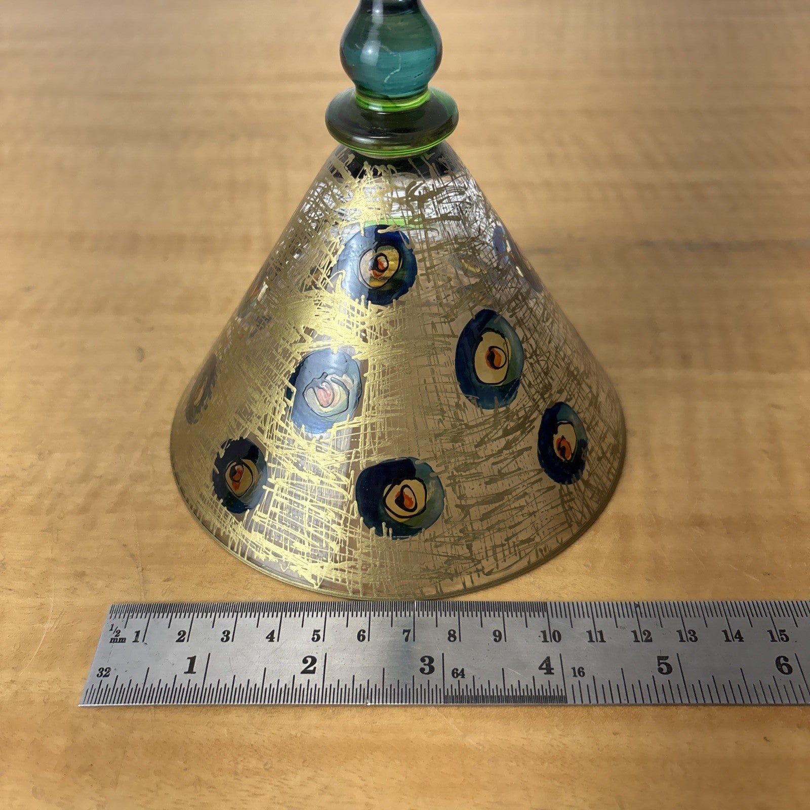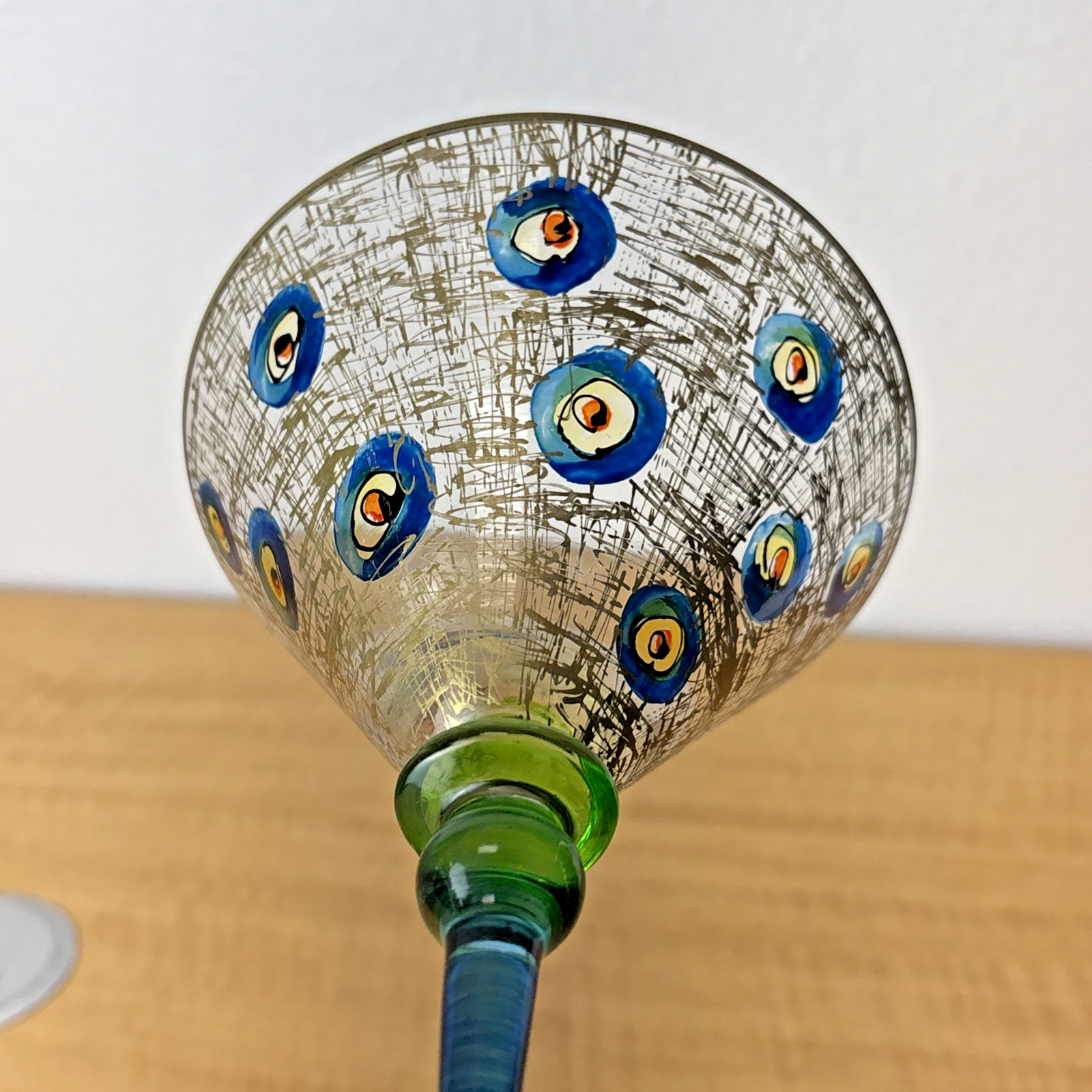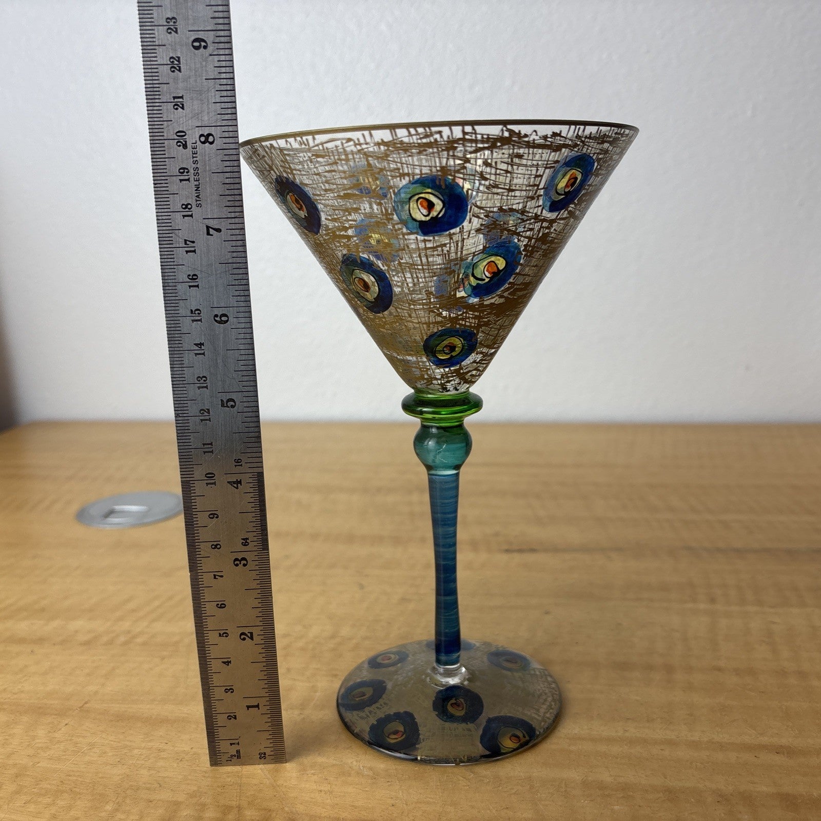 Hand Painted Peacock Martini Cocktail Glass Gold Lattic Olive Design