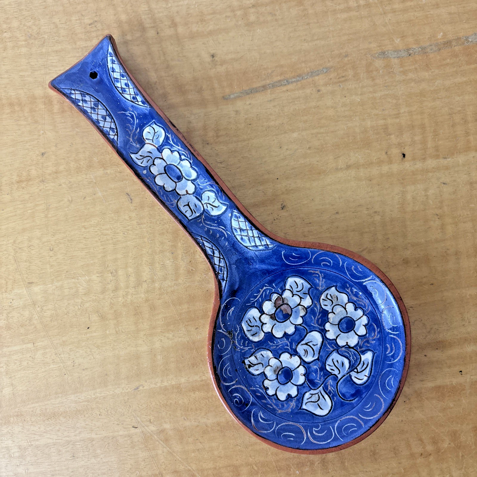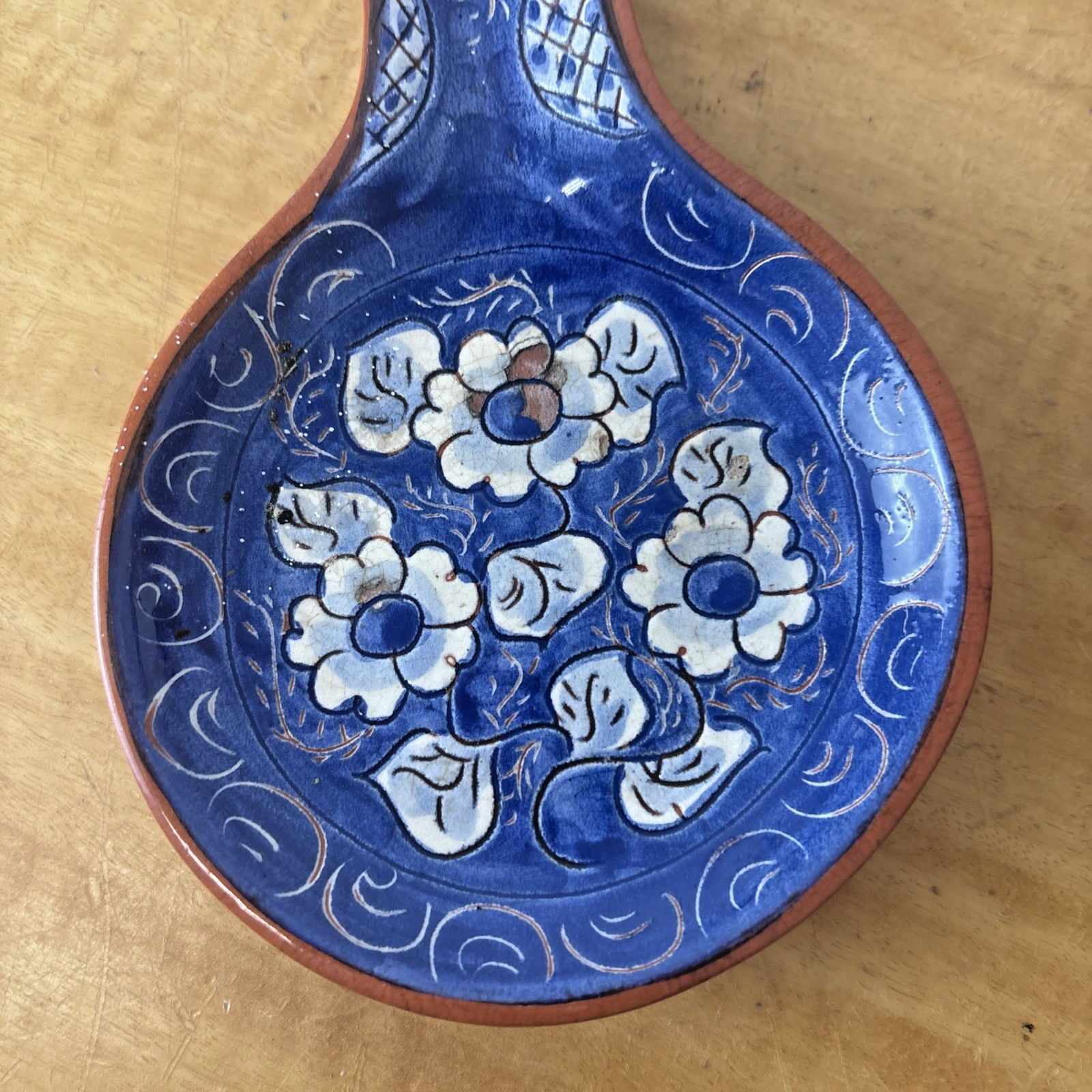 Hand-Painted Portuguese Pottery Clay Terracotta Spoon Rest Portugal Ceramic