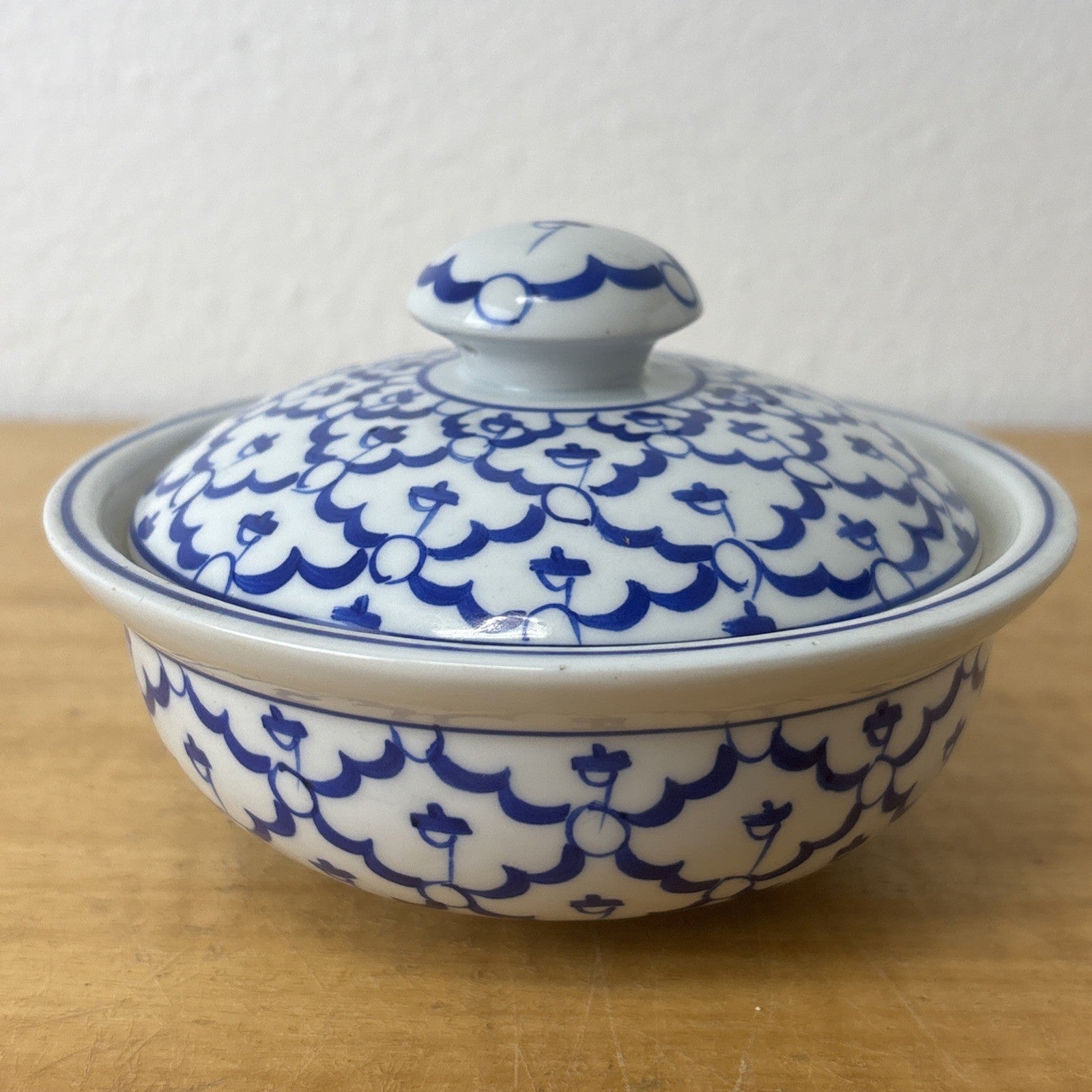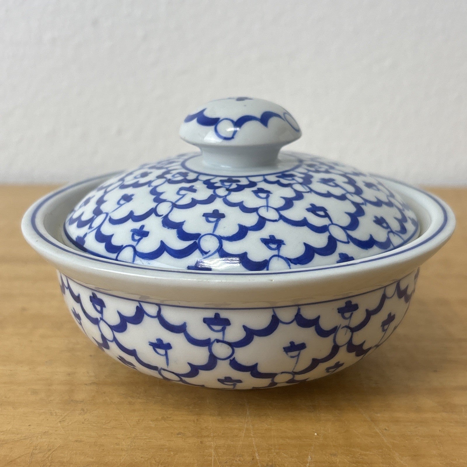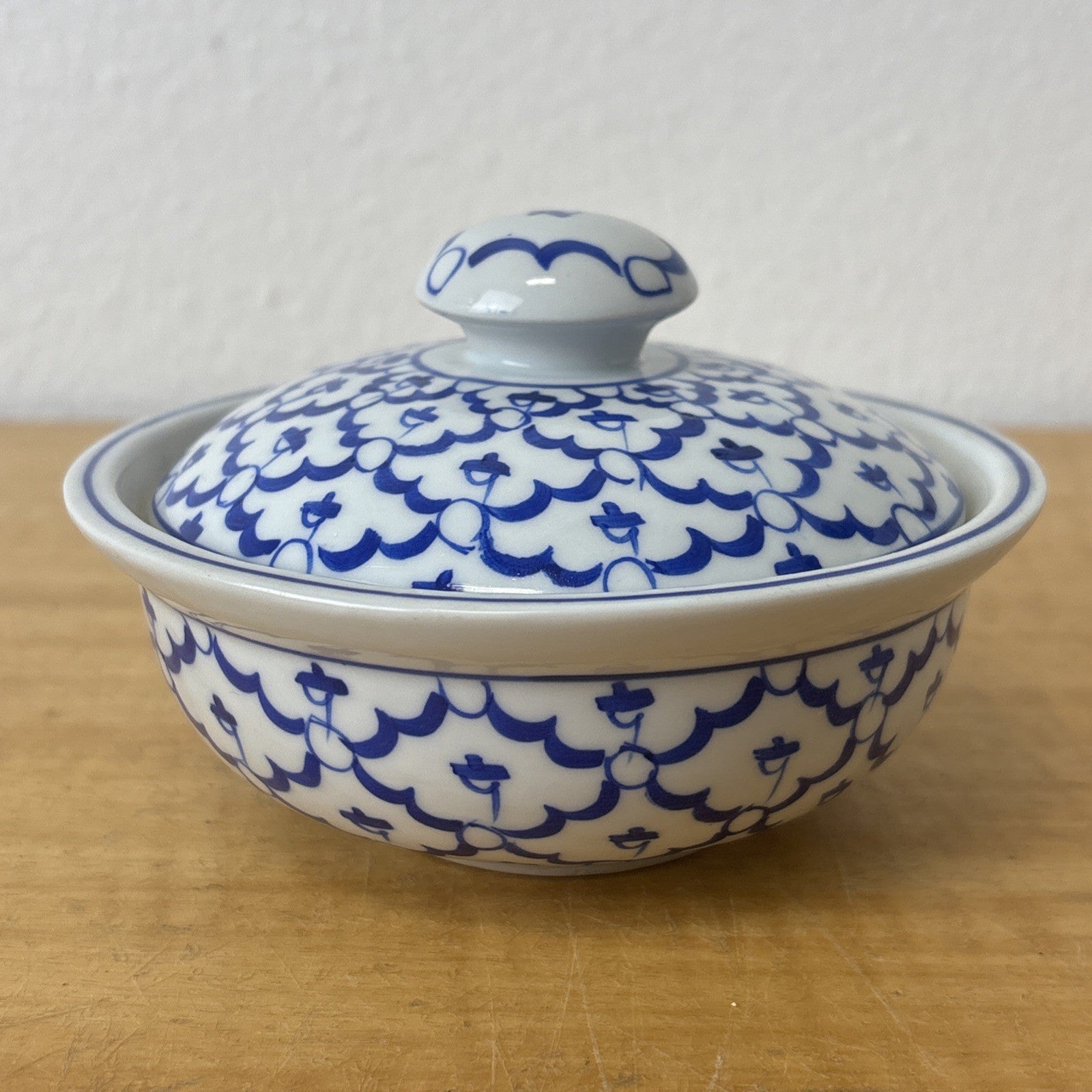 Hand Painted Thai Ceramic Bowl w/ Lid Blue and White