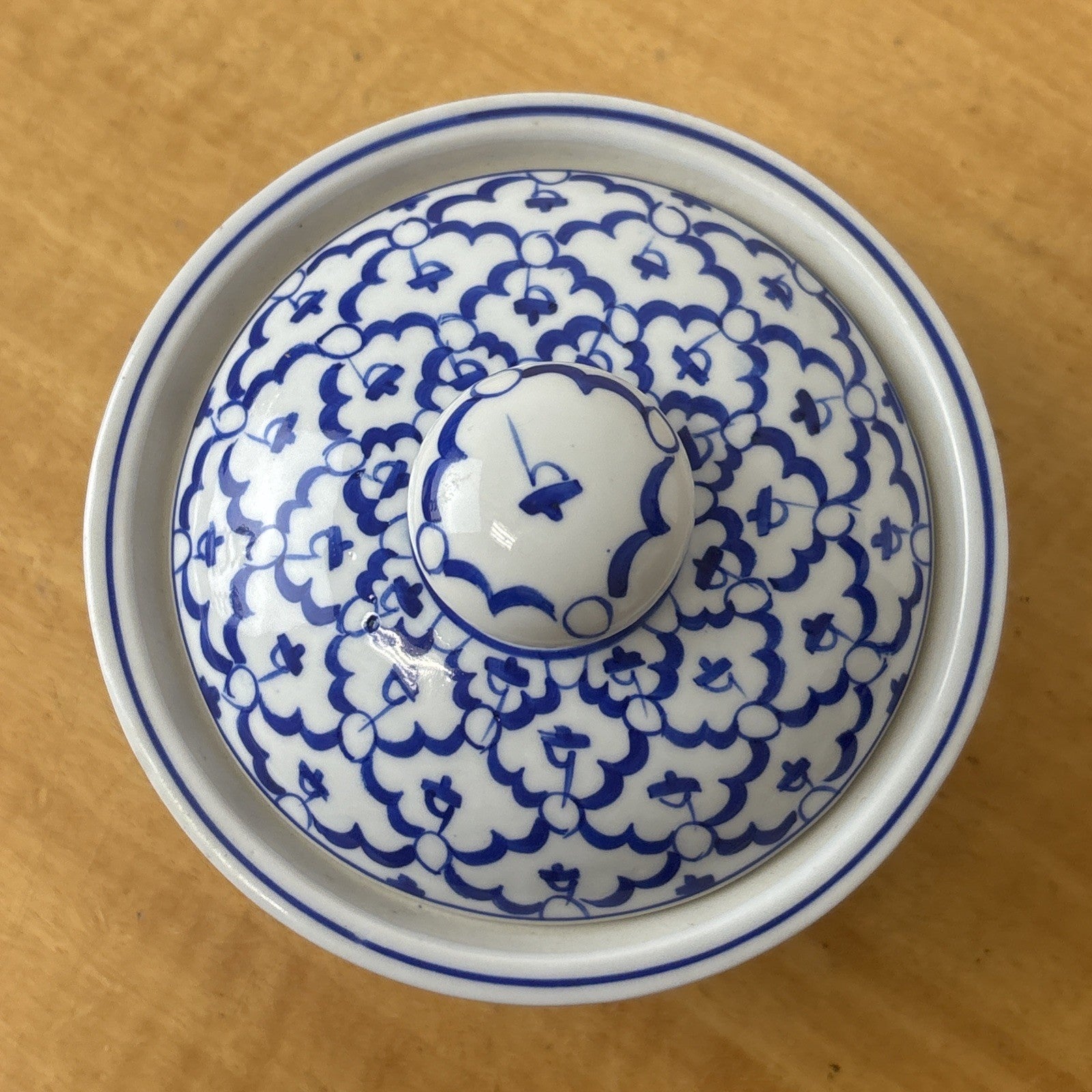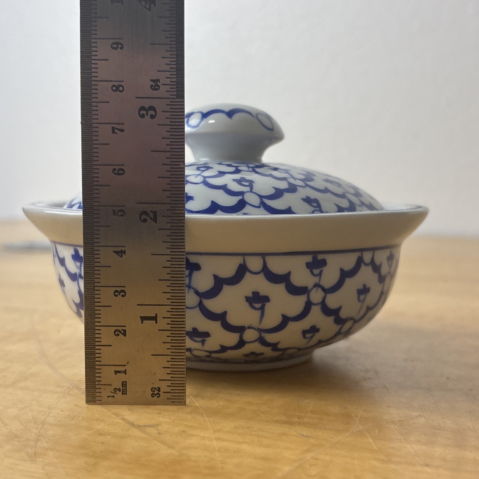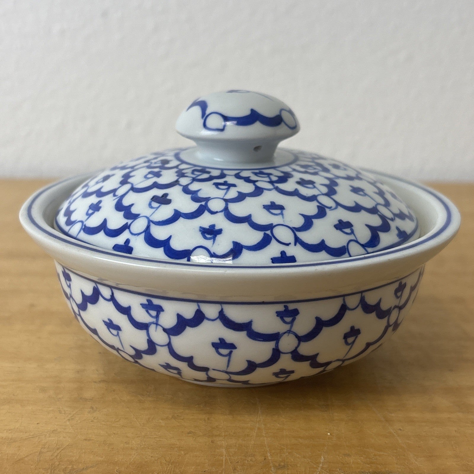 Hand Painted Thai Ceramic Bowl w/ Lid Blue and White