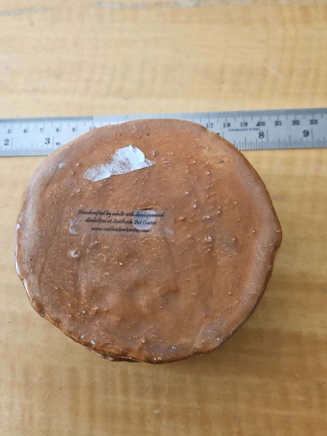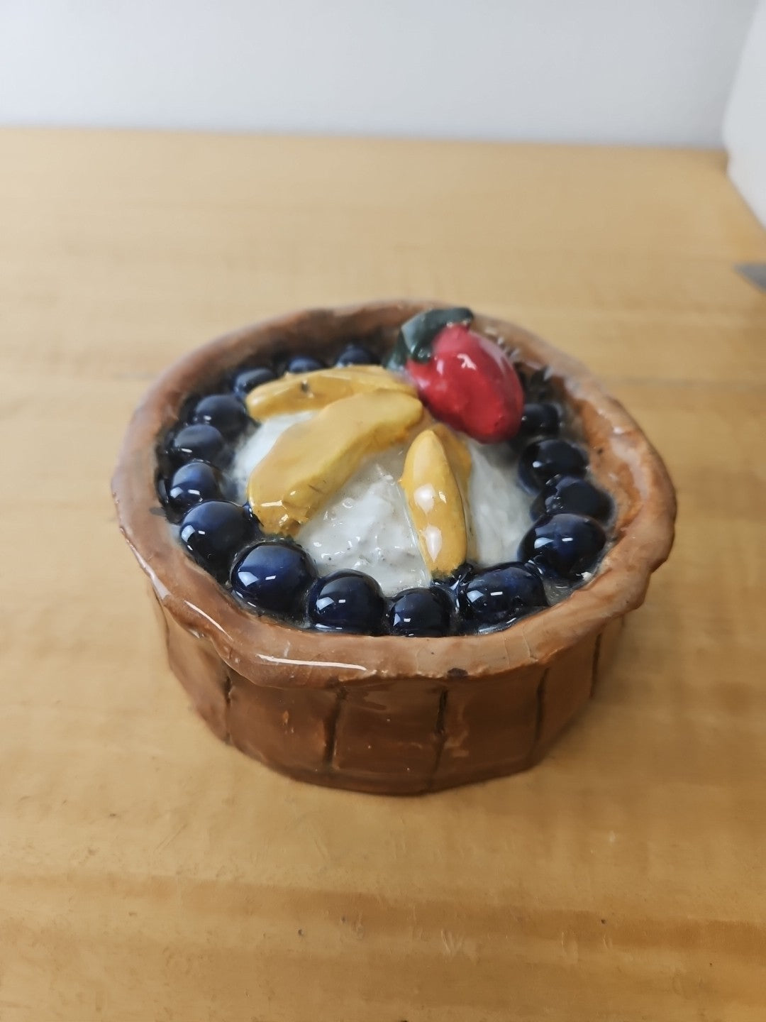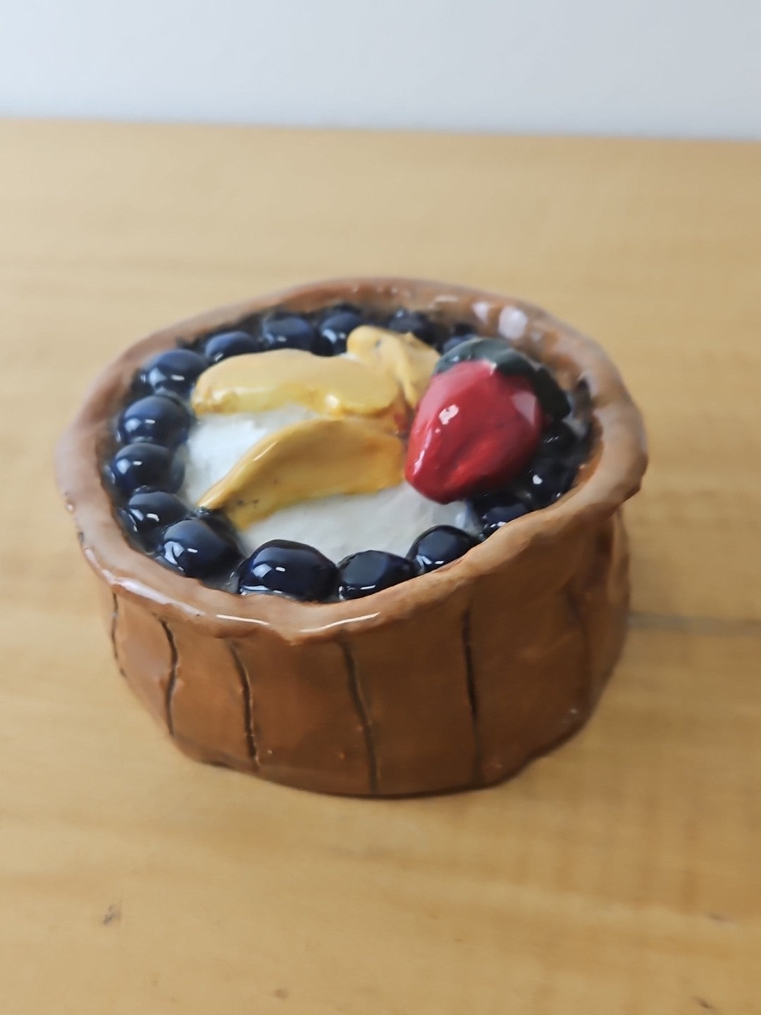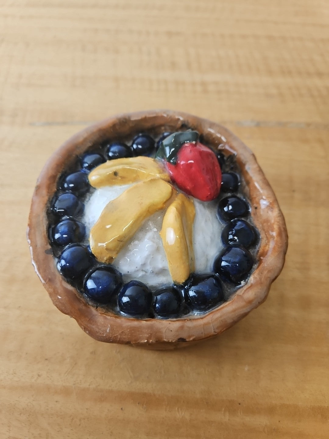 Handmade ceramic fruit tart at southside art center, by adults with disabilities