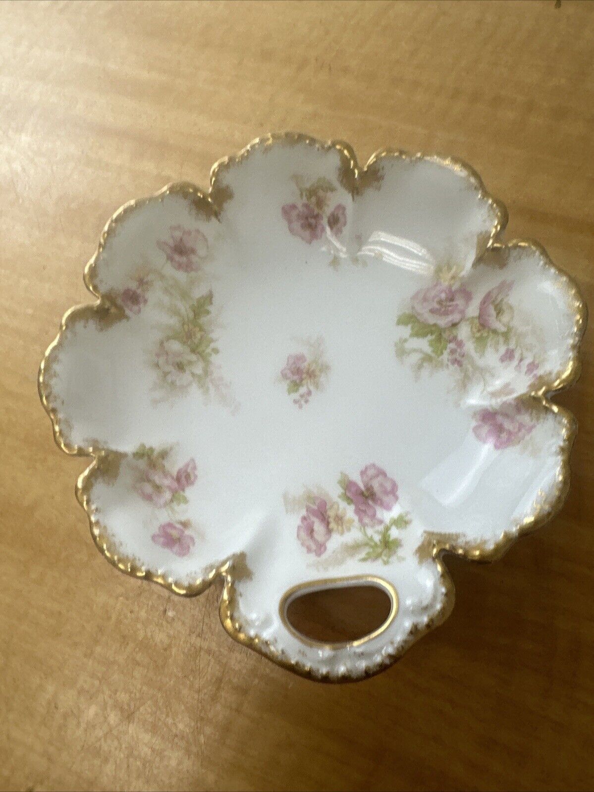 Haviland Limoges Serving Bowl - Pink Roses with Greenery - Gold Trim