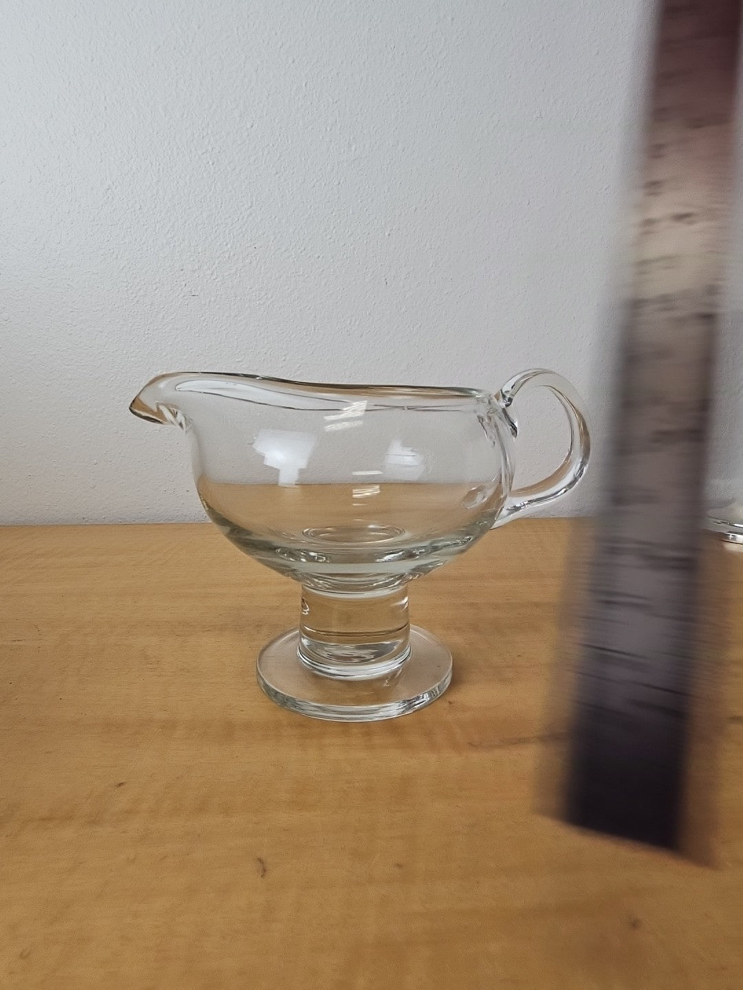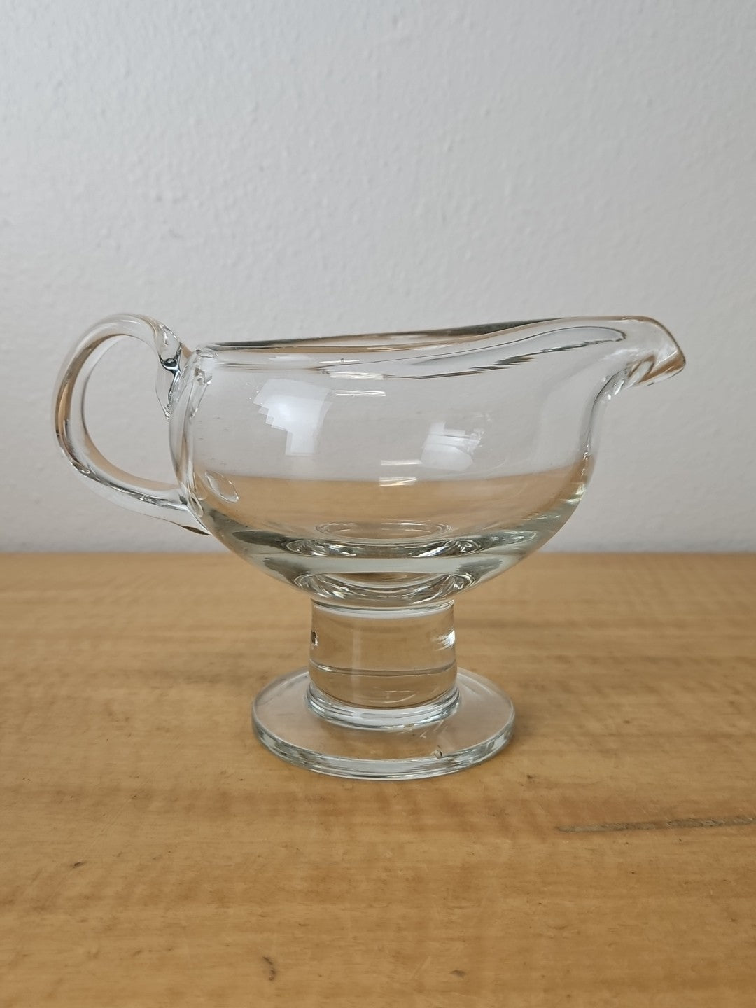 Heavy Blown Glass Clear Footed Gravy Boat, Sauce Pitcher