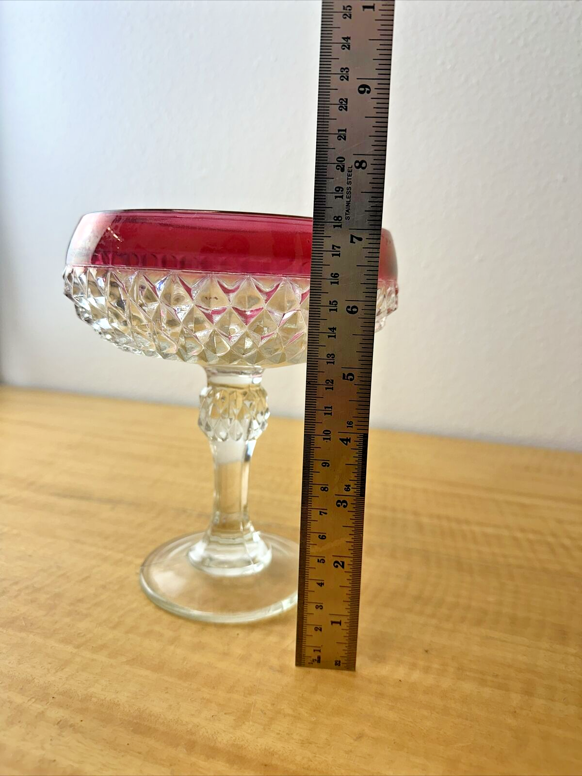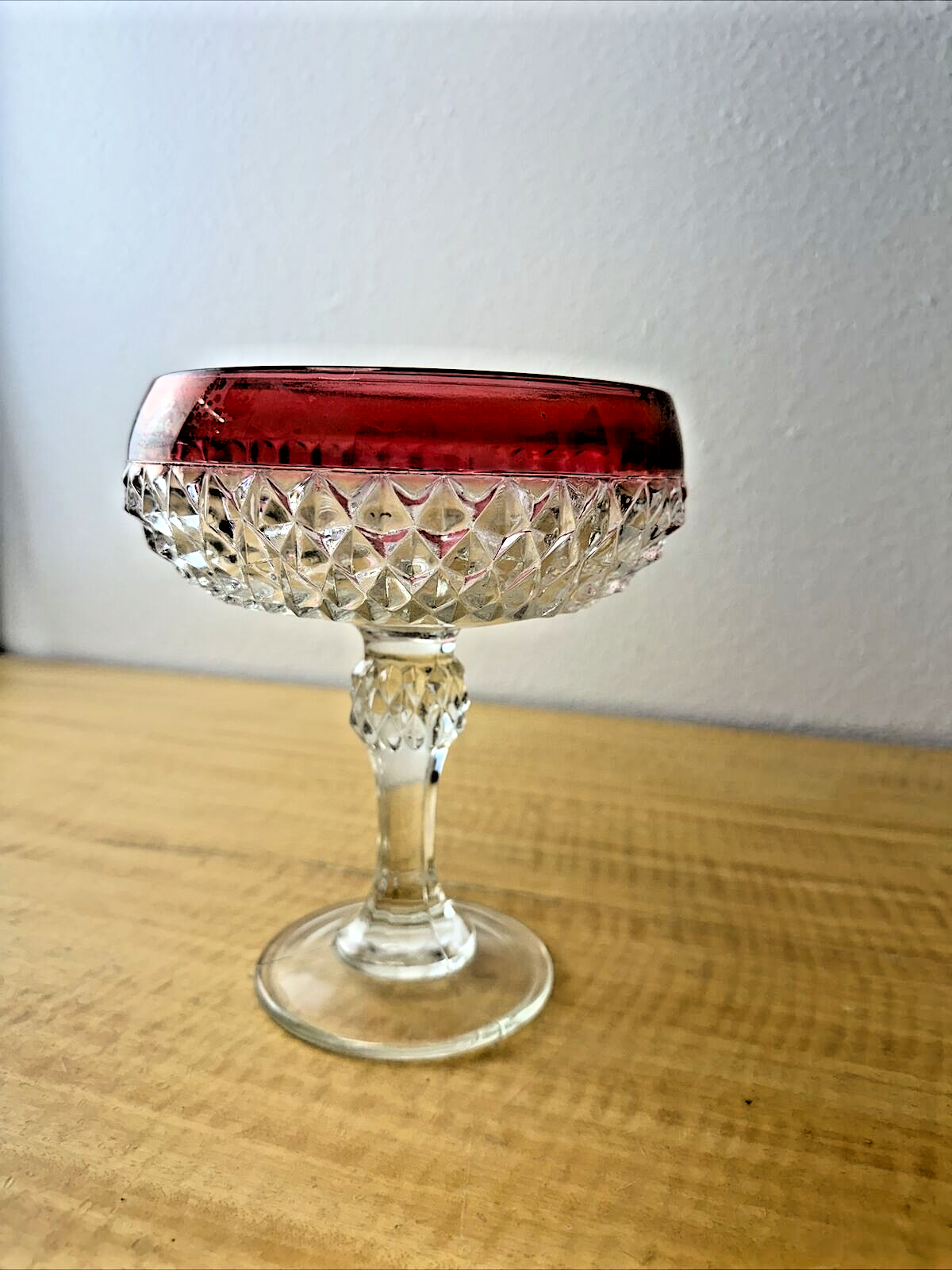 INDIANA GLASS DIAMOND POINT RUBY BAND CANDY JAR/COMPOTE