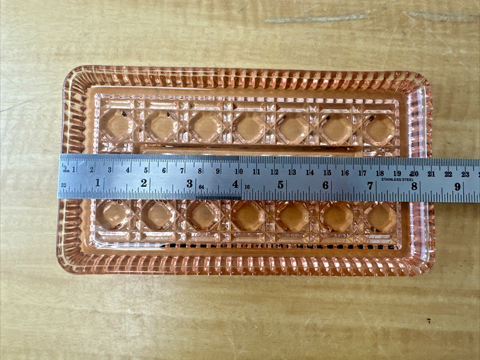 Indiana Glass Peach Ballard Cranberry Tray 4061 8.5x5" Oneida