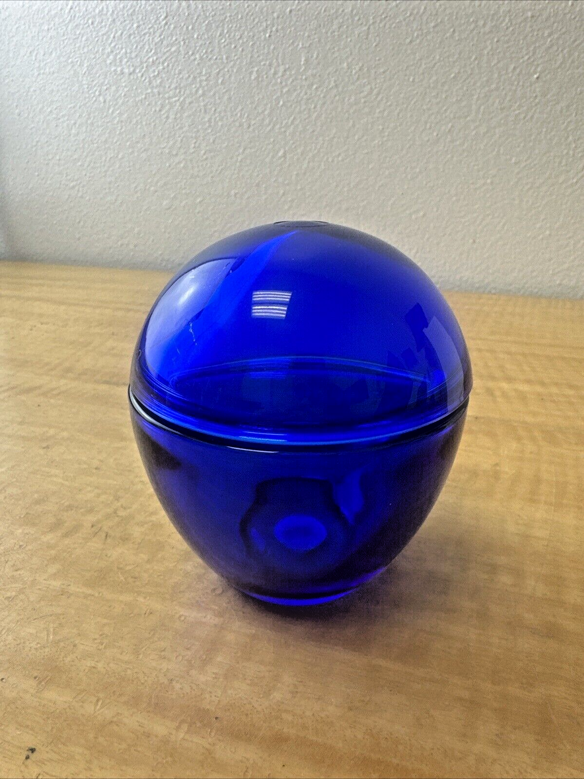 Indigo Blue Convex Cover Glass Egg Dome Lidded Box - Pristal De France