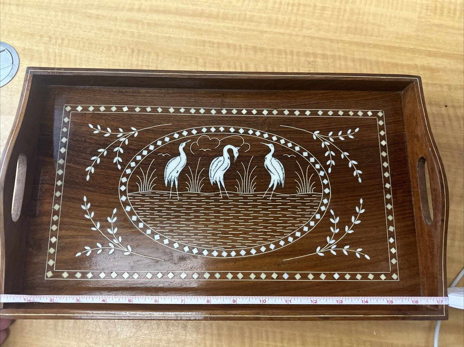 Inlaid Handmade Wooden Service Tray With Handles - Indian