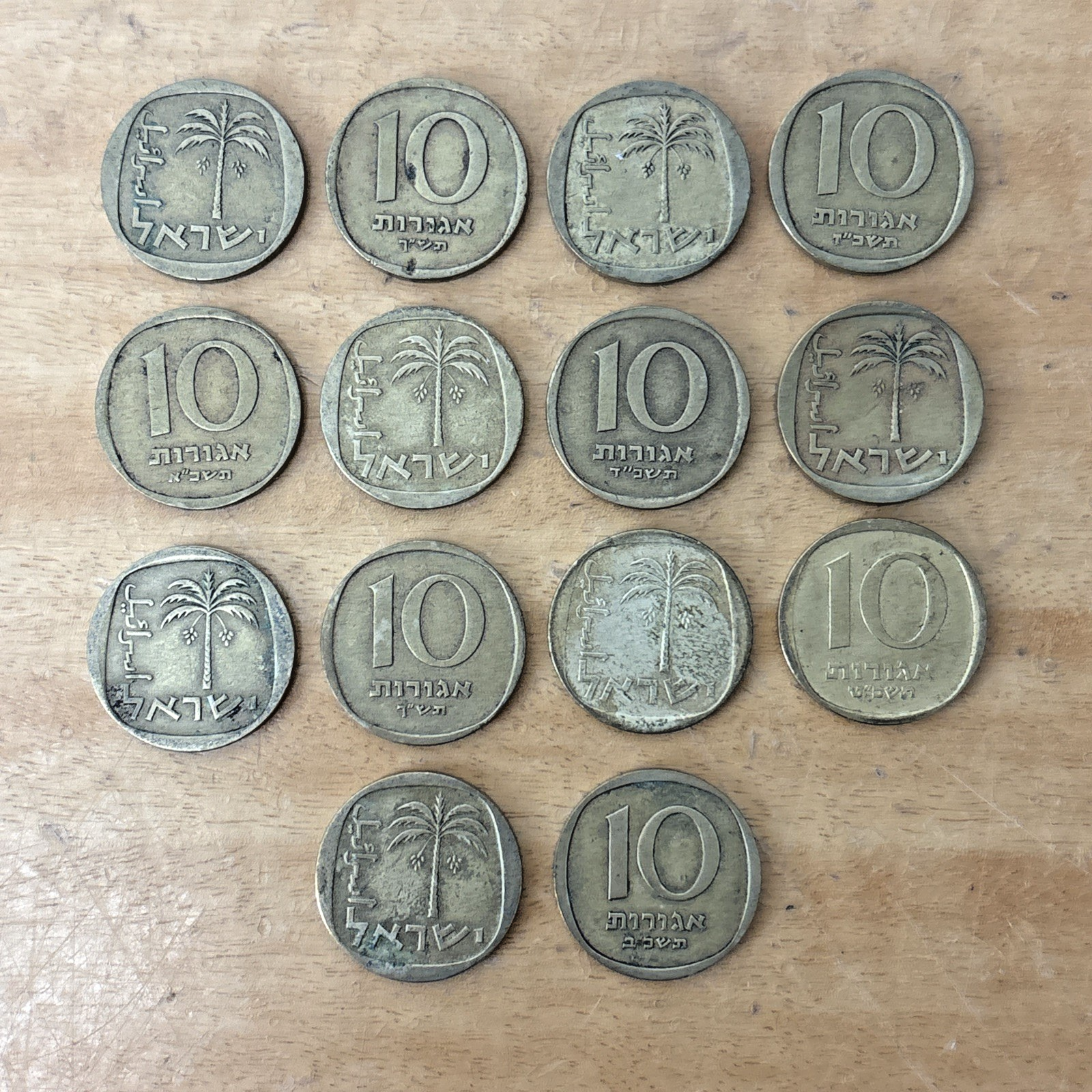Israel Israeli 10 Agorot Palm Tree Coin - Set of 14