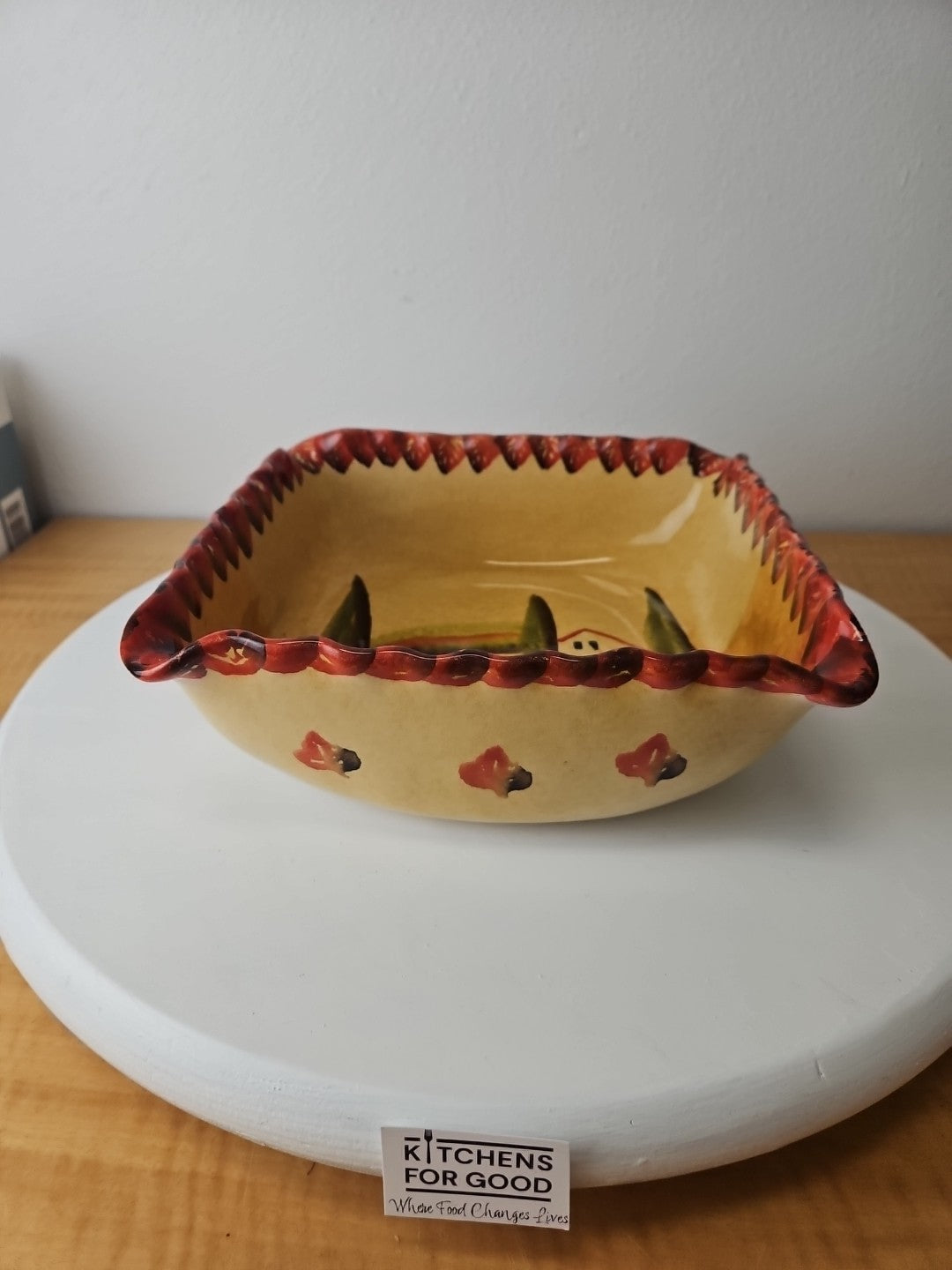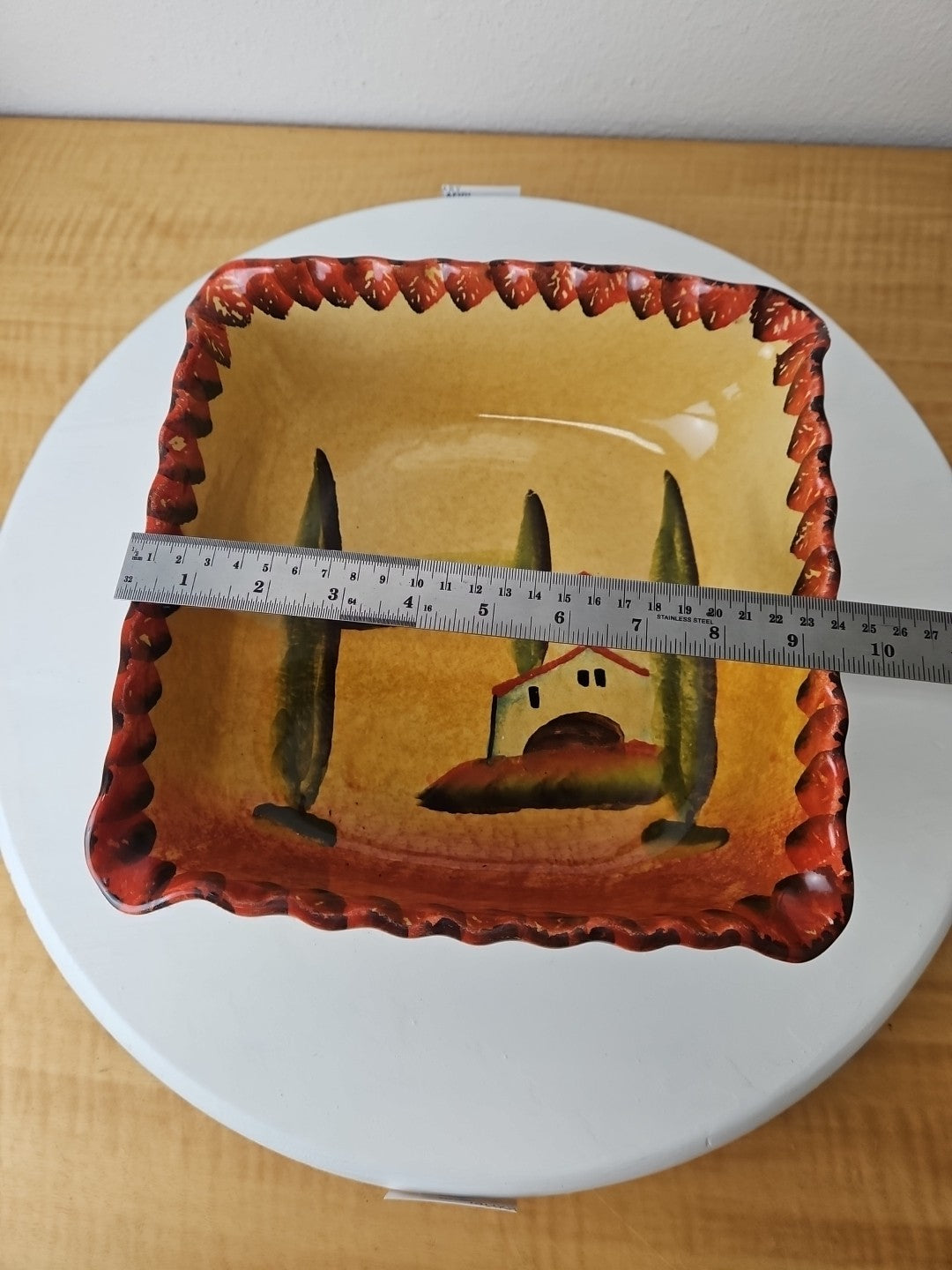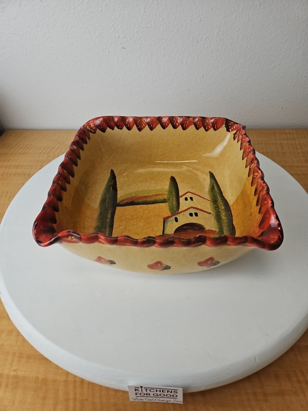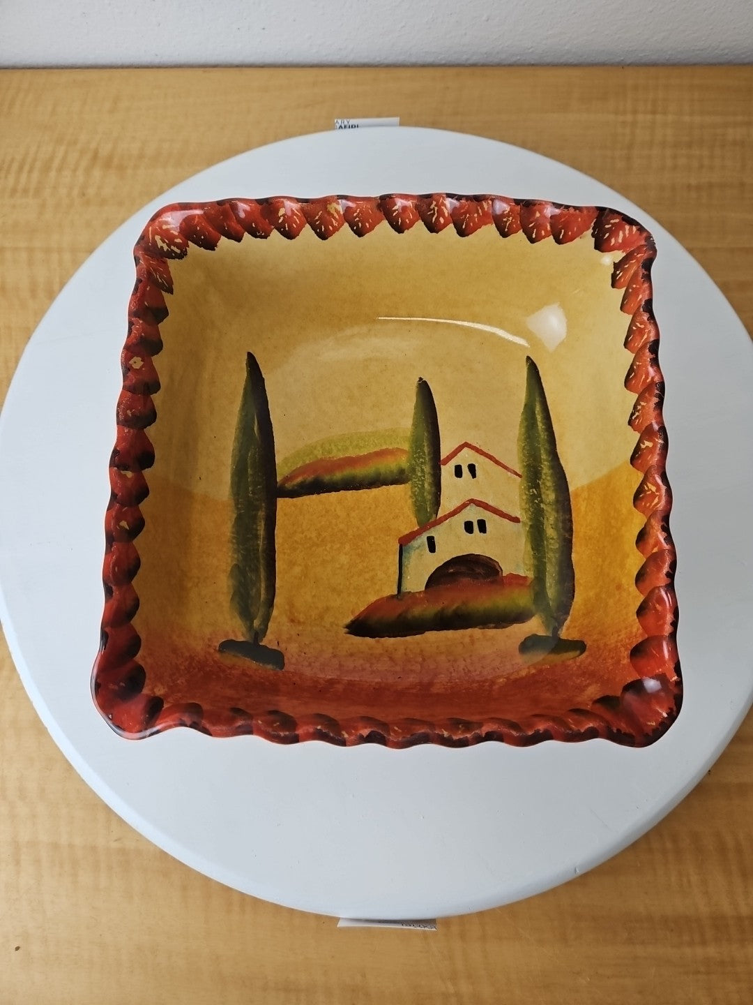 Italica Ars Hand Painted large Square SERVING BOWL 9.5". FIRENZE - Italy - Villa