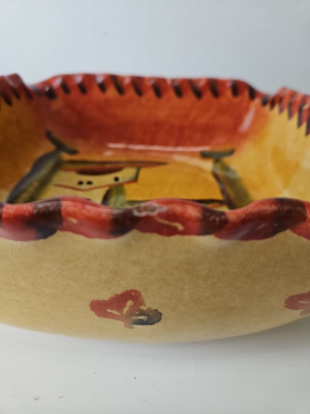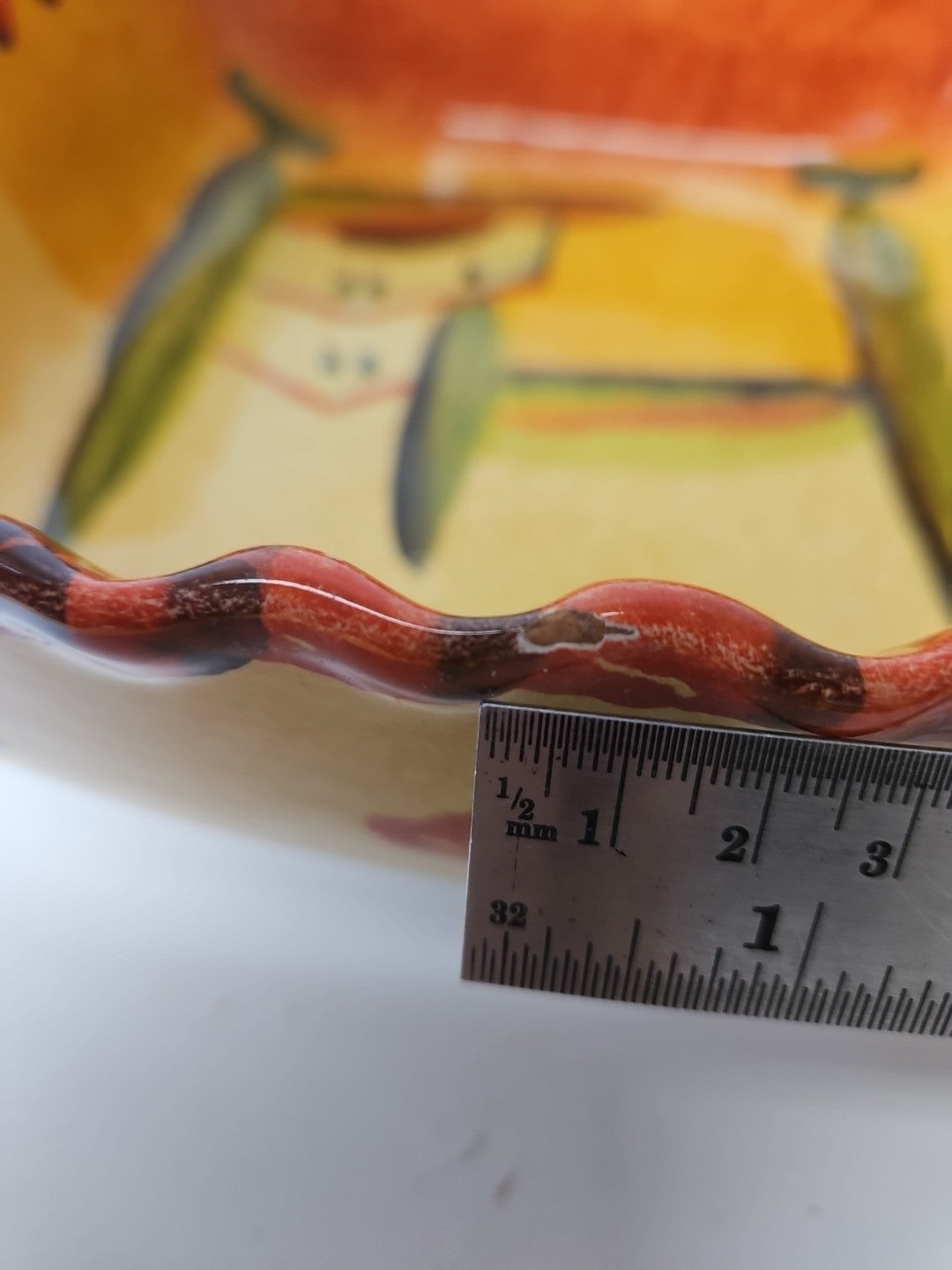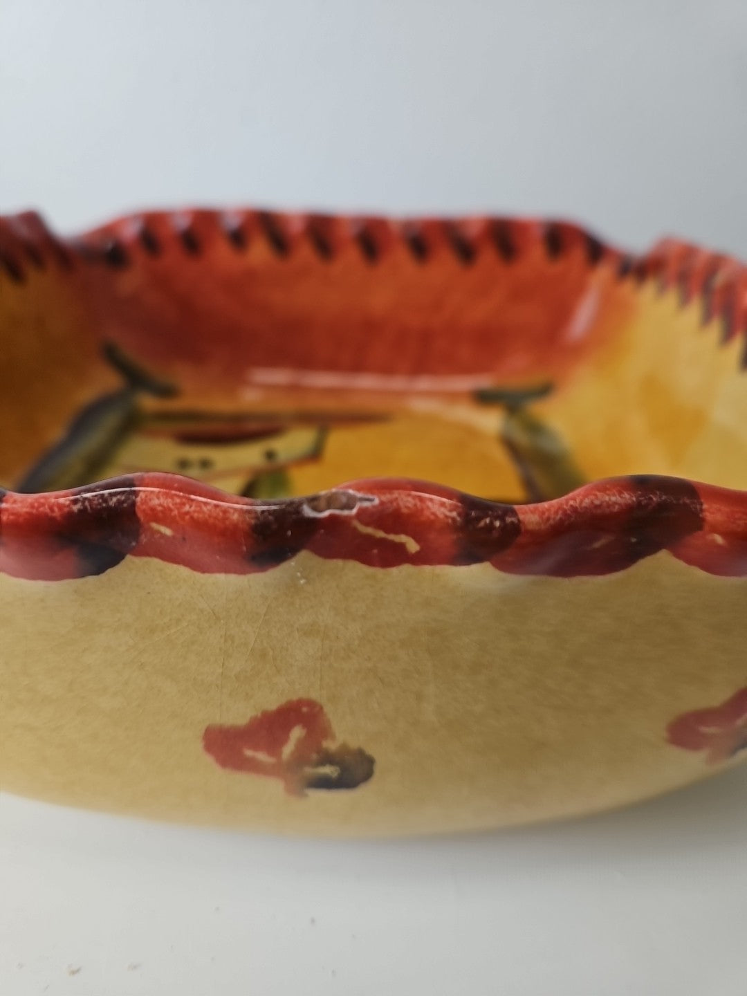 Condition Description: see photos, chipped corner underneath the rim, small chip on rim on the back side
