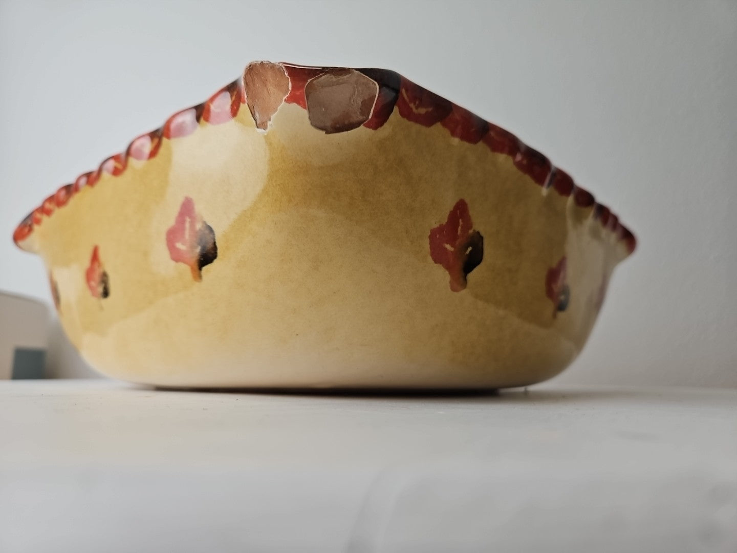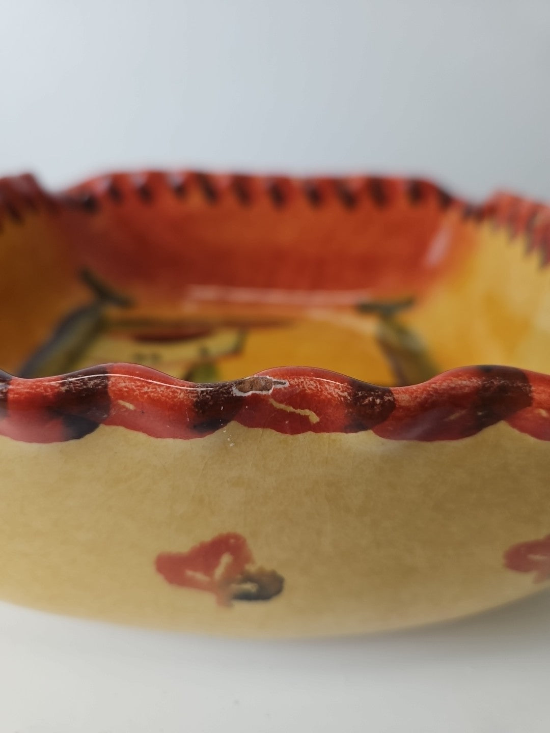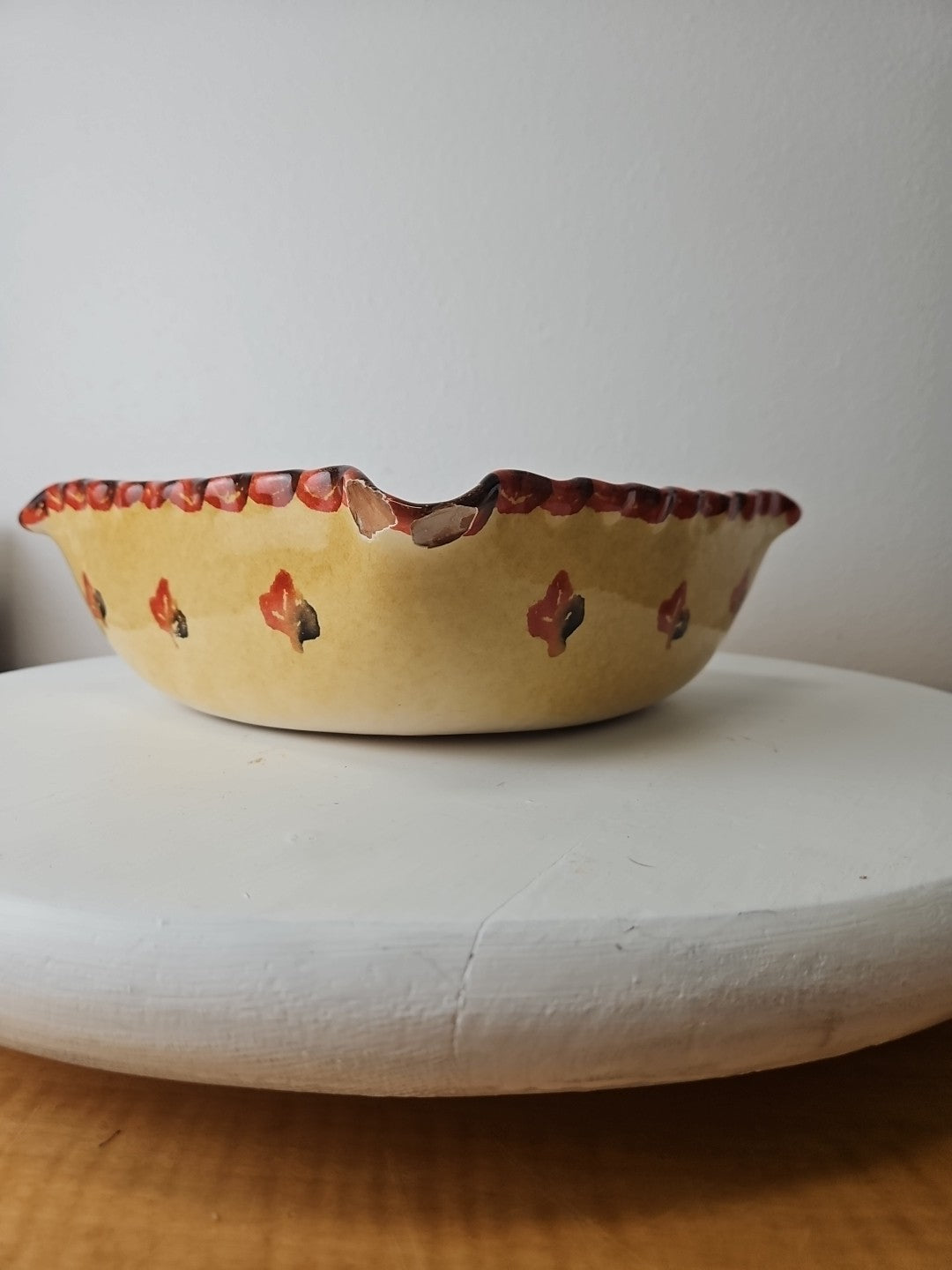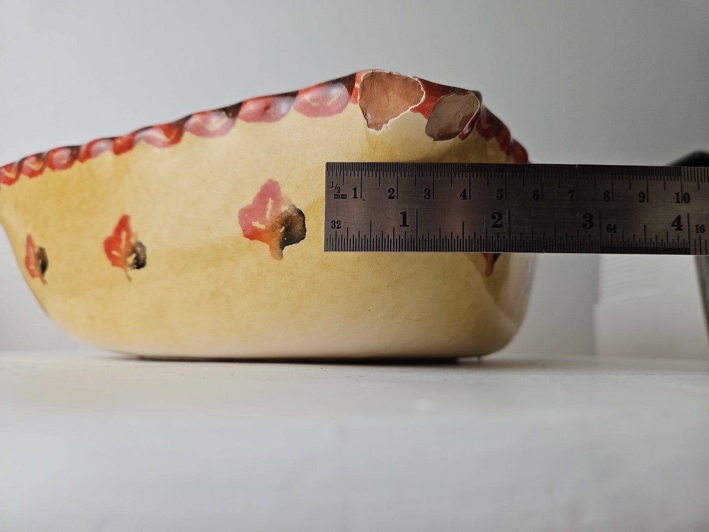Condition Description: see photos, chipped corner underneath the rim, small chip on rim on the back side