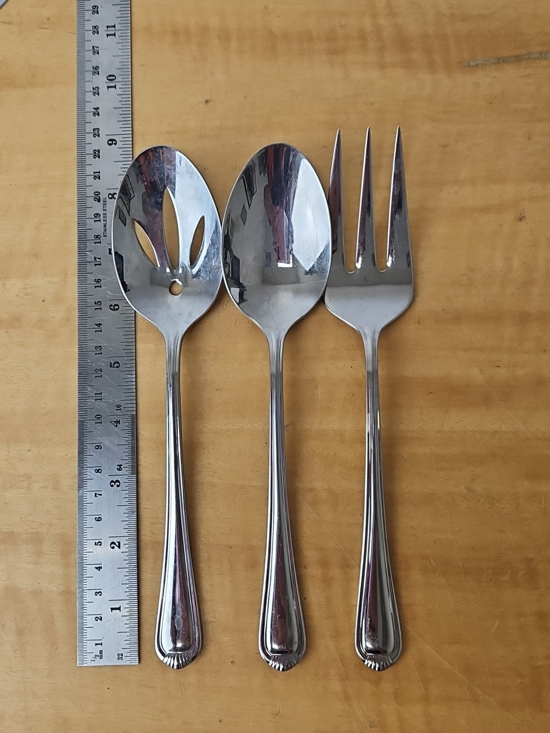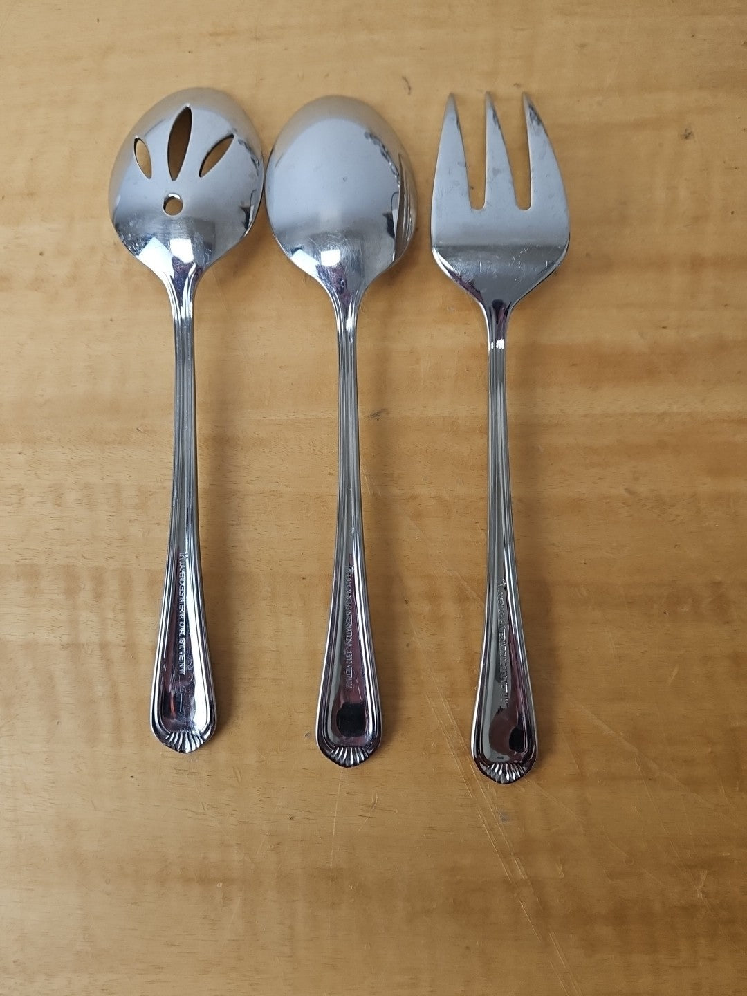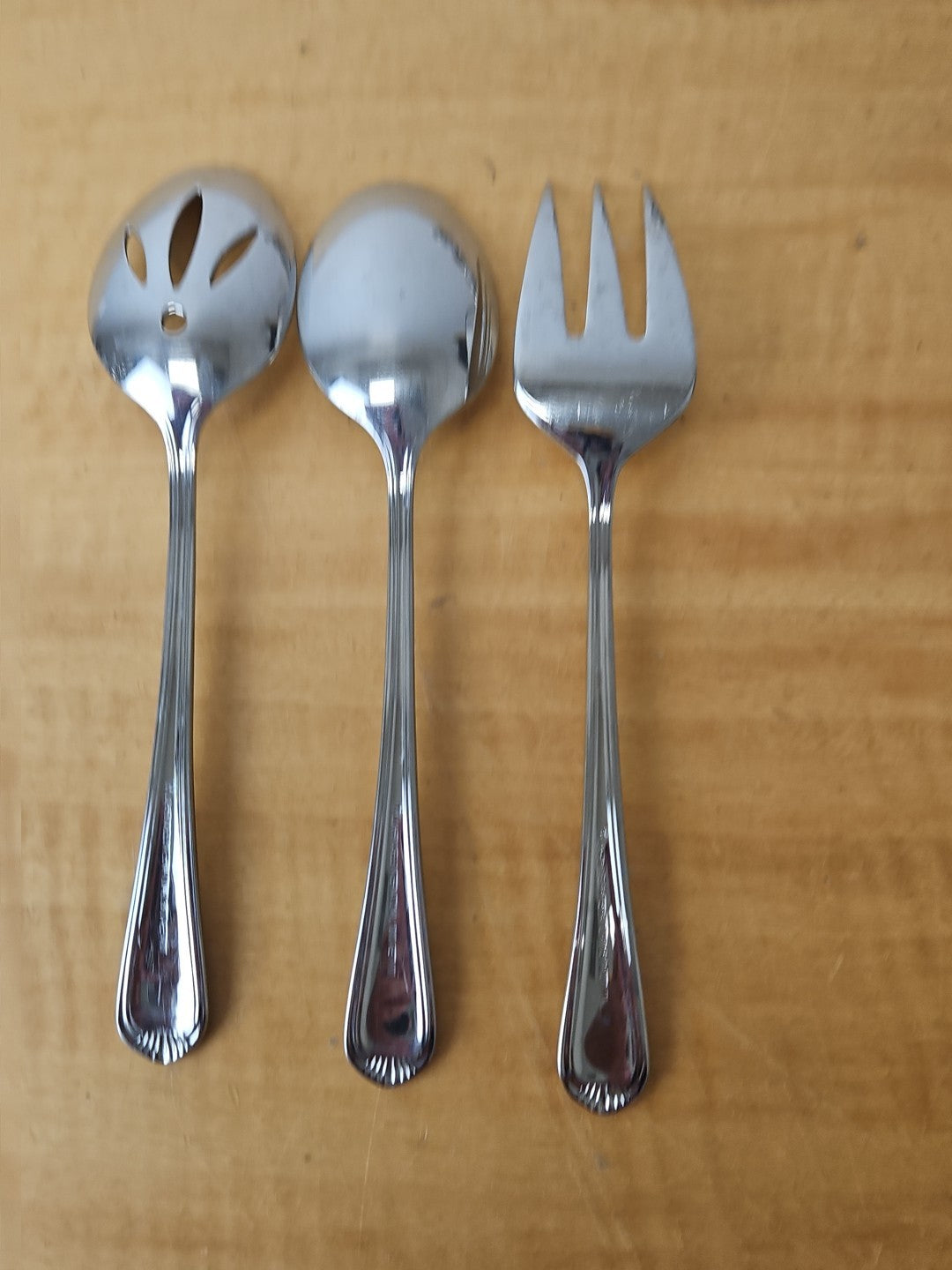 J A Henckels "Alcea" (Stainless) (Zwilling) flatware SERVING FORK, 2 SPOONS