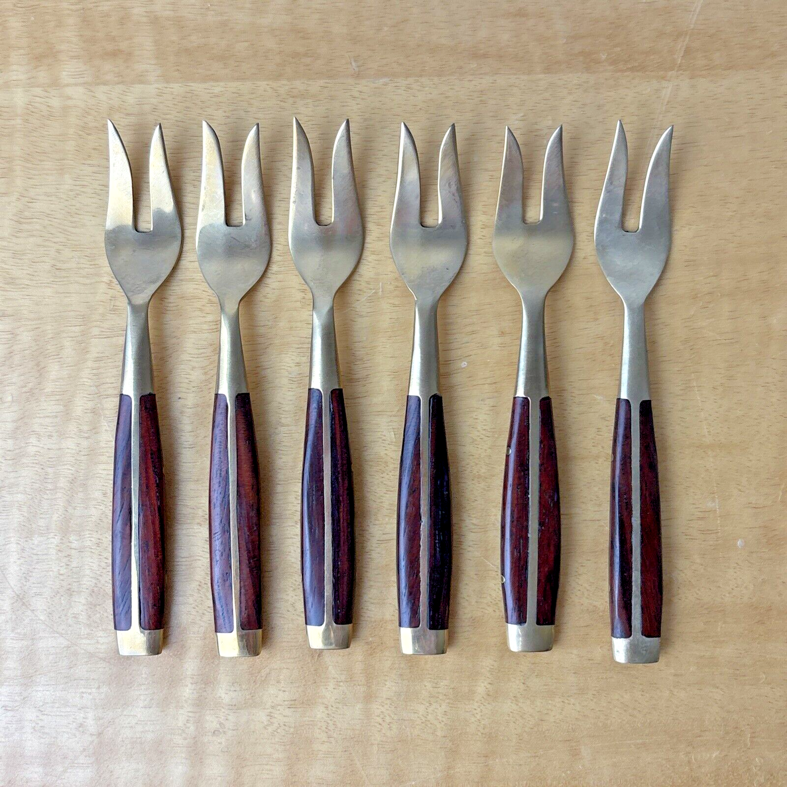 Jean-Claude Bronze & Rosewood Small Prong Fork 4.5"