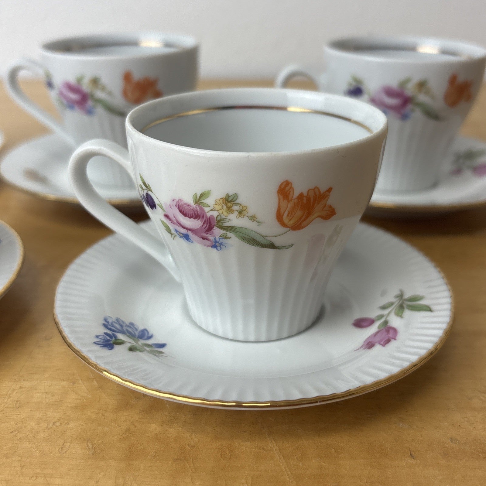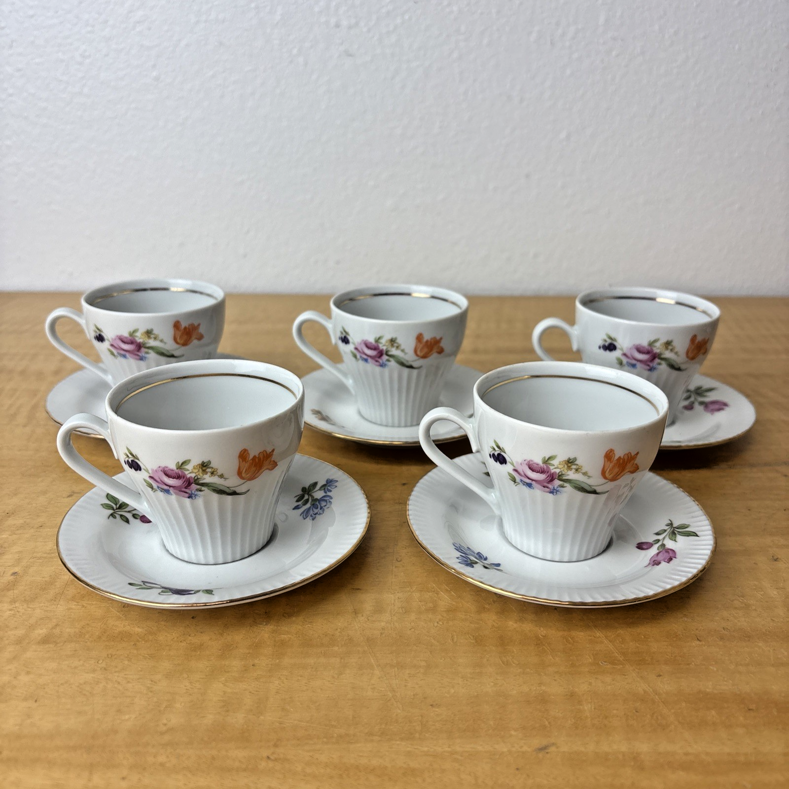 Jlmenau Graf Von Henneberg German Teacup and Saucer Set of 5 Tea Cups Floral