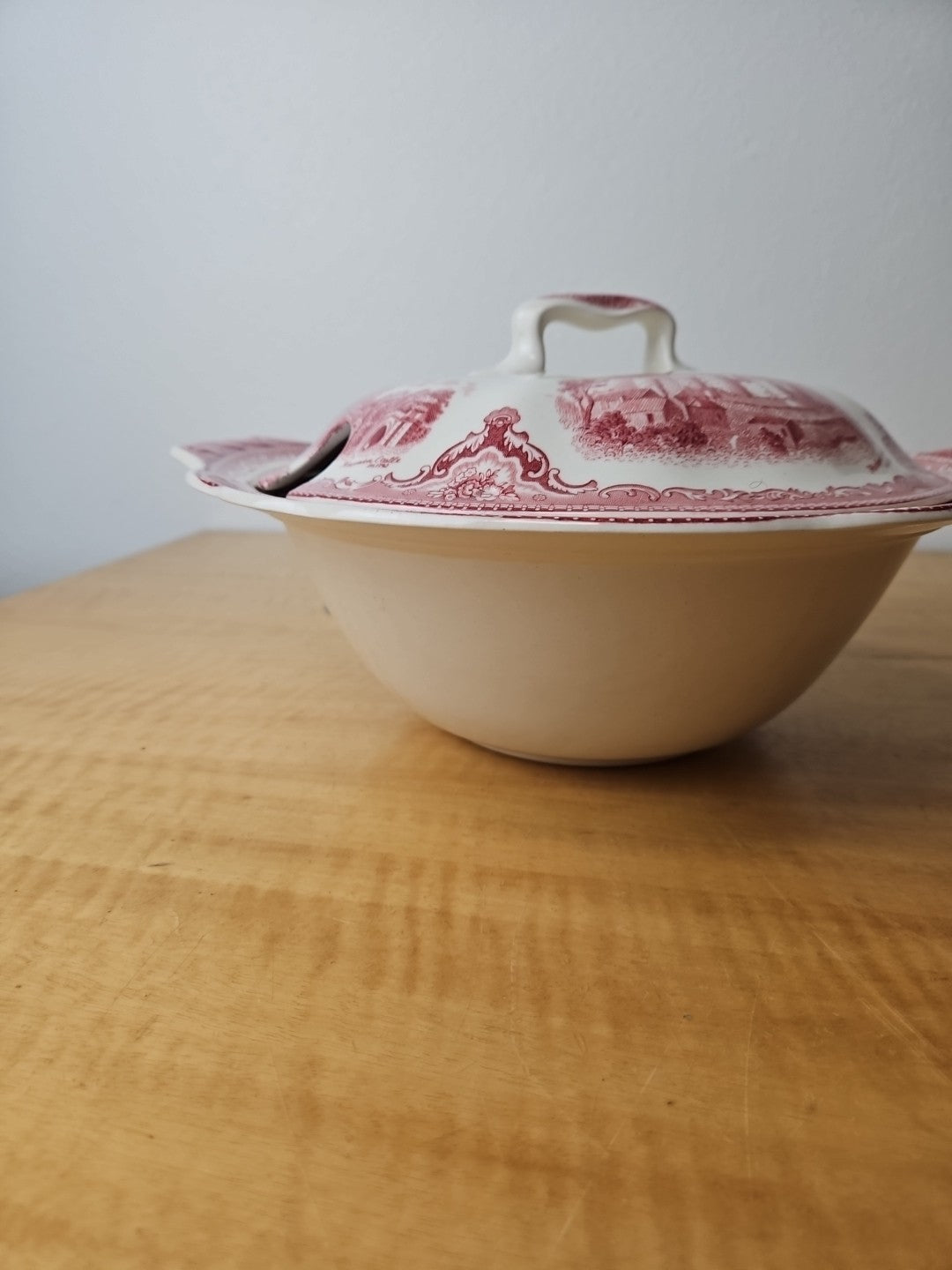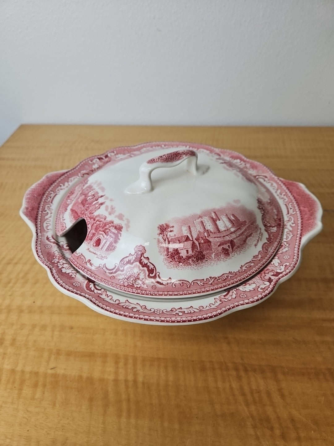 JOHNSON BROTHERS "Old Britain Castles" large COVERED TUREEN / SERVING BOWL pink