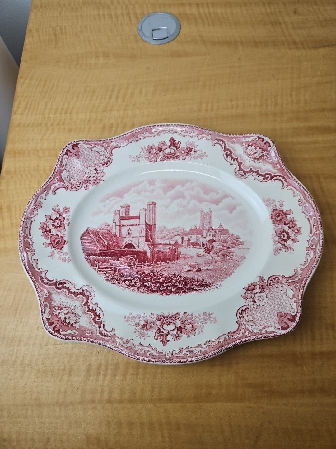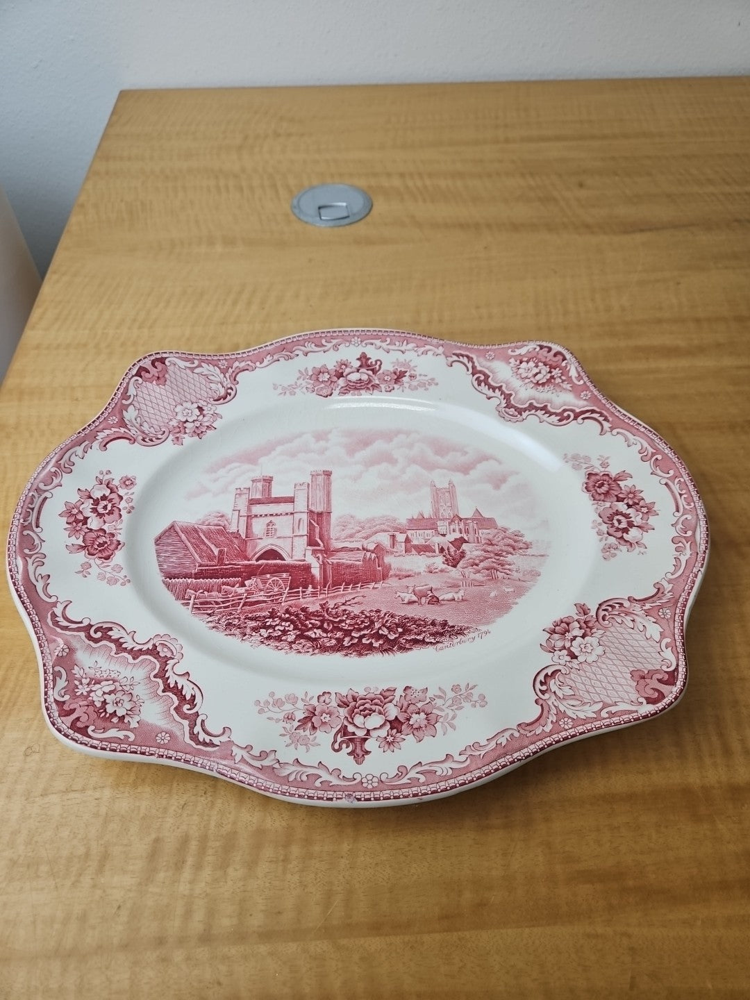 JOHNSON BROTHERS "Old Britain Castles" large SERVING PLATTER rectangle pink