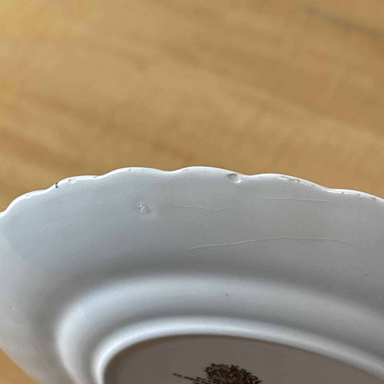 Condition Description: See images, ask questions. Minor chips, crazing, and a small yellow stain all as seen in images.