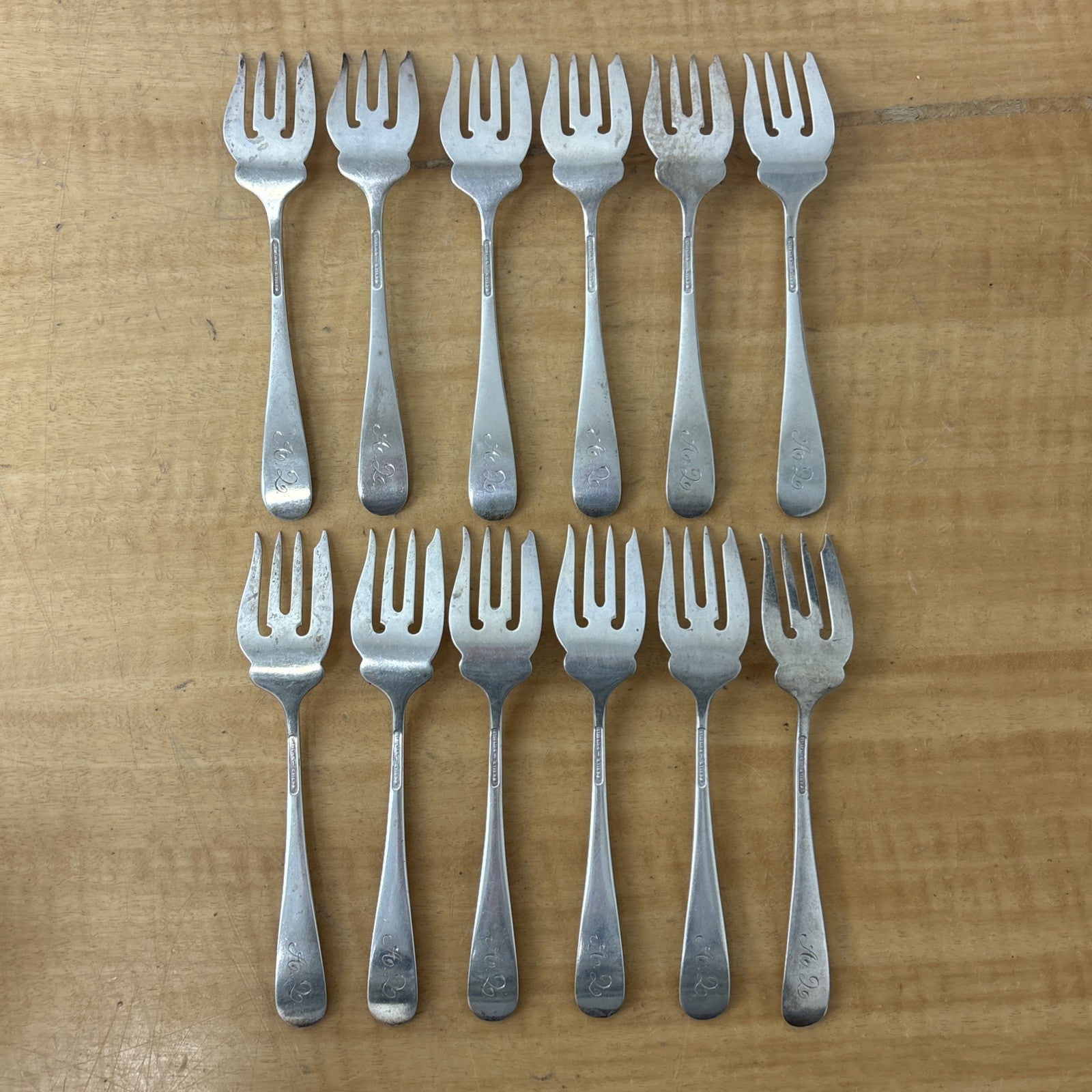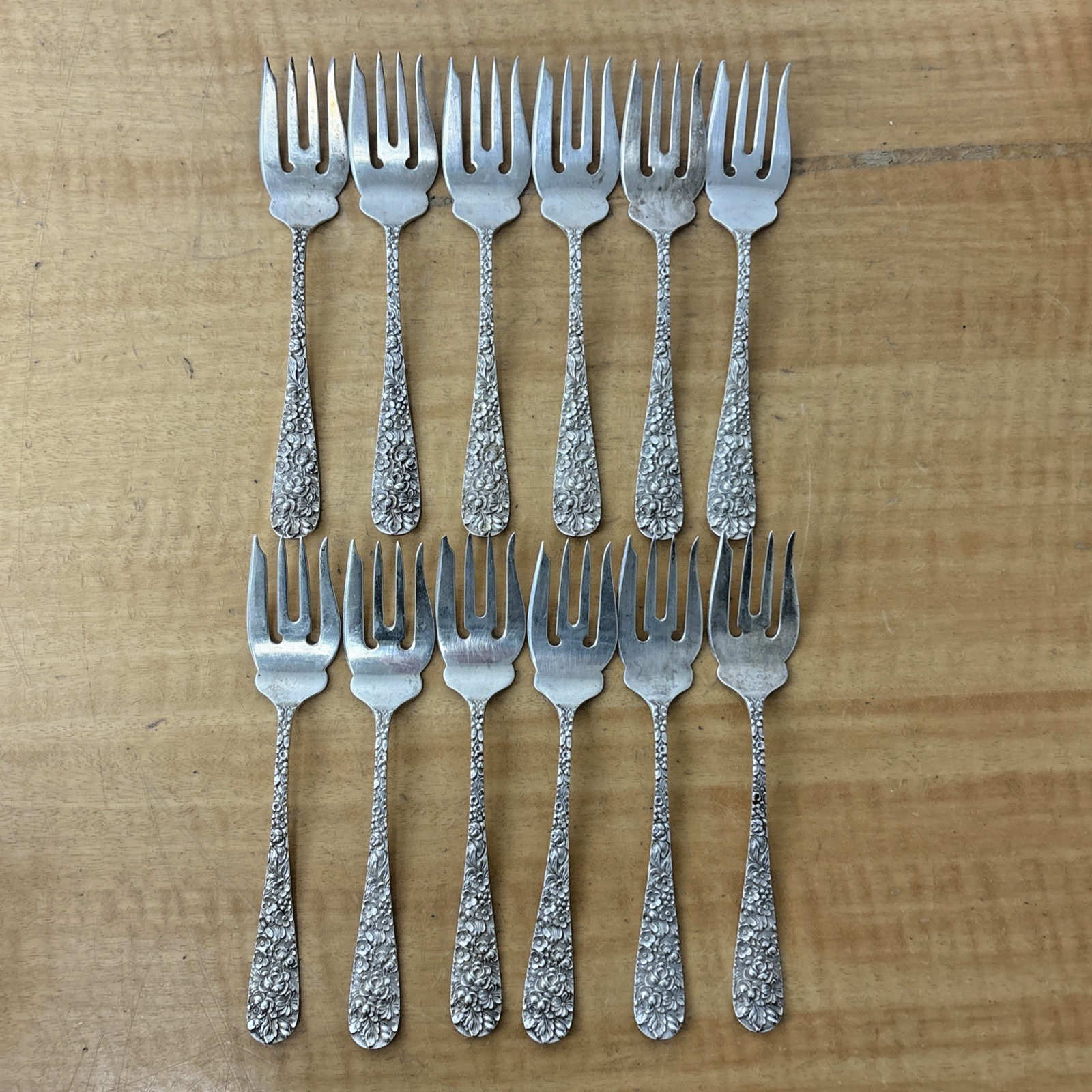Kirk Stieff 925 Sterling Silver Antique 1892 Rose Set of 12 Salad Forks 375 gram