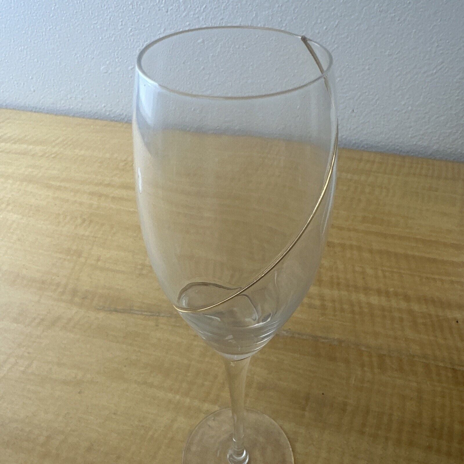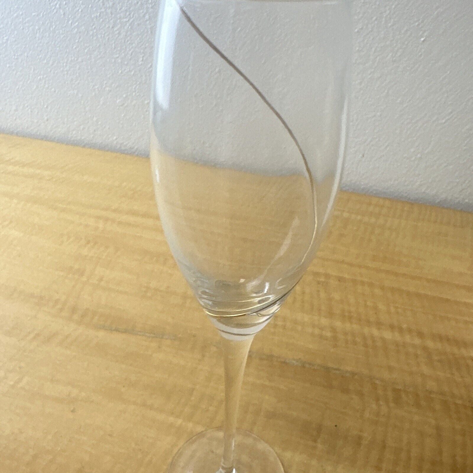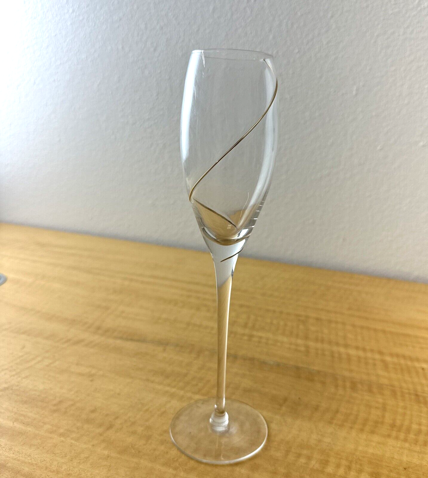 KOSTA BODA "LINE GOLD" TULIP-SHAPE CHAMPAGNE FLUTES, ANNA EHRNER SWEDEN EUC