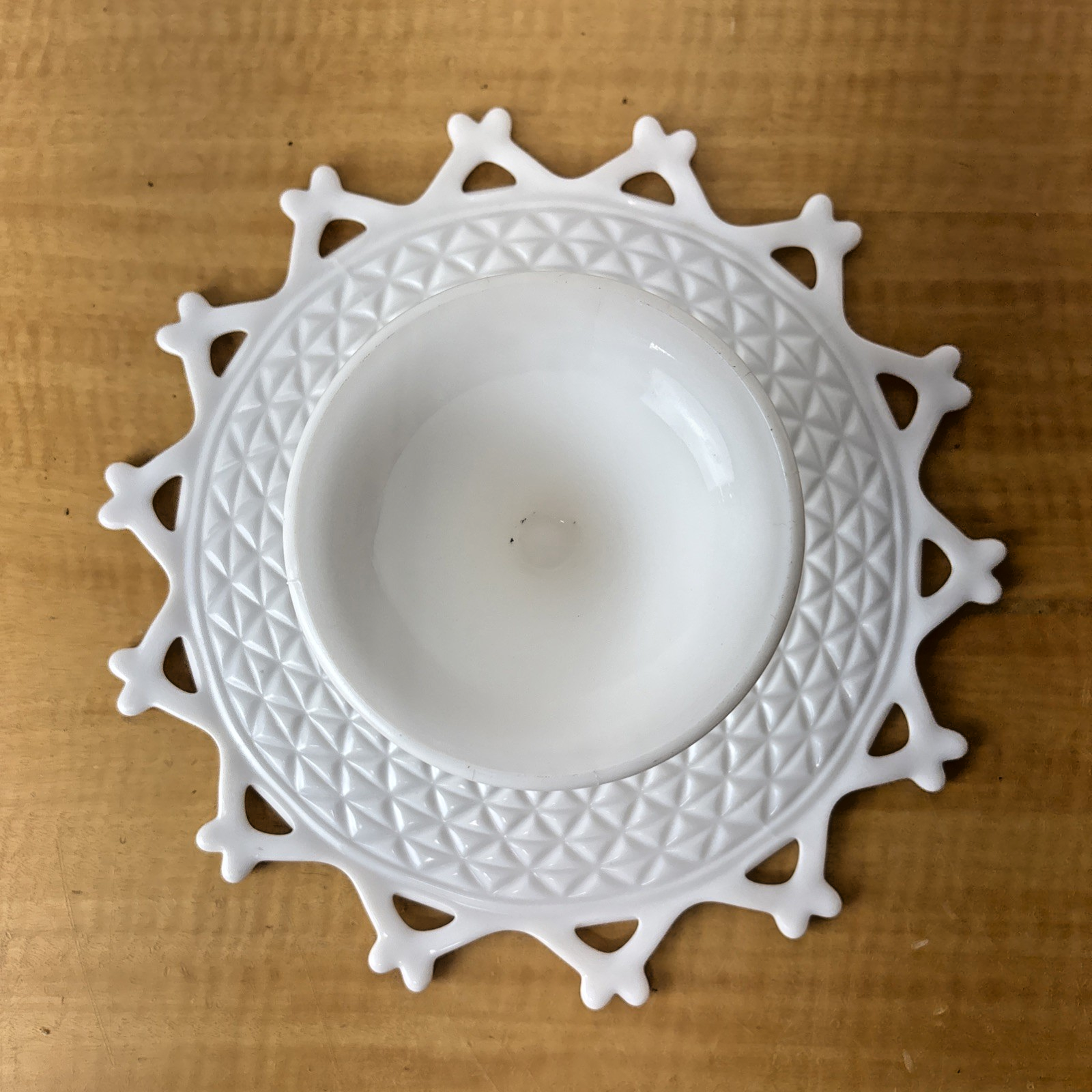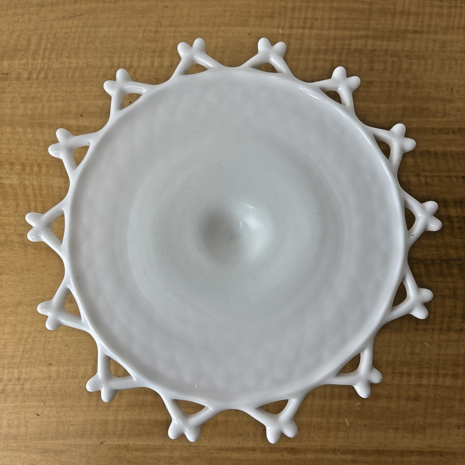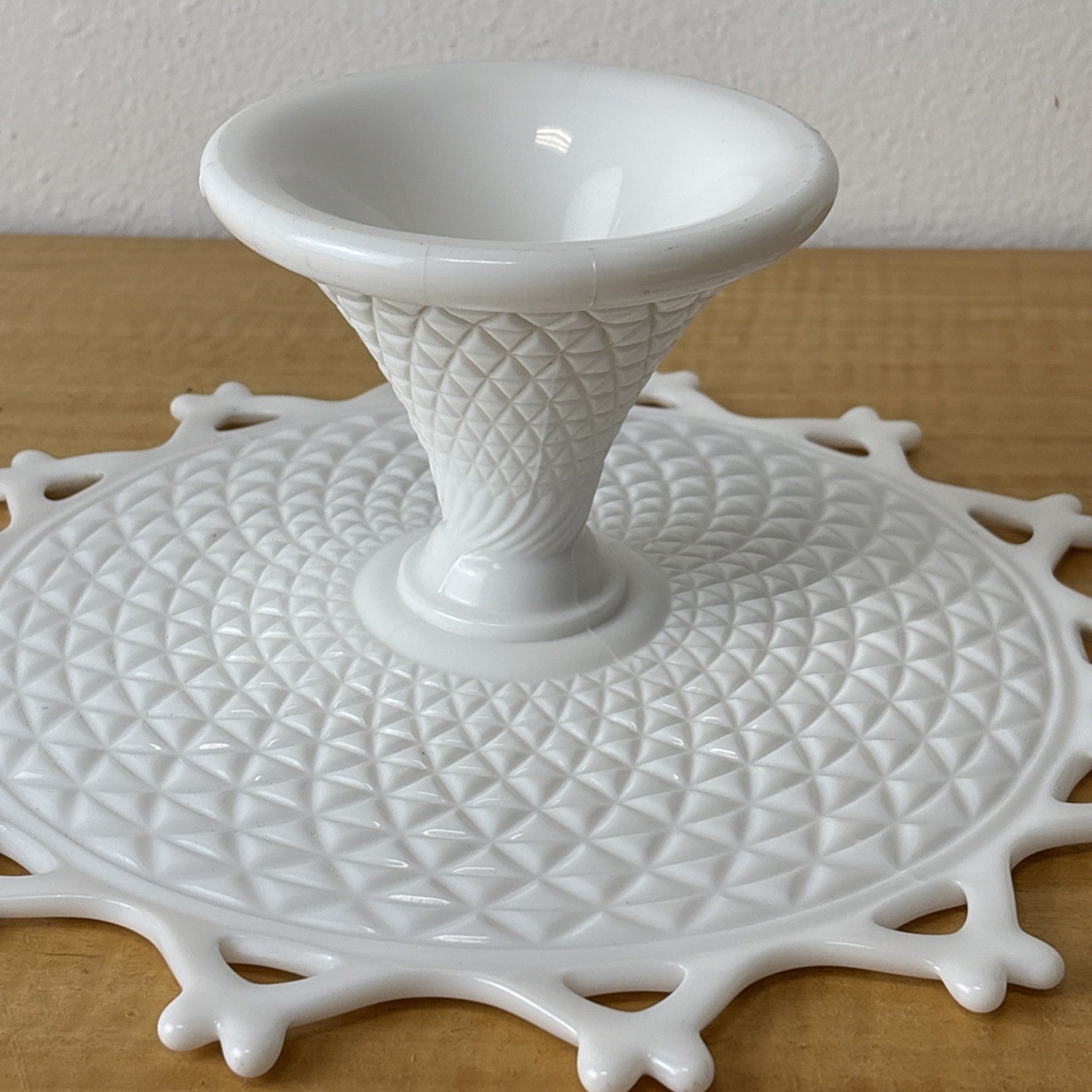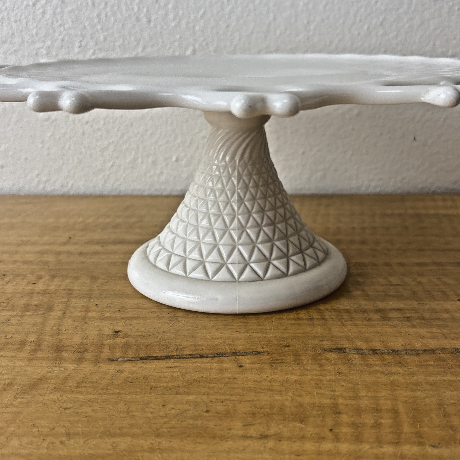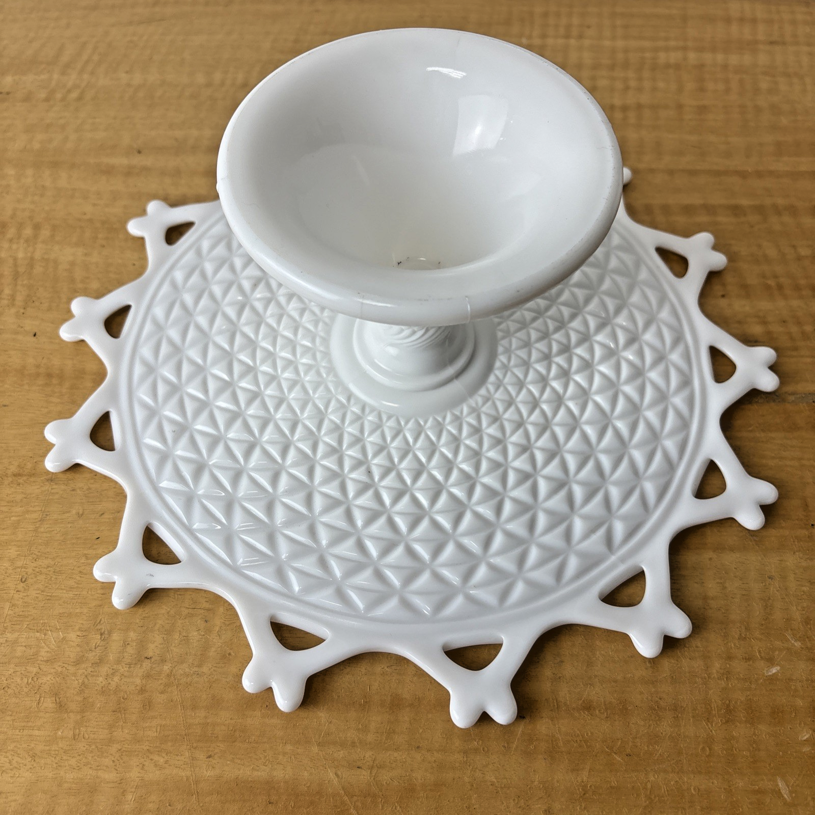 Laced Edge Cut Milk Glass by Imperial Glass - Ohio Round Cake Stand