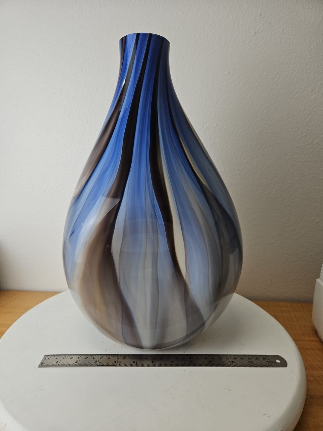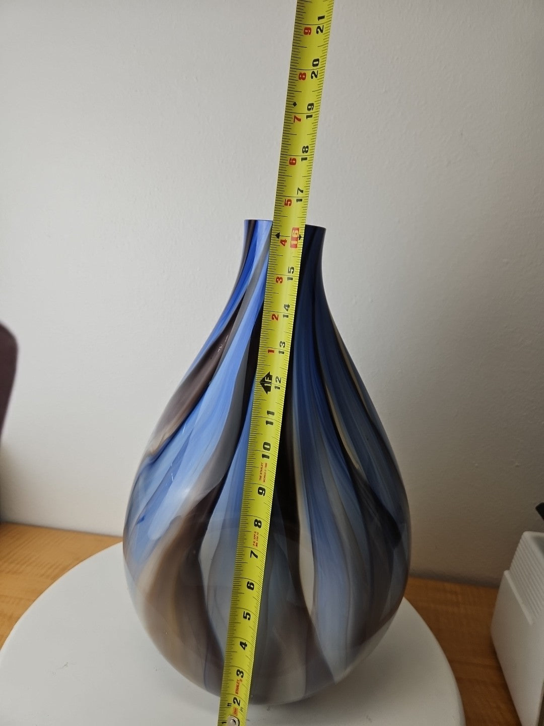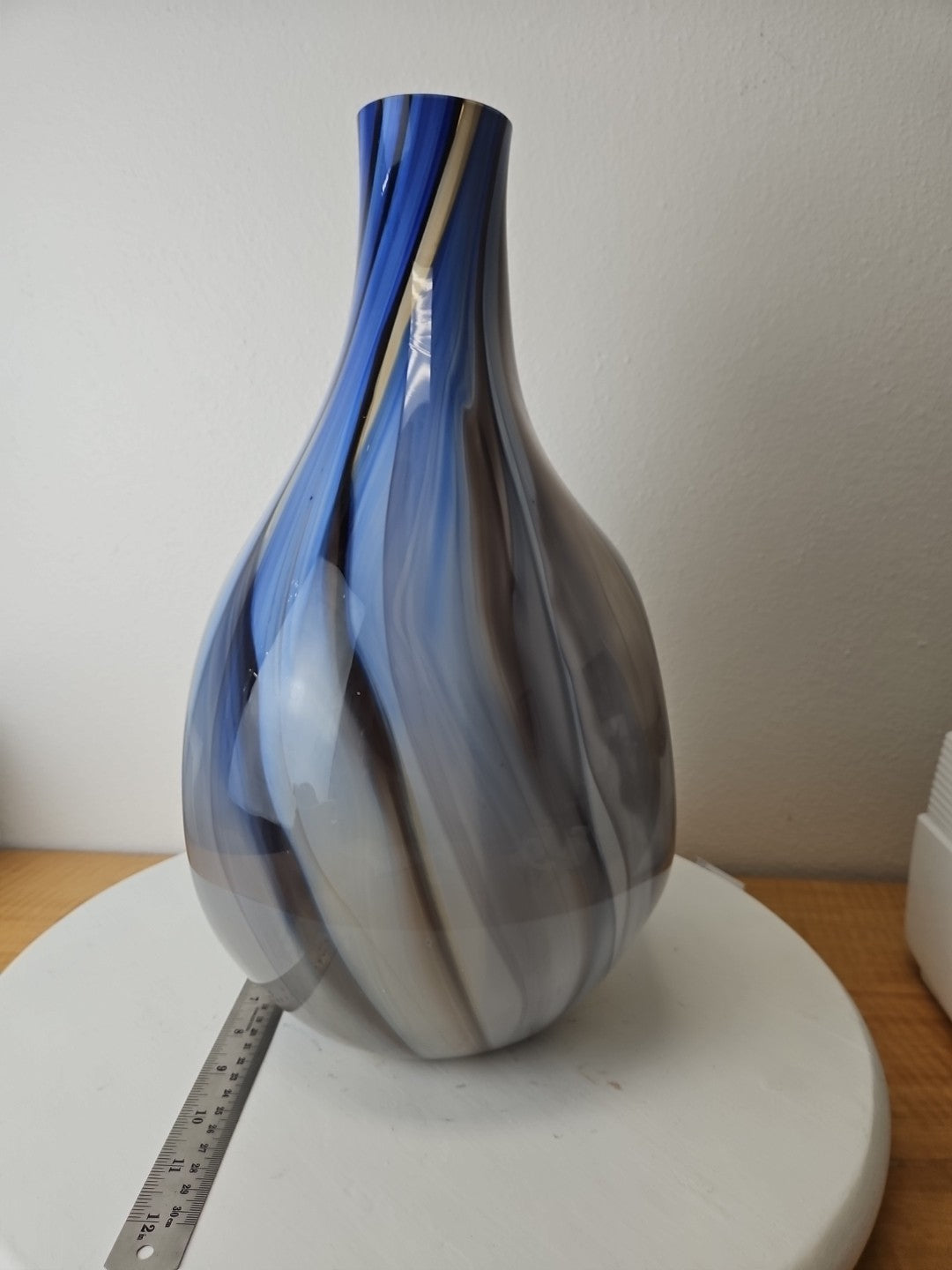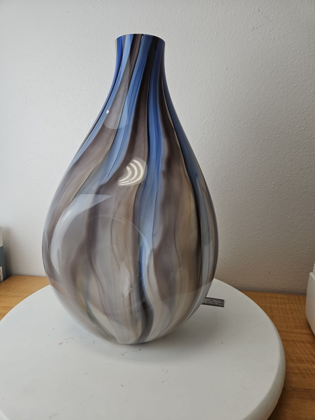 Large Art Glass Vase Murano style, shades of blue brown, black, gray 16 1/2"