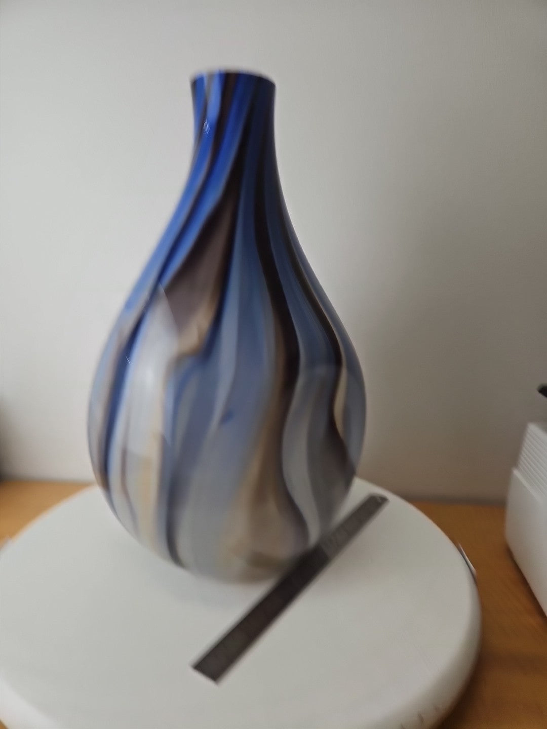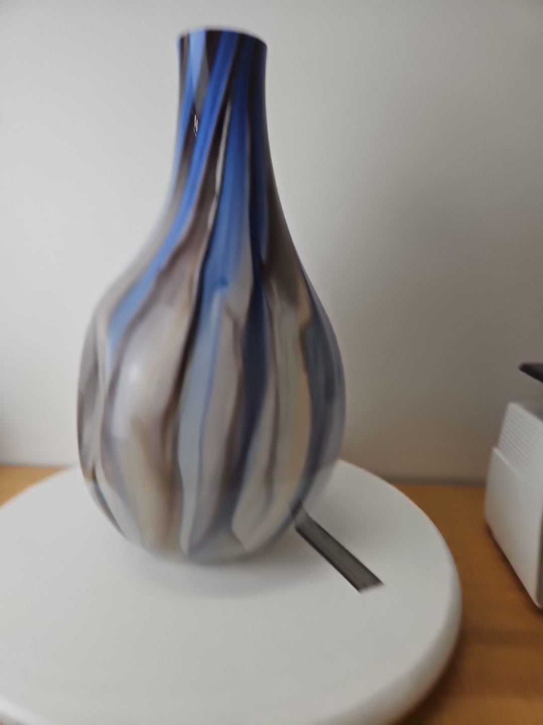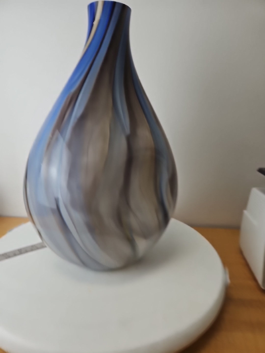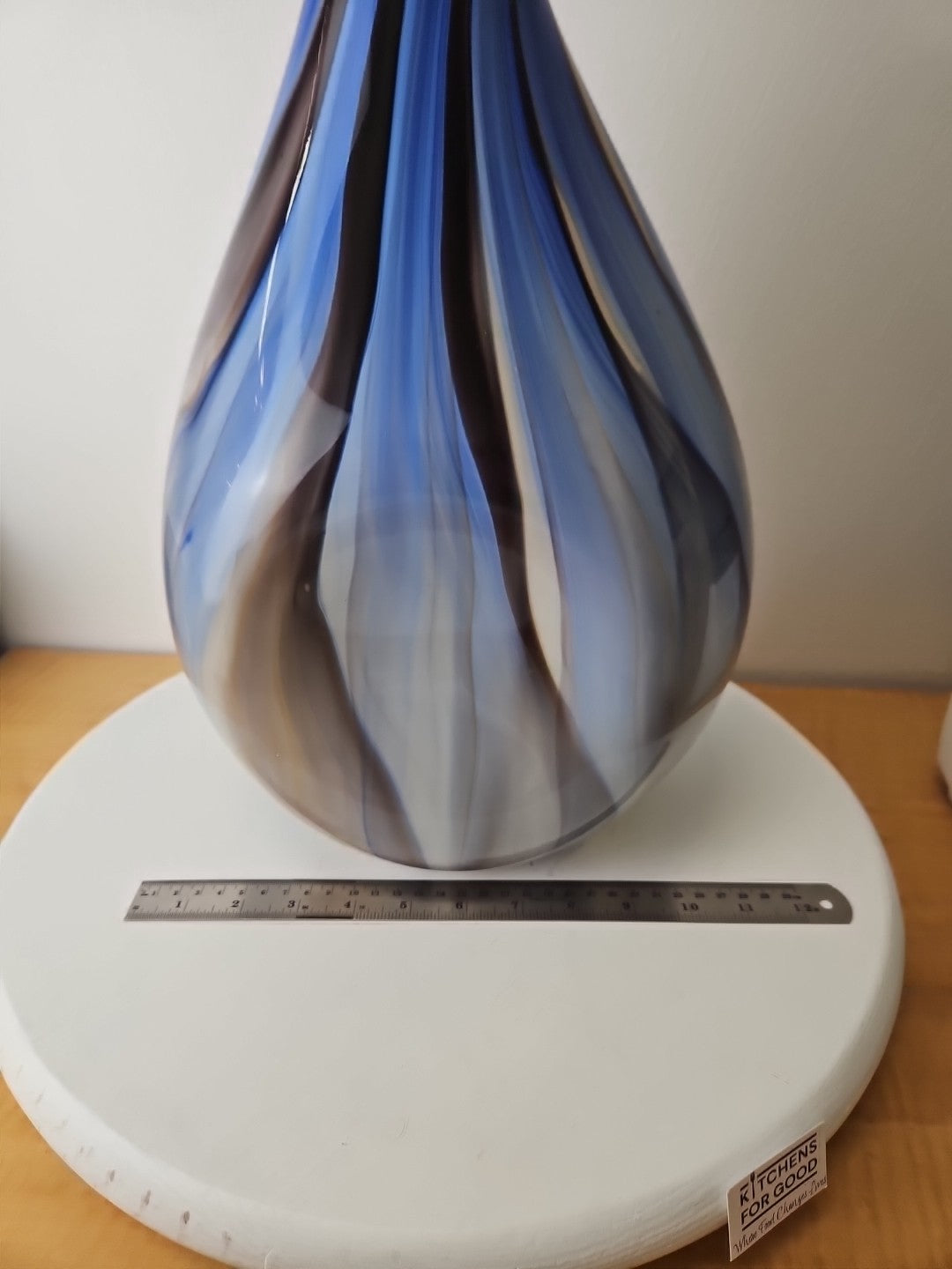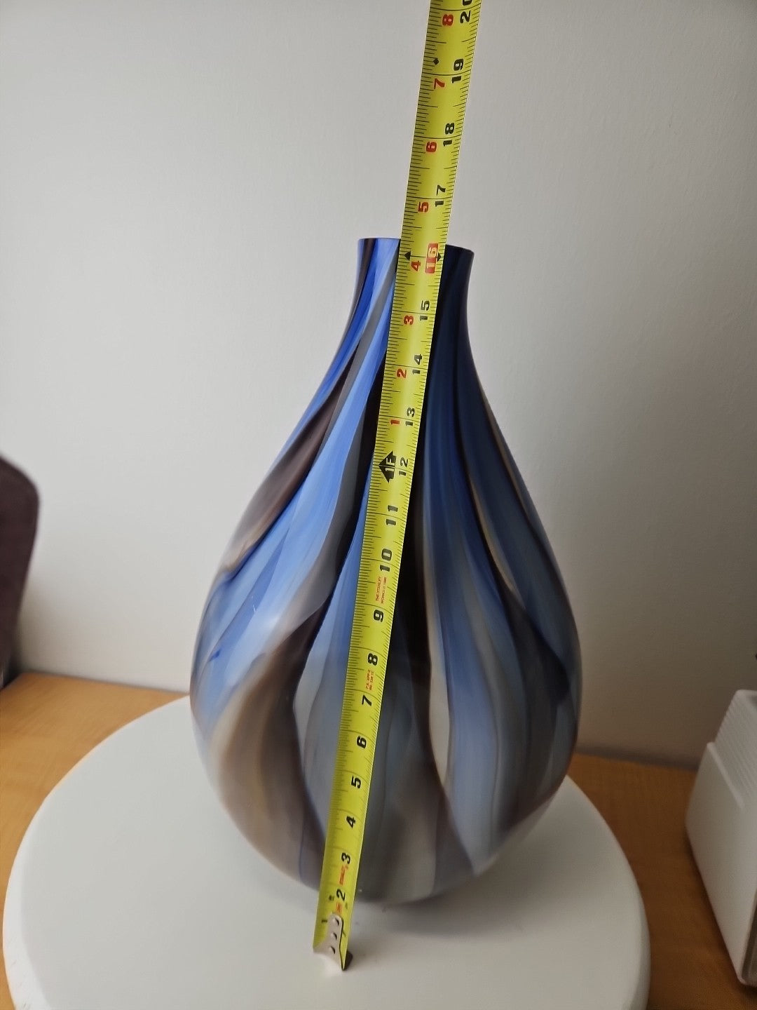 Large Art Glass Vase Murano style, shades of blue brown, black, gray 16 1/2"