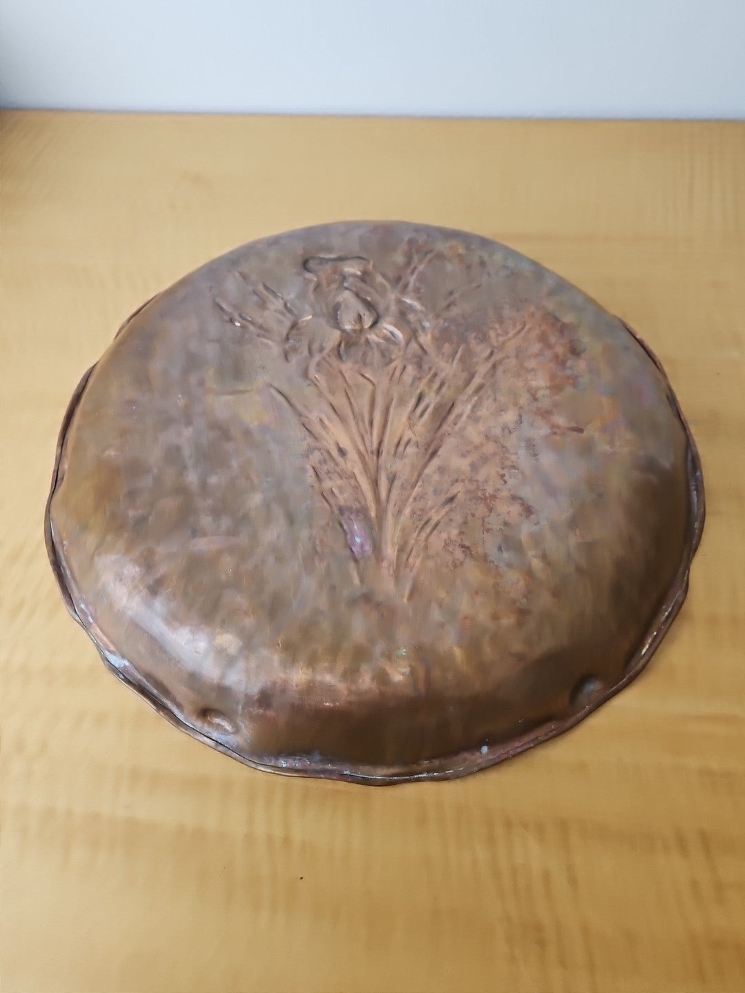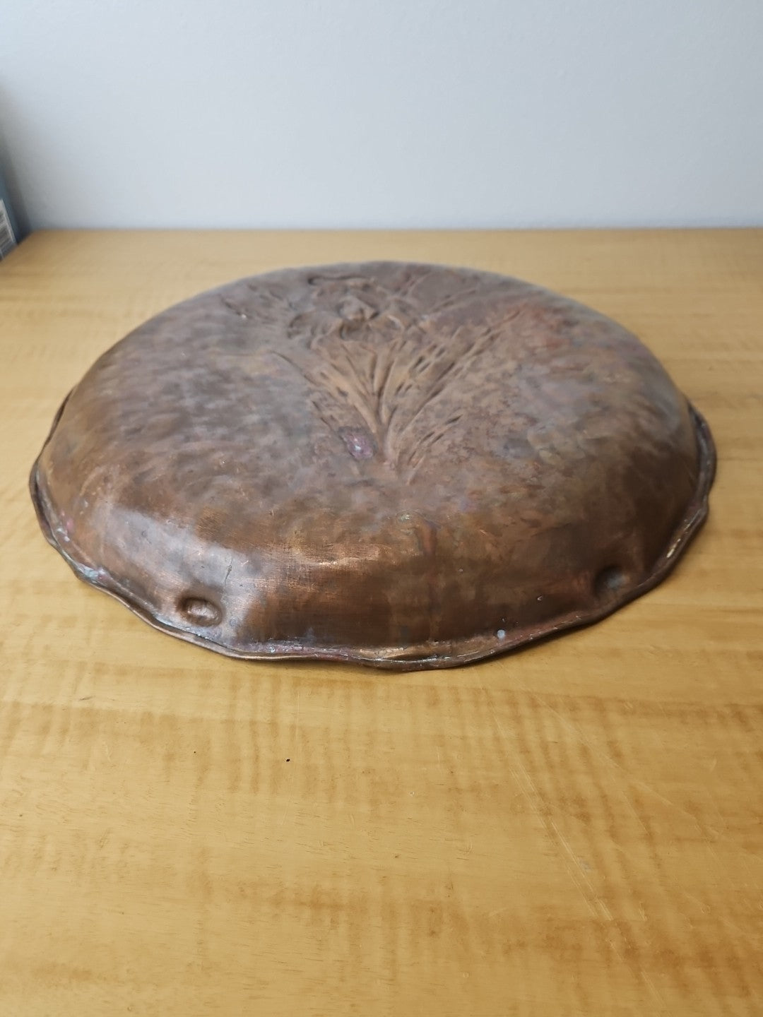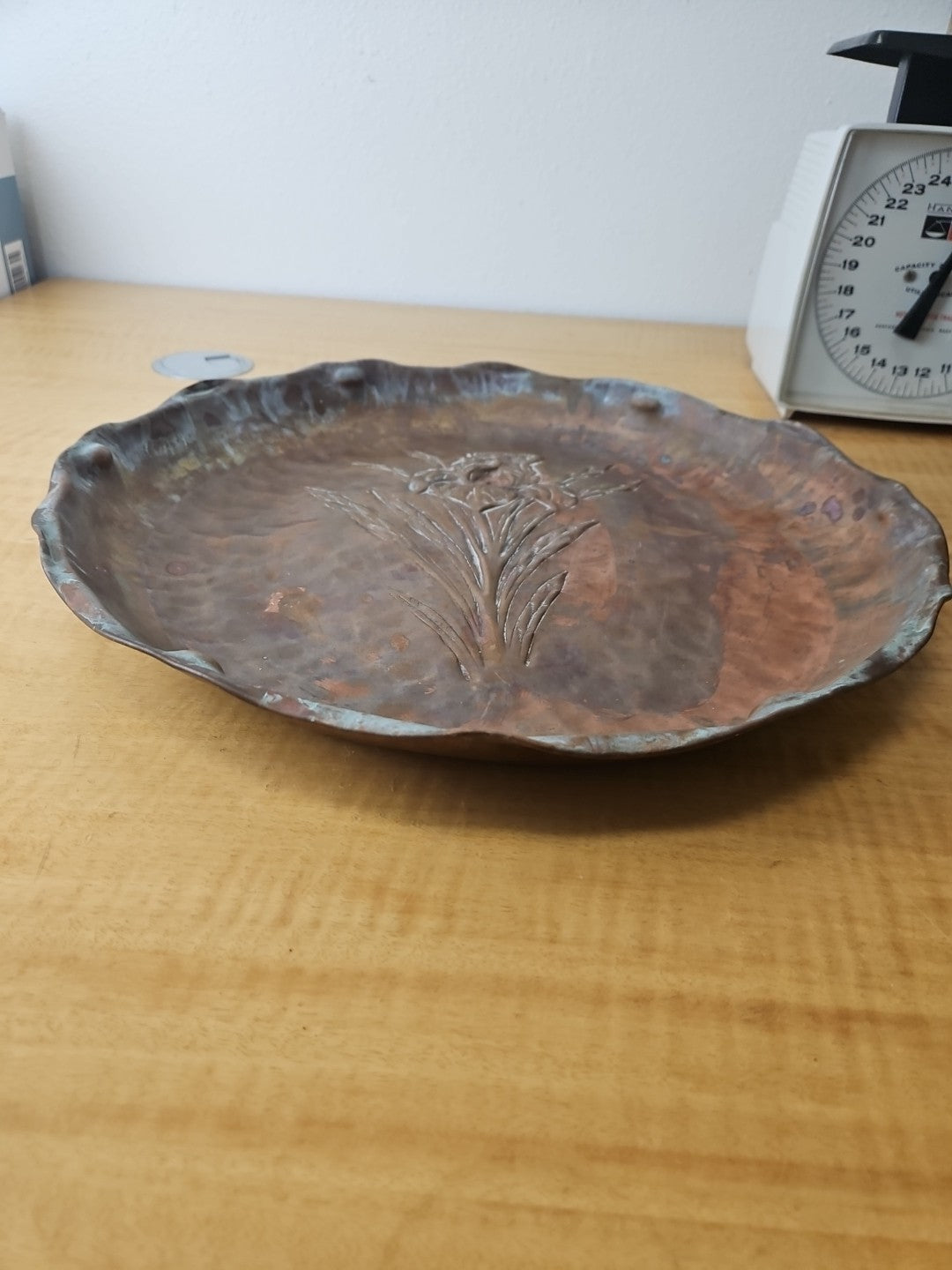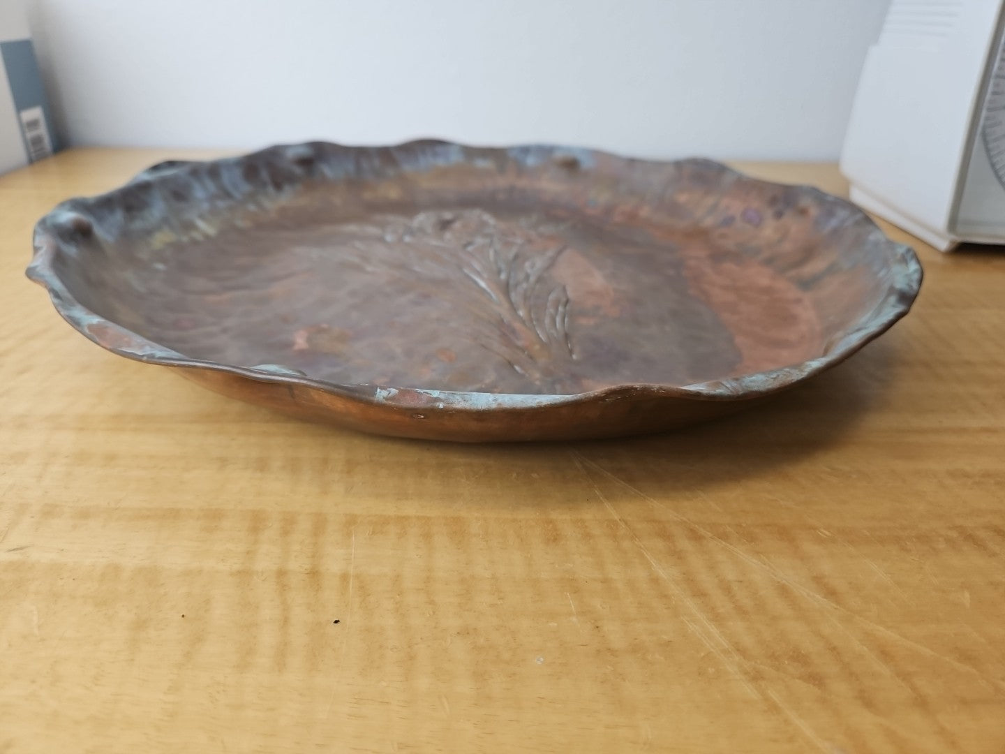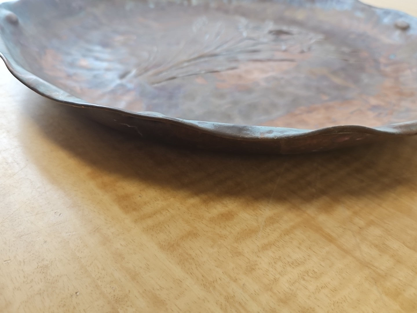 Large Serving Tray/Platter- 14 3/4" -hammered copper and embossed flower, unique
