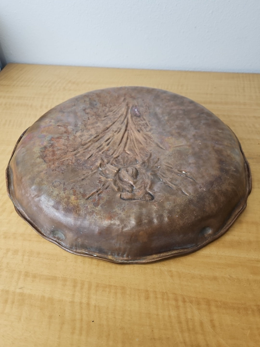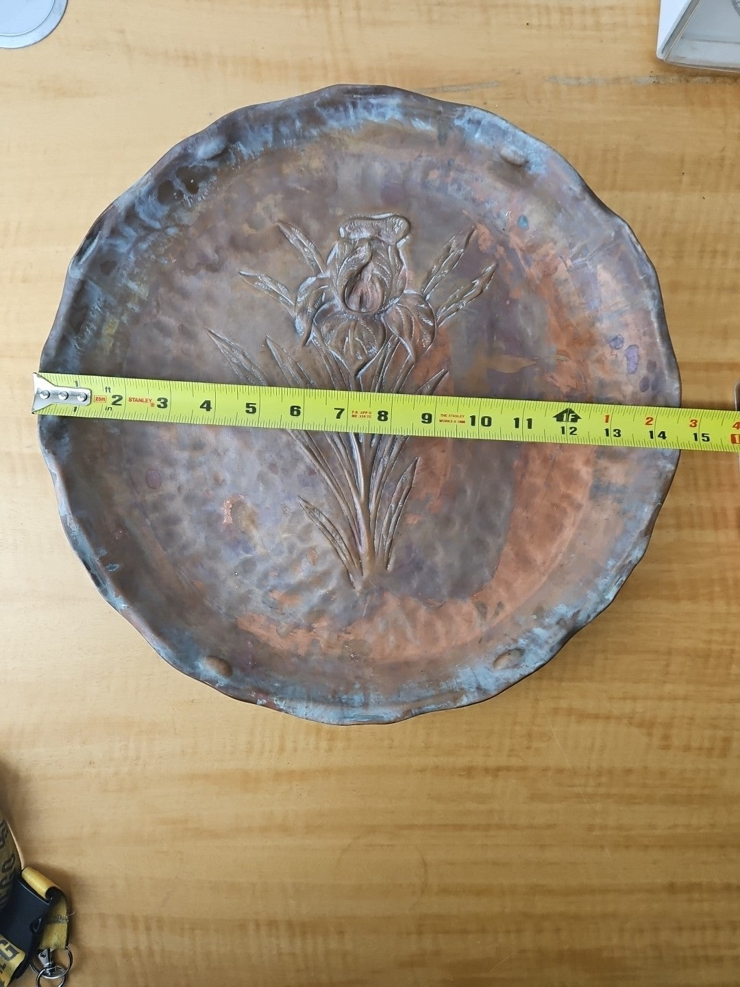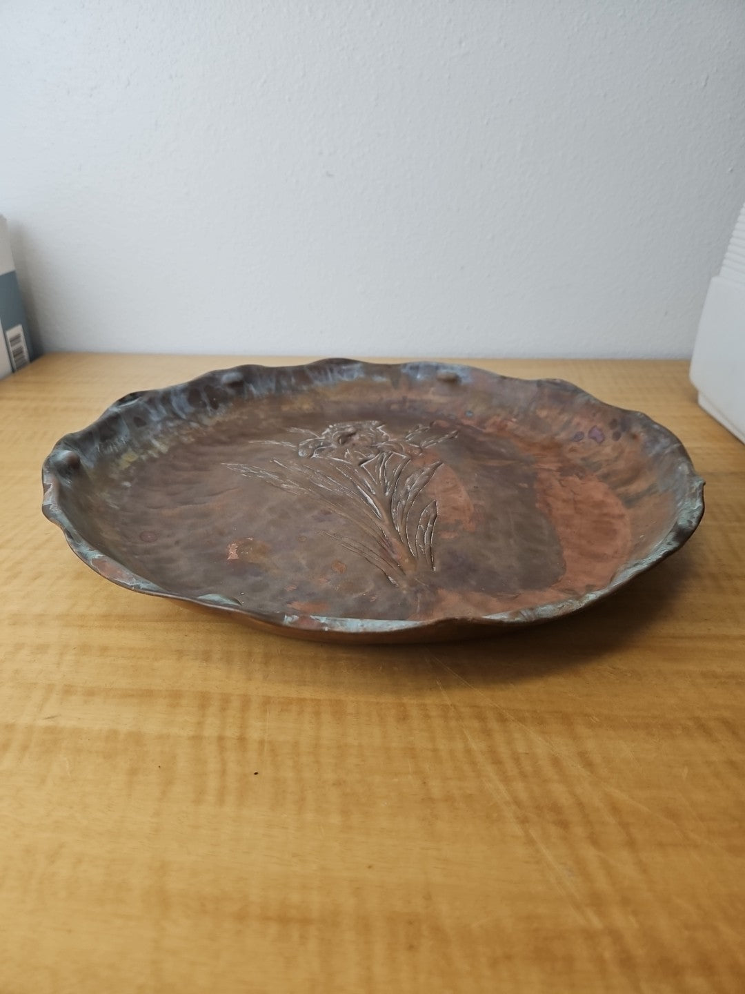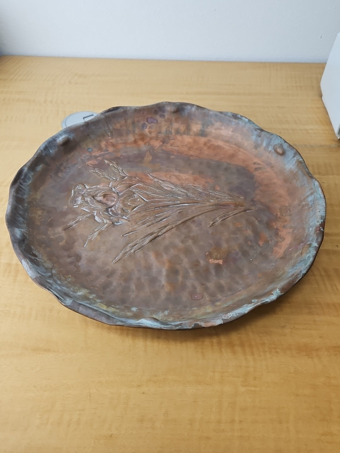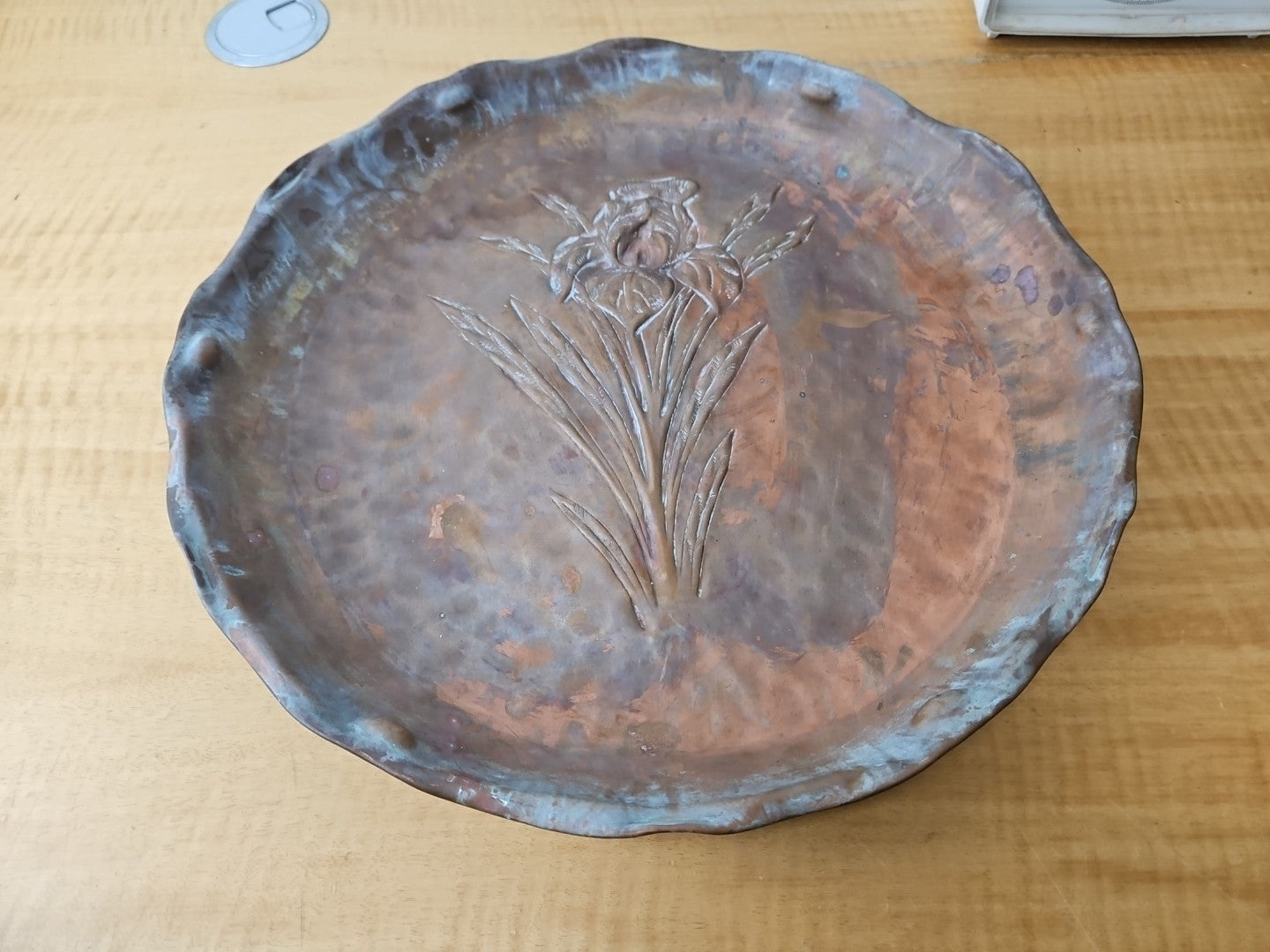 Large Serving Tray/Platter- 14 3/4" -hammered copper and embossed flower, unique