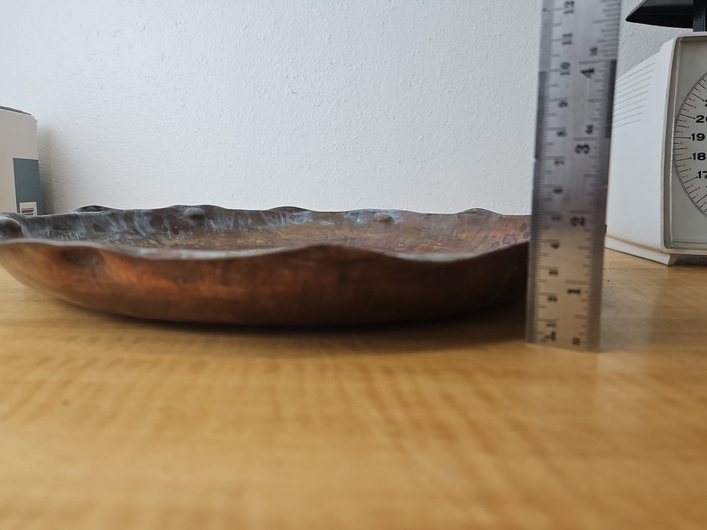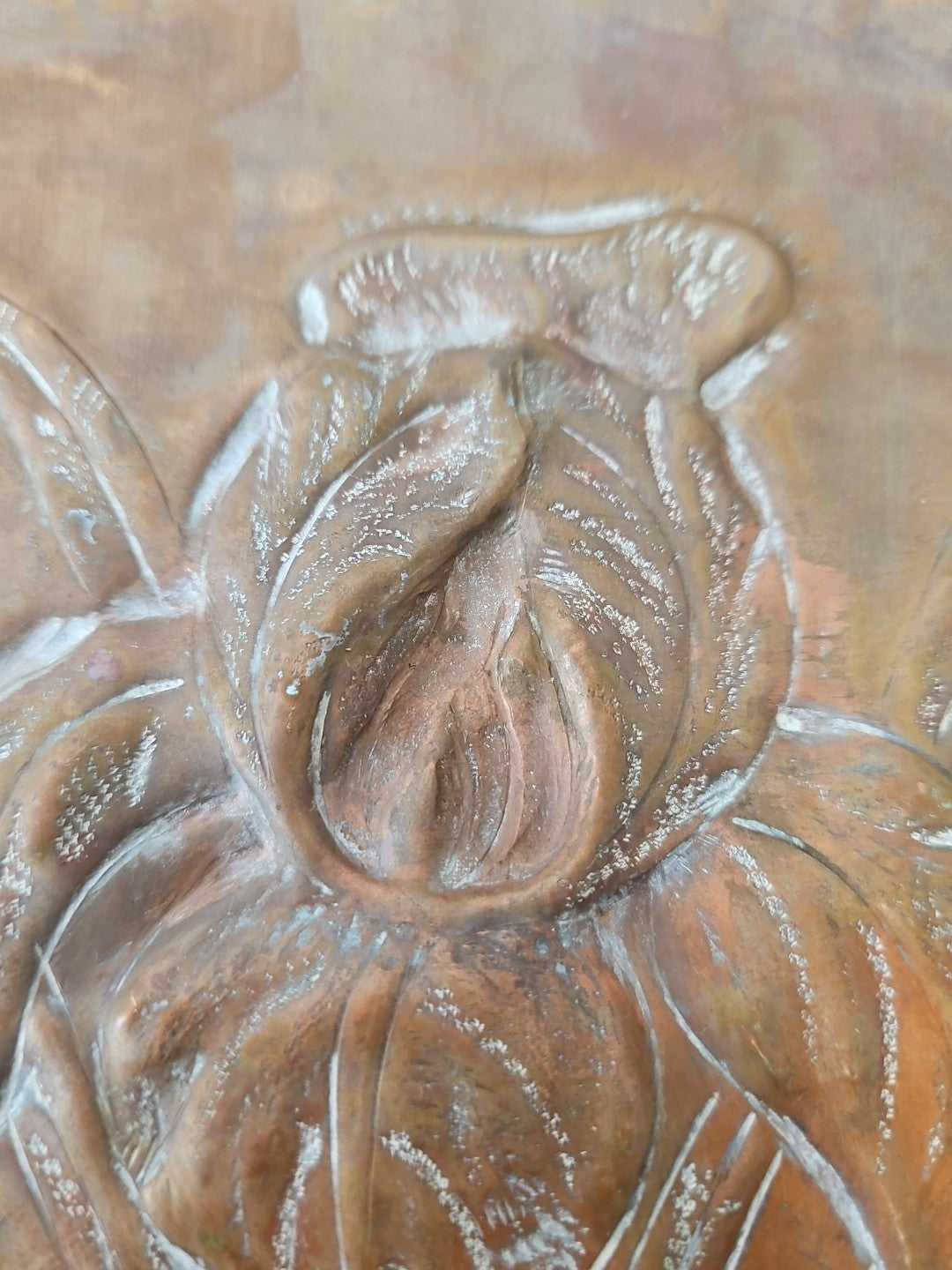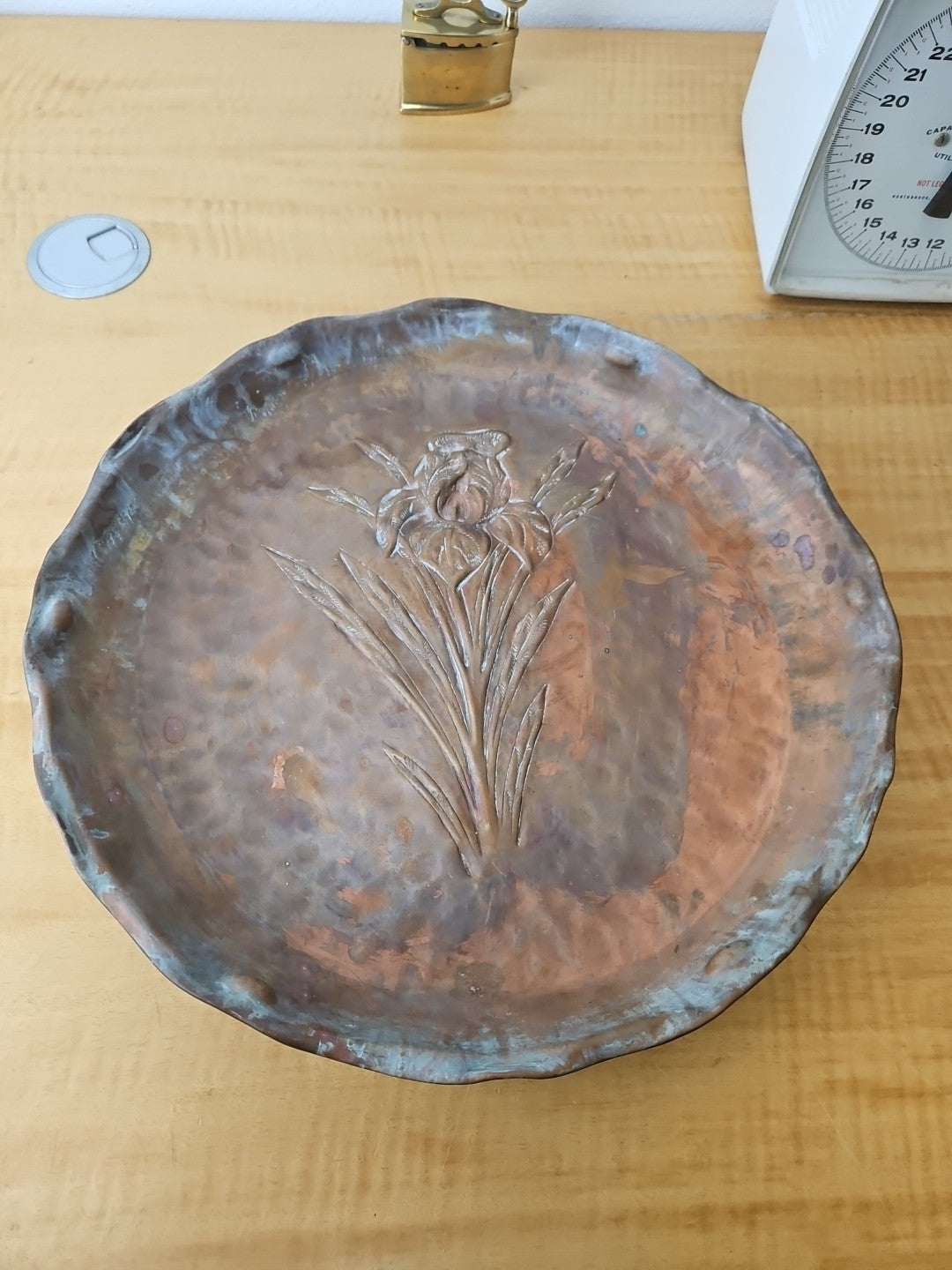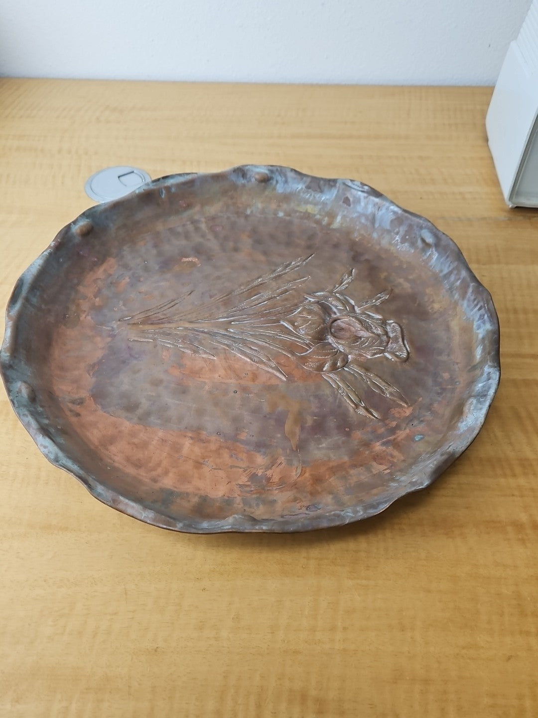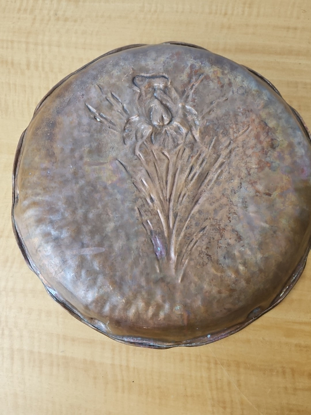 Large Serving Tray/Platter- 14 3/4" -hammered copper and embossed flower, unique
