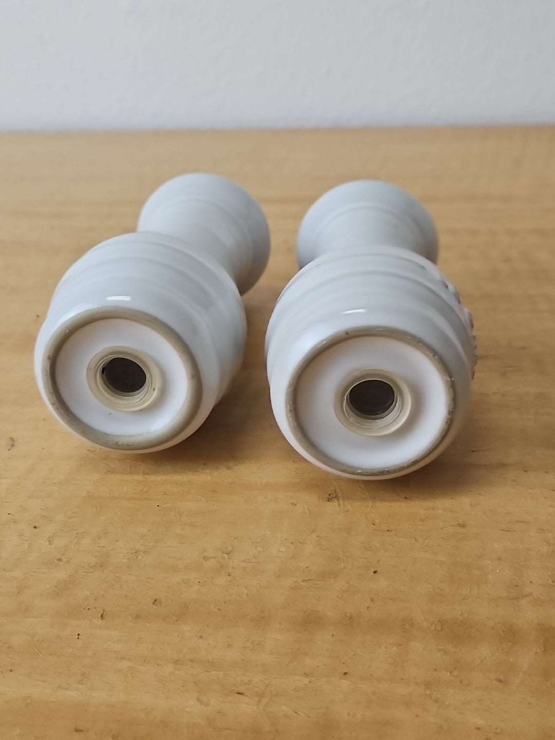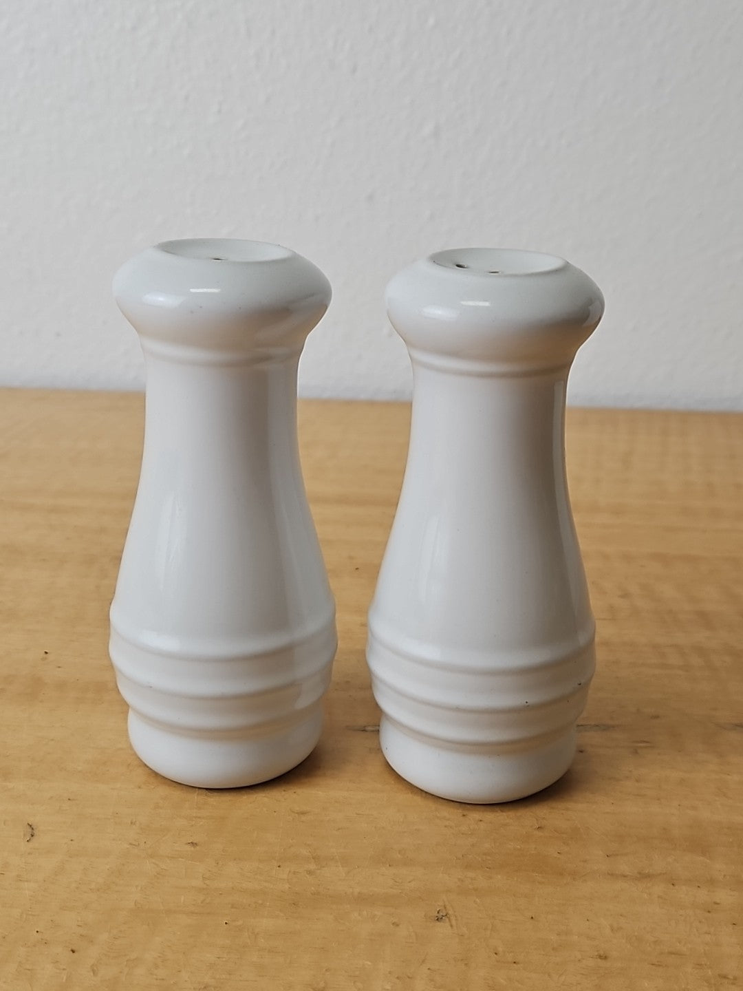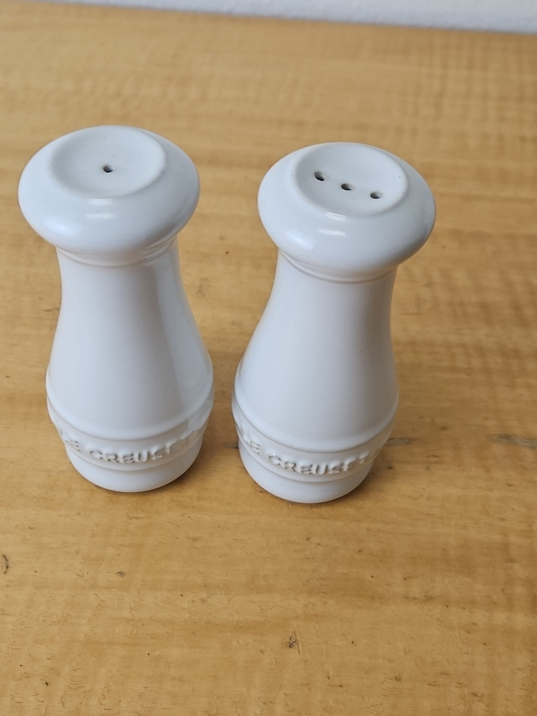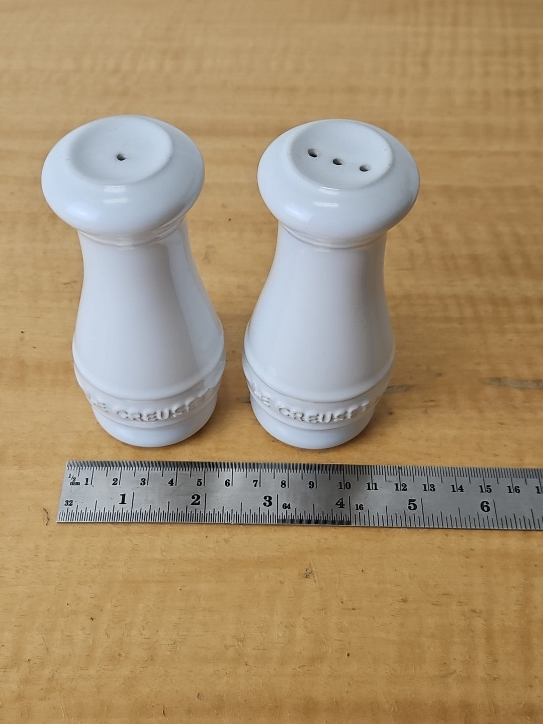 LE CREUSET white Salt & Pepper Shakers Set Stoneware Tall with stoppers