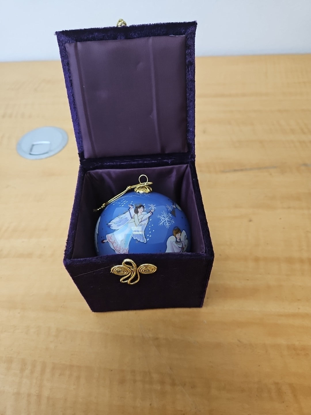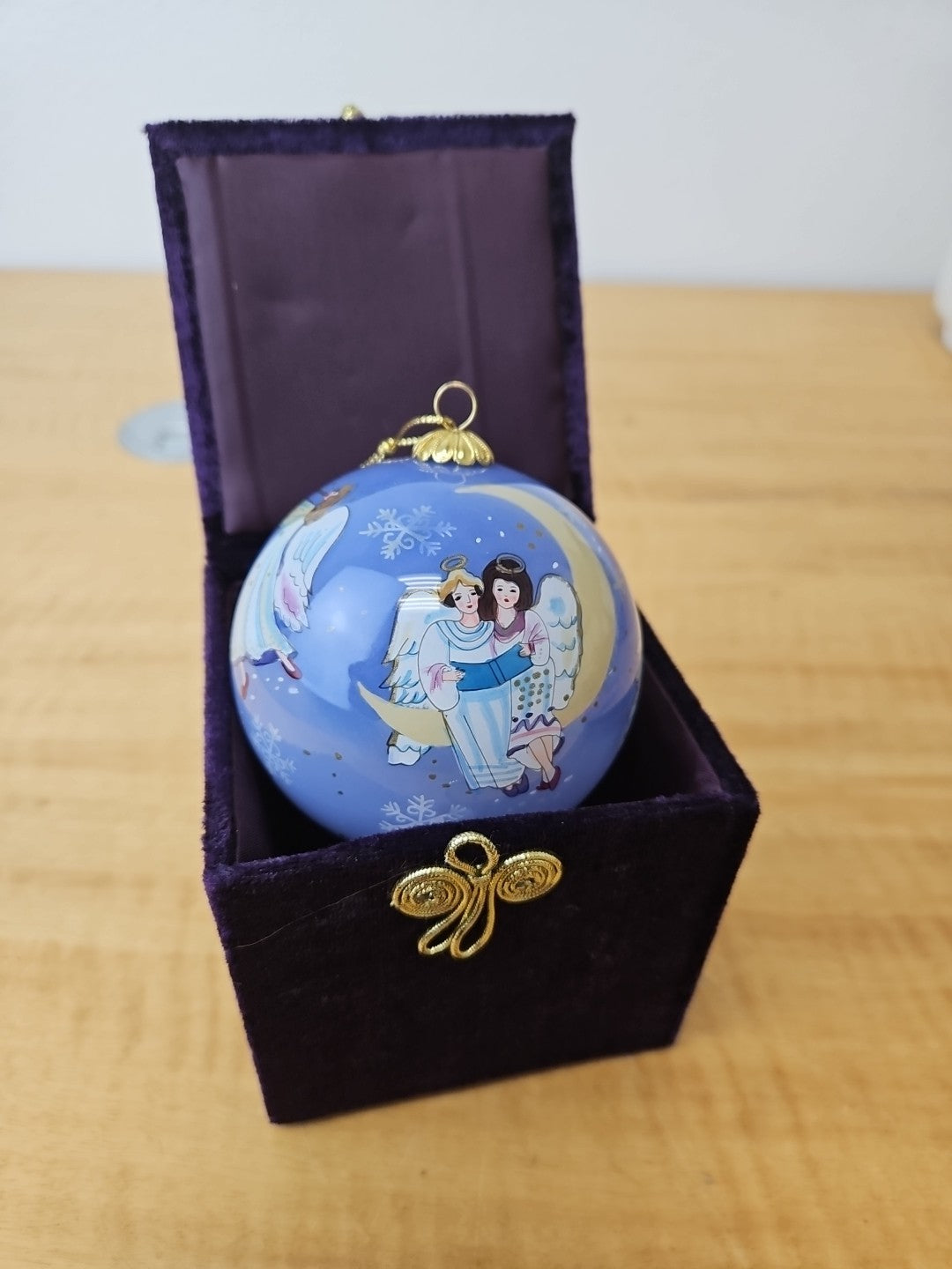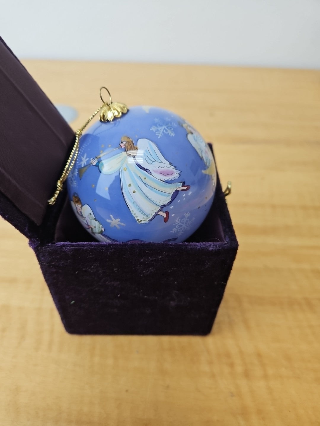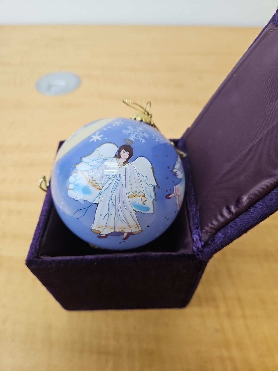 Li-Bien Christmas Ornament 2004 Pier-1 Angels Glass painted inside 3" purple